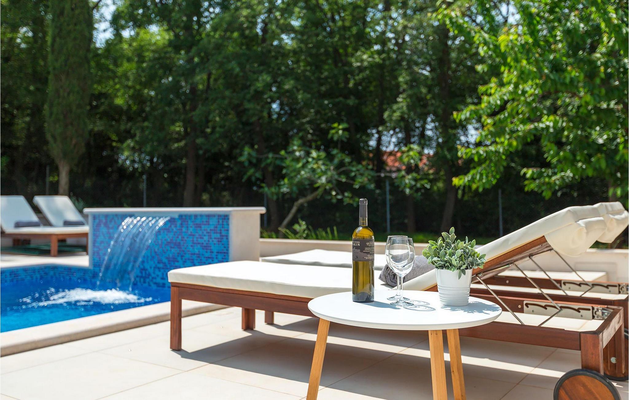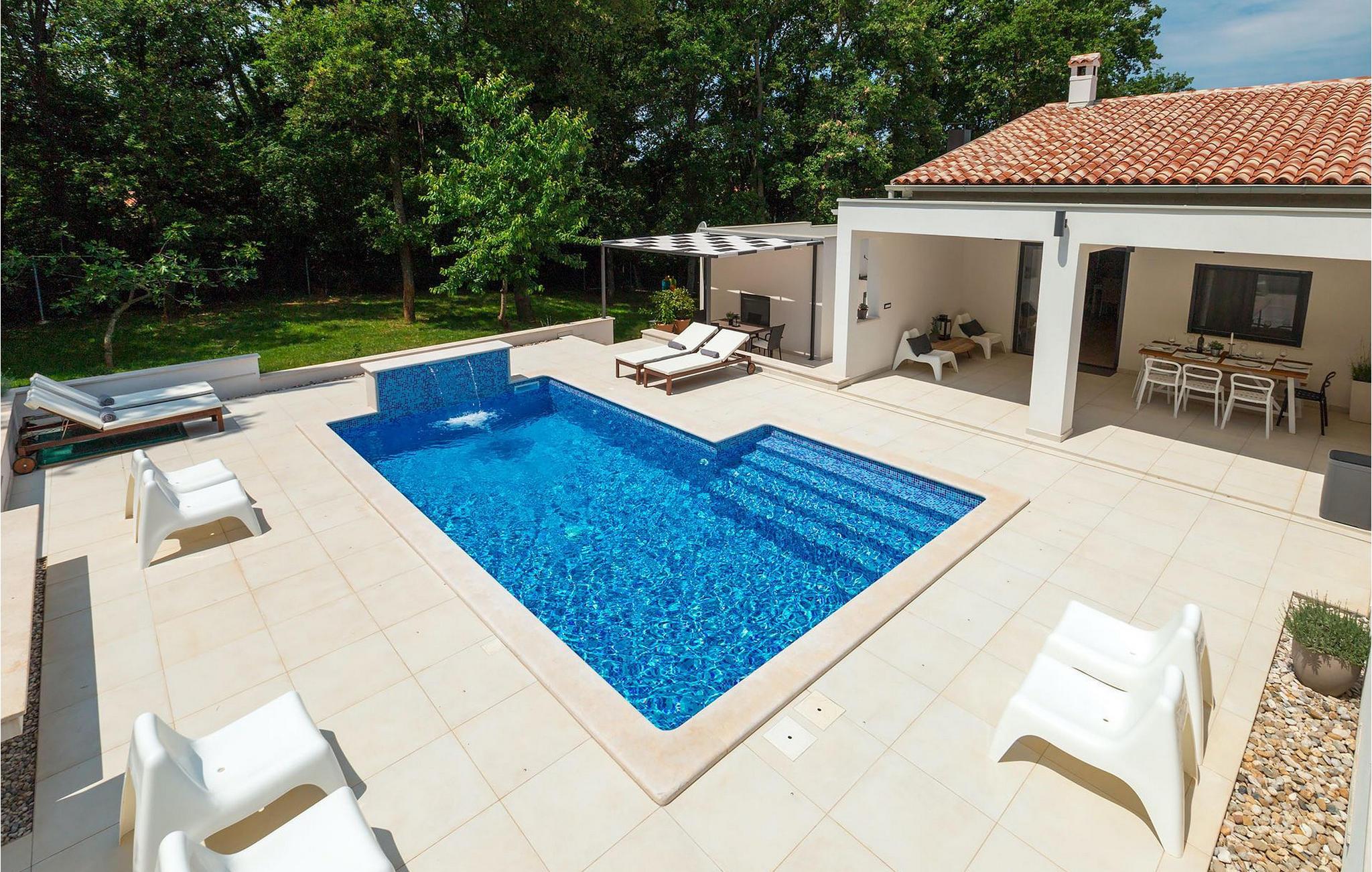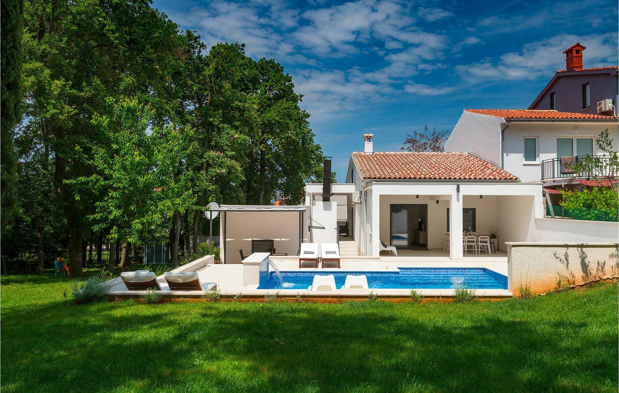 Ein wunderschöner umzäunter Garten umkreist das Haus und den einladenden privaten Pool mit viel Naturschatten. Dort können Sie das herrliche Klima genießen, während Sie beobachten wie die Kleinsten auf deren eigenem Spielplatz spielen.Pula ist der Tourismusknotenpunkt von Istrien, in kultureller und traditioneller Hinsicht aber auch aufgrund der schönen Naturlandschaft. Ihre Blütezeit erlebte die Stadt im römischen Zeitalter, das zahlreiche Spuren hinterließ, insbesondere das berühmte Amphitheater. In der venezianischen Zeit hat sich Pula zum Kontrollzentrum der Adria entwickelt und im Laufe der Jahrhunderte wurde der Hafen zum Bedeutendsten in der Region. Pula bietet alle möglichen Freizeitaktivitäten wie Sportangebote, Nachtklubs, Casinos, Pubs und Restaurants, sowie organisierte Touren. Die Stadt hat zwei Passagierhäfen, beide von großer Bedeutung für den Kreuzfahrttourismus. Heute ist Pula ein Ferienort zum Entspannen – an der wunderschönen Küste und kristallklarem Meer, sagenumwoben mit einer geschichtsträchtigen Vergangenheit. Unberührte Wälder, traumhafte Strände und das Mittelmeerklima verwandeln diesen Ort in eine Attraktion für Strandurlauber. Überall können Sie die einzigartige Natur genießen. Das atemberaubend schöne Naturschutzgebiet von Kap Kamenjak, sowie die weitbekannten Brioni Inseln mit ihrer einzigartigen Tier- und Pflanzenwelt schaffen eine exotische Oase in der nördlichen Mittelmeerregion.