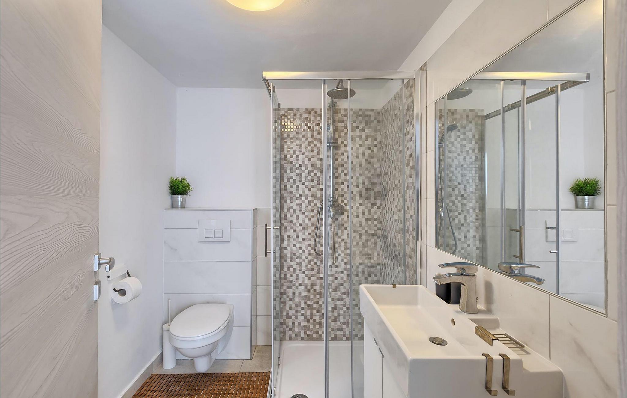- WC mit warmem und kaltem Wasser, Dusche