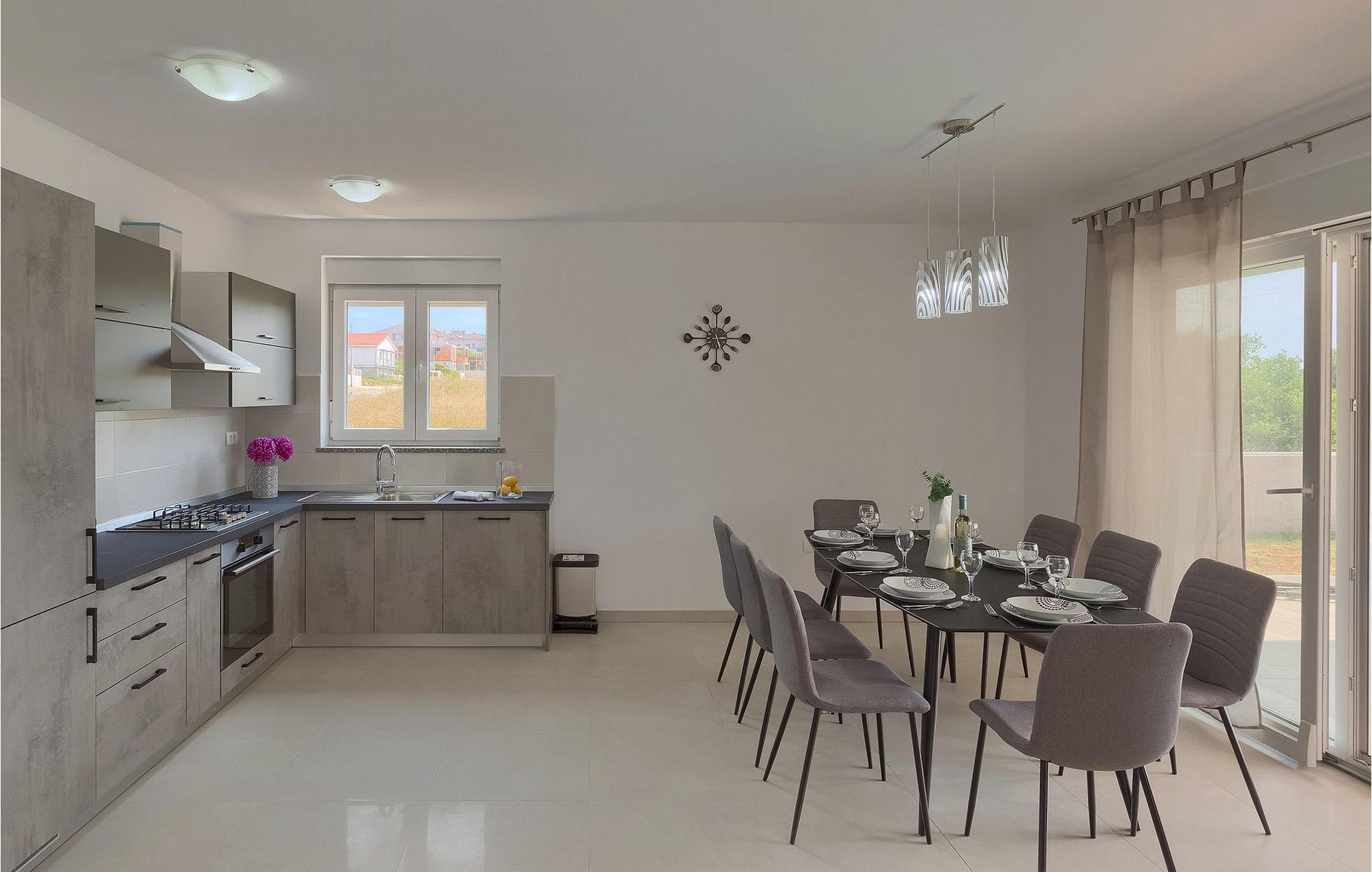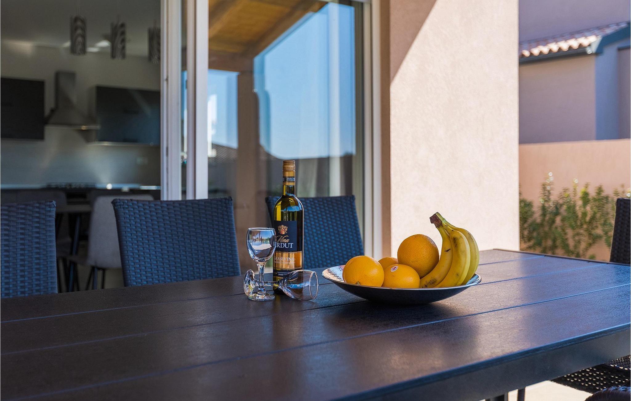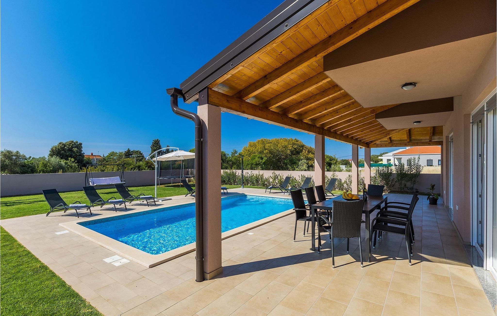 Im Sommer werden Sie bestimmt den wunderschönen Außenbereich zu schätzen wissen. Erfrischen Sie sich im Pool und genießen Sie danach die warmen Sonnenstrahlen auf einer der Sonnenliegen. Ihre Kinder werden begeistert sein zu hören, dass es im Garten ein Trampolin gibt. Von den Liegestühlen aus können Sie Ihre Kinder leicht im Auge behalten, während sie auf dem Trampolin spielenDie Lage dieser Villa ist wirklich günstig - nur wenige Kilometer vom nächsten Strand entfernt und in der Nähe von den Städten Pula und Medulin. Gleichzeitig befindet sich die Villa in einer relativ ruhigen Gegend. Pula ist der größte Hafen und das touristische Zentrum der Halbinsel Istrien. Pula ist reich an Kultur, Tradition und wunderschöner Natur und bietet alle Arten von Freizeitaktivitäten, darunter Sportanlagen, Restaurants sowie organisierte Ausflüge. Das Wahrzeichen dieser Stadt ist definitiv die zwanzig Jahrhunderte alte Stadtarena, in der während der Römerzeit Gladiatorenkämpfe und Jagdspektakel stattfanden. Heute ist es das sechstgrößte Amphitheater der Welt. Pula bietet tolle Möglichkeiten für den Urlaub. Außer der Stadt allein sollten Sie unbedingt die Umgebung besuchen - die üppig grüne Landschaft Südistriens, die Schönheit der umliegenden Strände, den Naturpark Kamenjak oder den Nationalpark Brioni.