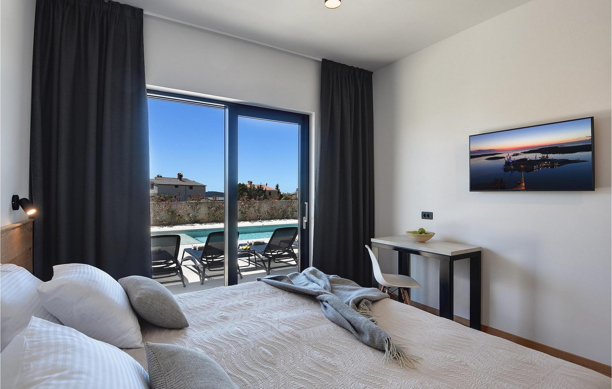 Möchten Sie sich entspannen und eine moderne Villa in der Nähe des Meeres genießen? Dann ist die Villa Aquarius der ideale Ort, um Ihre Wünsche zu erfüllen. Die Villa bietet Platz für vierzehn Personen und bietet sieben Schlafzimmer mit eigenem Bad, einen privaten Pool und einen wunderschönen Meerblick. Das Erdgeschoss der Villa verfügt über eine Eingangshalle, eine ausgestattete Küche mit Essbereich, ein Wohnzimmer und ein Schlafzimmer mit separatem Bad und eine separate Toilette. Im ersten Stock befinden sich drei Schlafzimmer mit separatem Bad, ein Schlafzimmer mit zwei Betten und separatem Bad, sowie eine Terrasse mit herrlichem Meerblick. Wachen Sie jeden Morgen auf und genießen Sie Ihren Kaffee mit Panoramablick. Genießen Sie mit Familie und Freunden die kroatische Adria und die Villa Aquarius, die Ihnen einen unvergesslichen Urlaub bieten wird. Villa Aquarius ist kein Partyhaus und Jugendgruppen sind nicht gestattet.Die Lage der Villa Aquarius ist einfach perfekt: Sie ist nur 2 km von den ersten Stränden entfernt, befindet sich in der Nähe des Stadtzentrums von Pula und ist nur eine kurze Autofahrt von Fazana entfernt, von wo aus Sie Sie ein Boot mieten und die Brijuni-Inseln, einen fabelhaften National Park, besuchen können.