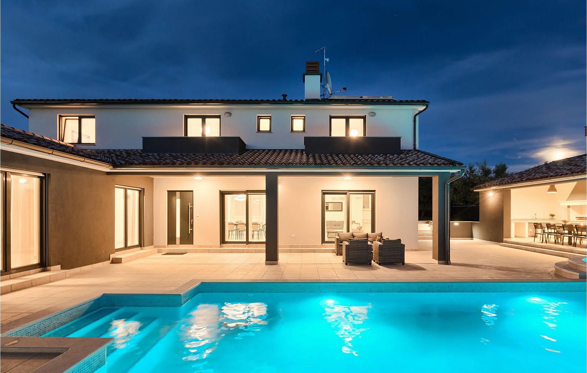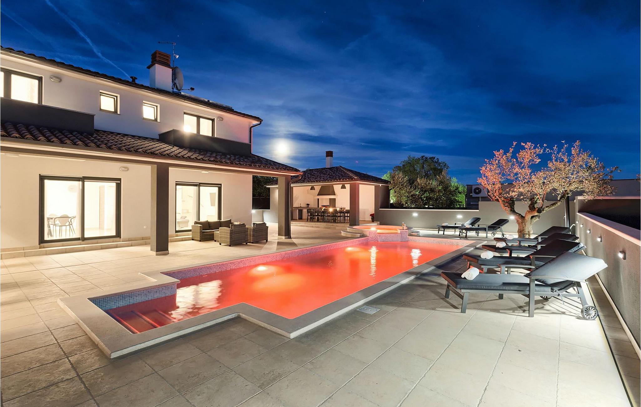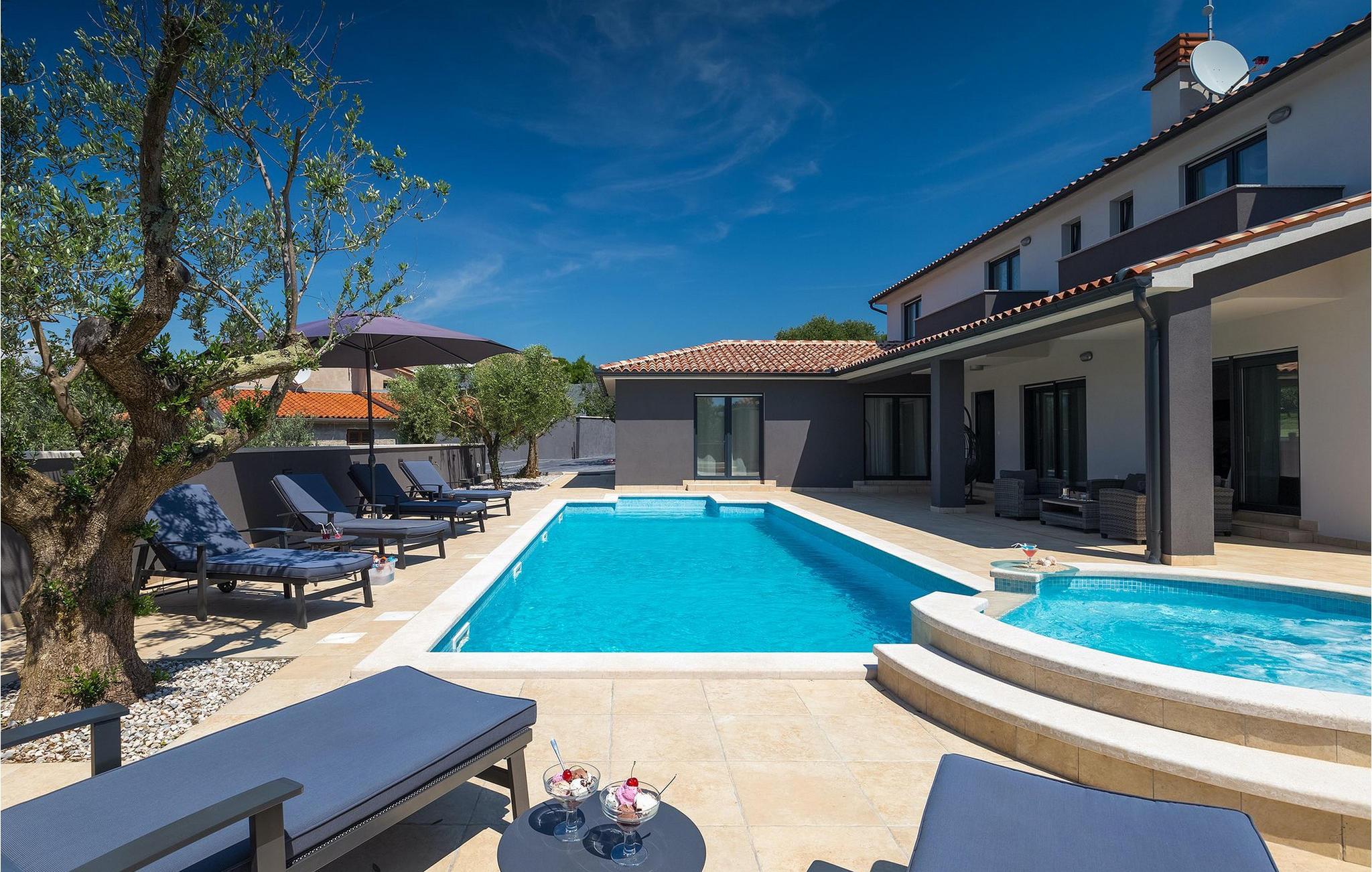 Villa San Demich ist eine entzückende moderne Villa, die Ihnen das perfekte Urlaubserlebnis bieten wird. Die Villa befindet sich in Pula, in der Nähe aller historischen Sehenswürdigkeiten, Bars, Restaurants usw. Sie ist von einem ziemlich großen Stück Land- ca. 1600 m2 umgeben, mit einem großen Garten, Essbereich im Freien, Jacuzzi im Freien und einem 60m2 großem Pool. Der Außenbereich ist groß genug, um 10 Personen zu beherbergen. Die Villa verfügt über 5 Schlafzimmer, jedes mit großen Doppelbetten, TV, Klimaanlage und Ensuite-Bad. Es gibt auch ein sechstes Bad. Der Wohnbereich umfasst eine voll ausgestattete moderne Küche, einen stilvollen Essbereich sowie ein komfortables Wohnzimmer. Im Wohnzimmer befindet sich ein Schlafsofa, das als Schlafmöglichkeit für zwei Personen genutzt werden kann. Vom Wohnbereich aus haben Sie direkten Zugang zum Poolbereich und Garten, wo Sie unvergessliche Sommertage verbringen können- entweder im Pool, wo Sie Abkühlung von der Sonne finden werden, oder auf dem Kinderspielplatz, wo Sie schöne Momente mit Ihren Kindern verbringen, oder einfach nur im Schatten der Außen-Küche, während Sie Ihren Lieblings-Sommer-Roman lesen oder eine köstliche Mahlzeit genießen. Es liegt an Ihnen, Sie müssen sich nur entscheiden!