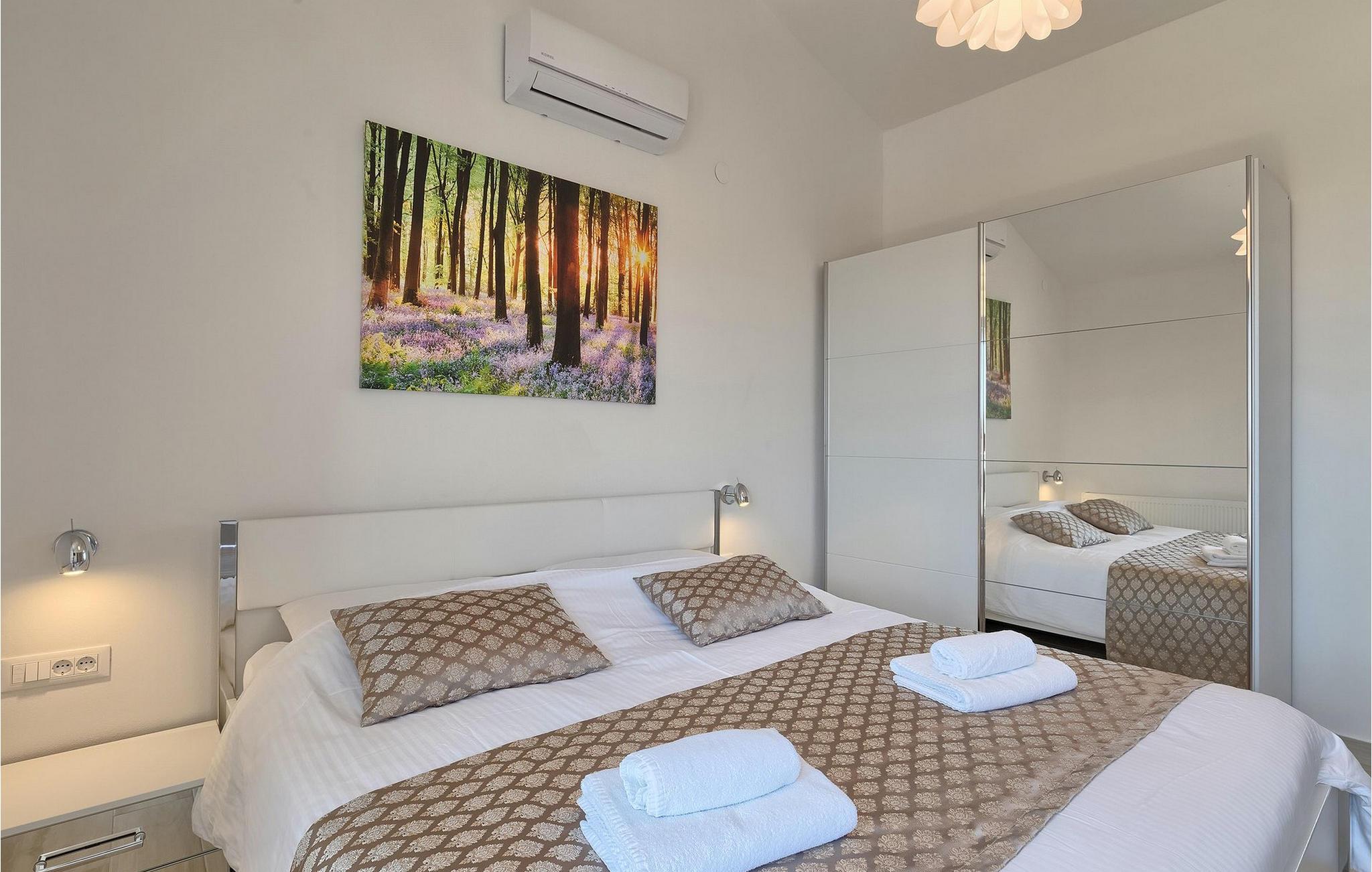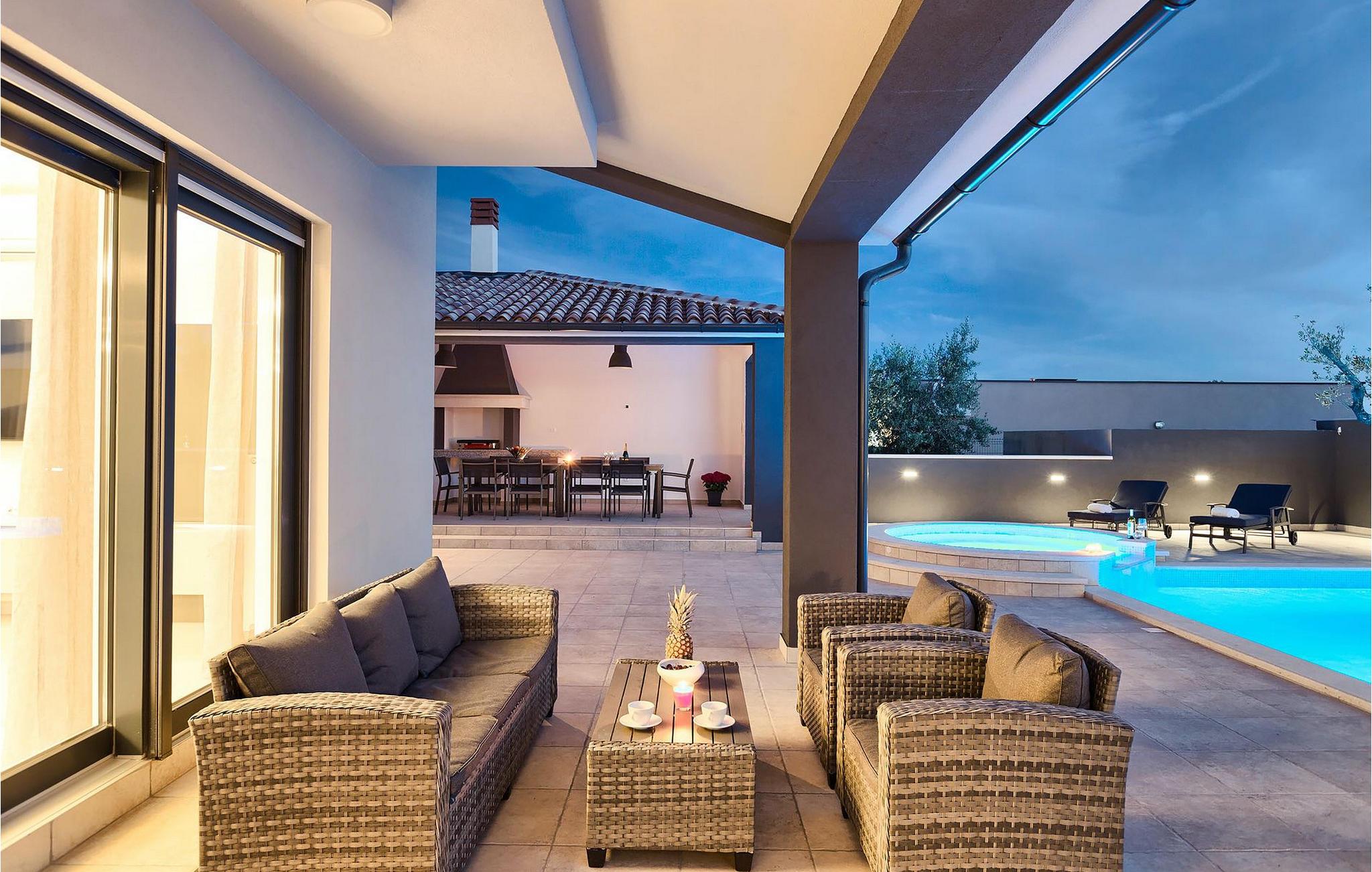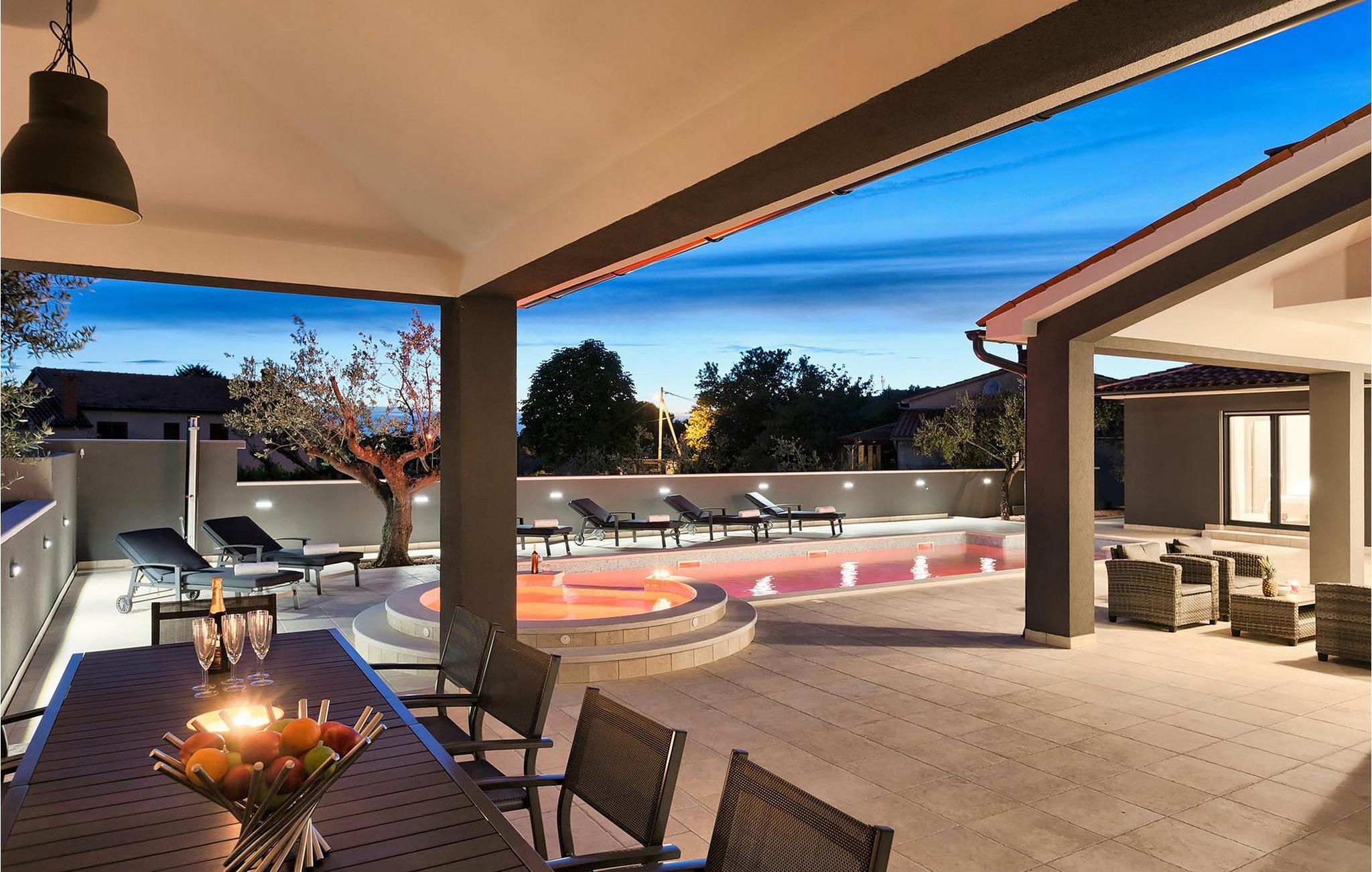 Villa San Demich ist eine entzückende moderne Villa, die Ihnen das perfekte Urlaubserlebnis bieten wird. Die Villa befindet sich in Pula, in der Nähe aller historischen Sehenswürdigkeiten, Bars, Restaurants usw. Sie ist von einem ziemlich großen Stück Land- ca. 1600 m2 umgeben, mit einem großen Garten, Essbereich im Freien, Jacuzzi im Freien und einem 60m2 großem Pool. Der Außenbereich ist groß genug, um 10 Personen zu beherbergen. Die Villa verfügt über 5 Schlafzimmer, jedes mit großen Doppelbetten, TV, Klimaanlage und Ensuite-Bad. Es gibt auch ein sechstes Bad. Der Wohnbereich umfasst eine voll ausgestattete moderne Küche, einen stilvollen Essbereich sowie ein komfortables Wohnzimmer. Im Wohnzimmer befindet sich ein Schlafsofa, das als Schlafmöglichkeit für zwei Personen genutzt werden kann. Vom Wohnbereich aus haben Sie direkten Zugang zum Poolbereich und Garten, wo Sie unvergessliche Sommertage verbringen können- entweder im Pool, wo Sie Abkühlung von der Sonne finden werden, oder auf dem Kinderspielplatz, wo Sie schöne Momente mit Ihren Kindern verbringen, oder einfach nur im Schatten der Außen-Küche, während Sie Ihren Lieblings-Sommer-Roman lesen oder eine köstliche Mahlzeit genießen. Es liegt an Ihnen, Sie müssen sich nur entscheiden!