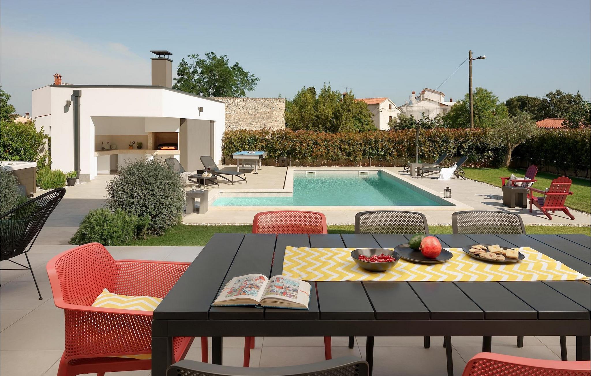 Villa Zen ist kein Partyhaus und Jugendgruppen sind nicht erlaubt.Villa Zen befindet sich in Vintijan, einem kleinen Dorf neben der Stadt Pula und ganz in der Nähe von Pjescana Uvala. Die Stadt Pula ist für ihr reiches Kulturerbe bekannt, von denen das bekannteste Denkmal das Römische Amphitheater ist. Pjescana Uvala, ein kleiner Ort in der Nähe von Pula, diente zunächst als ein ruhiger Erholungsort für die Einwohner von Pula, aber heute ist er fast vollständig auf den Tourismus ausgerichtet. Umgeben von grüner mediterraner Vegetation und gelegen am Ende des Veruda-Kanals, ist der Ort gut geschützt von Wind und bietet den ganzen Tag über viel Sonnenschein. Pjescana uvala ist für ihr reiches gastronomisches Angebot bekannt und hier werden sie Sie Bars, Geschäfte, Restaurants sowie einen Hafen vorfinden. Die Lage der Villa ist wirklich ideal, da die Villa in der Nähe von Pula liegt, aber dennoch weit genug vom Rummel der Stadt entfernt ist, damit Sie die Ruhe genießen und wirklich entspannen können. Pjescana Uvala und die nahe gelegene Insel Veruda sind auch fantastische Orte für Taucher. Weiter südlich liegt Medulin, eine kleine Stadt, die für ihr vielfältiges Angebot an Sportaktivitäten und schönen Sandstränden bekannt ist. Der Nationalpark Brijuni liegt ebenfalls in der Nähe und ist ideal für einen Tagesausflug mit der ganzen Familie.