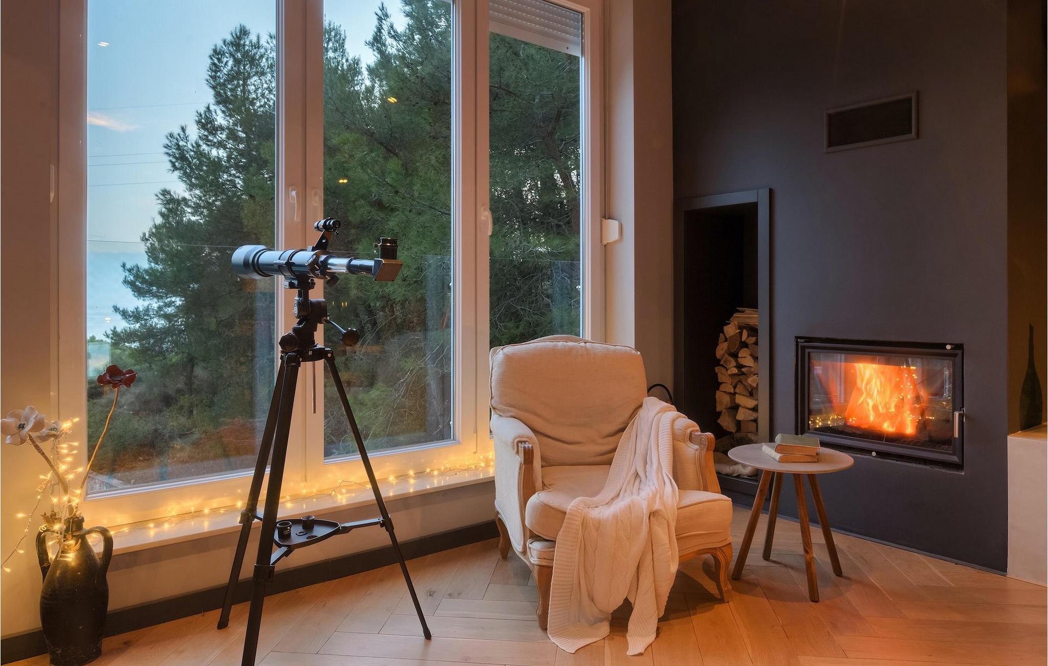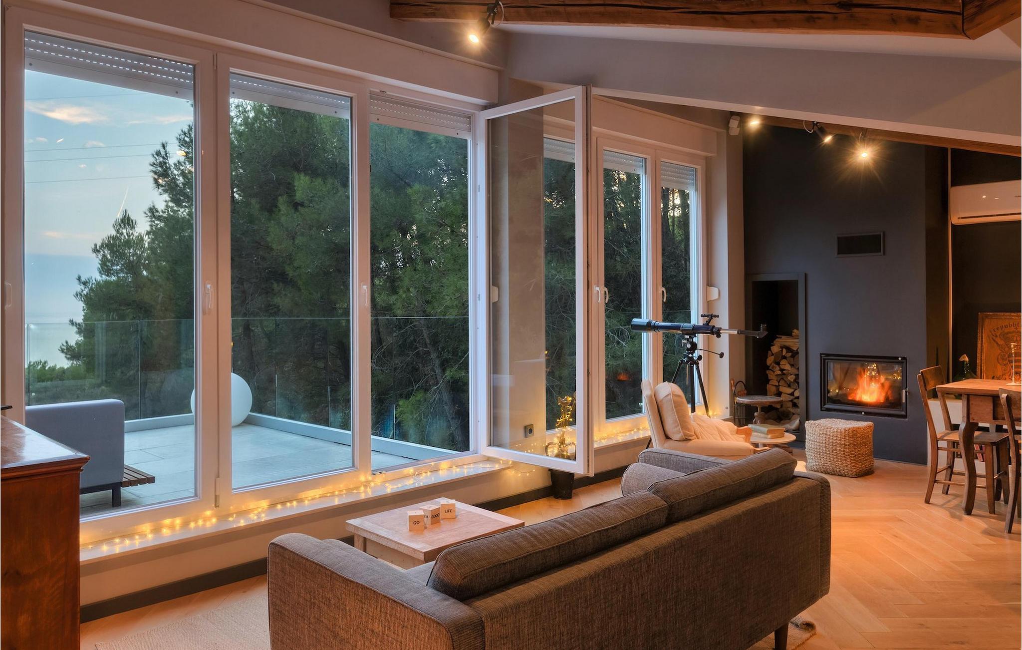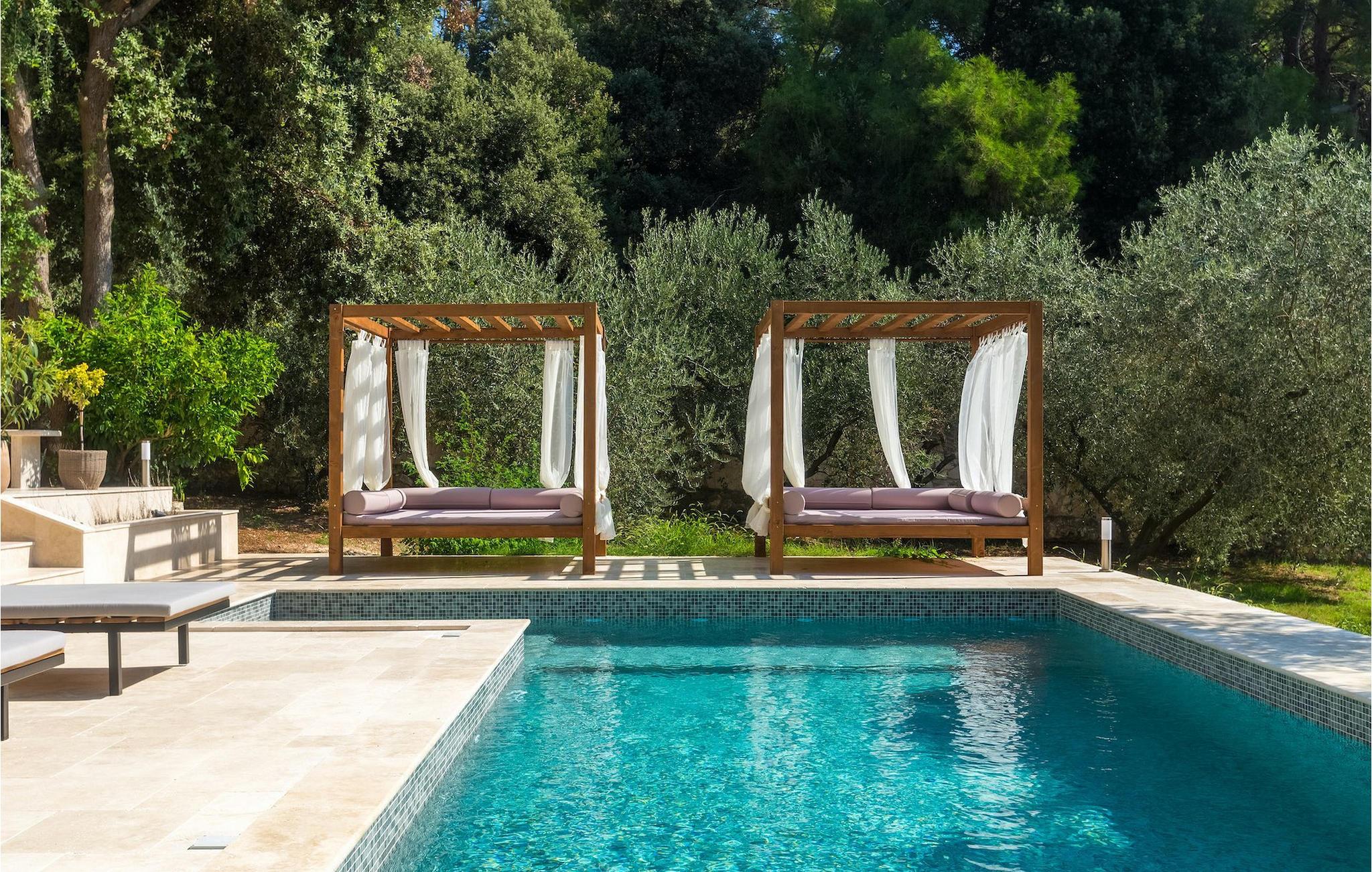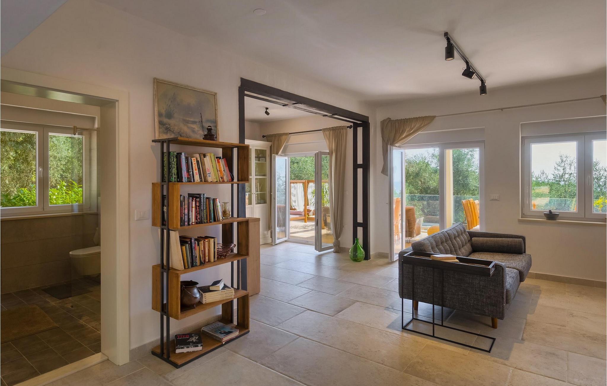 Der Wohnbereich im ersten Stock schaut zum Meer und bietet einen wunderschönen Panoramablick. Von hier aus gelangen Sie direkt auf die Außenterrasse mit einem Lounge-Bereich, ideal um ruhige, warme Sommernächte mit einem oder zwei Getränke zu genießen. Das Anwesen ist komplett umzäunt, umgeben von einem Wald und bietet somit viel Privatsphäre. Der Außenbereich ist eine wahre Oase für sich: Er bietet einen schönen privaten Pool, einen überdachten Essbereich für 8 Personen mit Grill und komfortable Lounge-Bereiche am Pool, die Sie sicherlich genießen werden. Alle Details in dieser geschmackvoll gestalteten und dekorierten Villa wurden von den Eigentümern aus verschiedenen Teilen der Welt sorgfältig ausgewählt, um den Gästen einen angenehmen Aufenthalt bieten zu können.