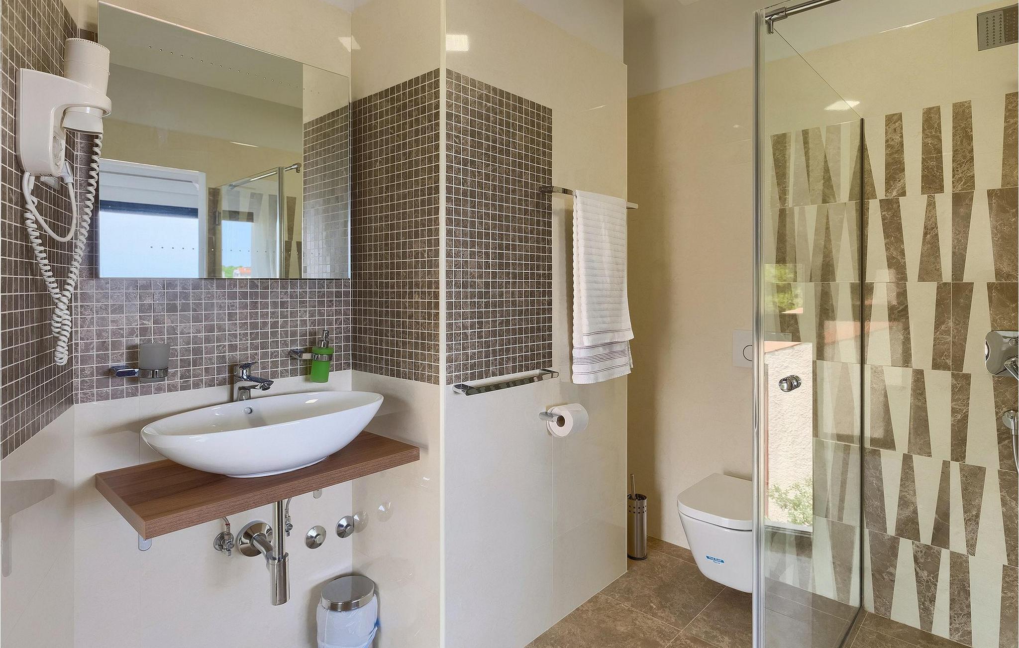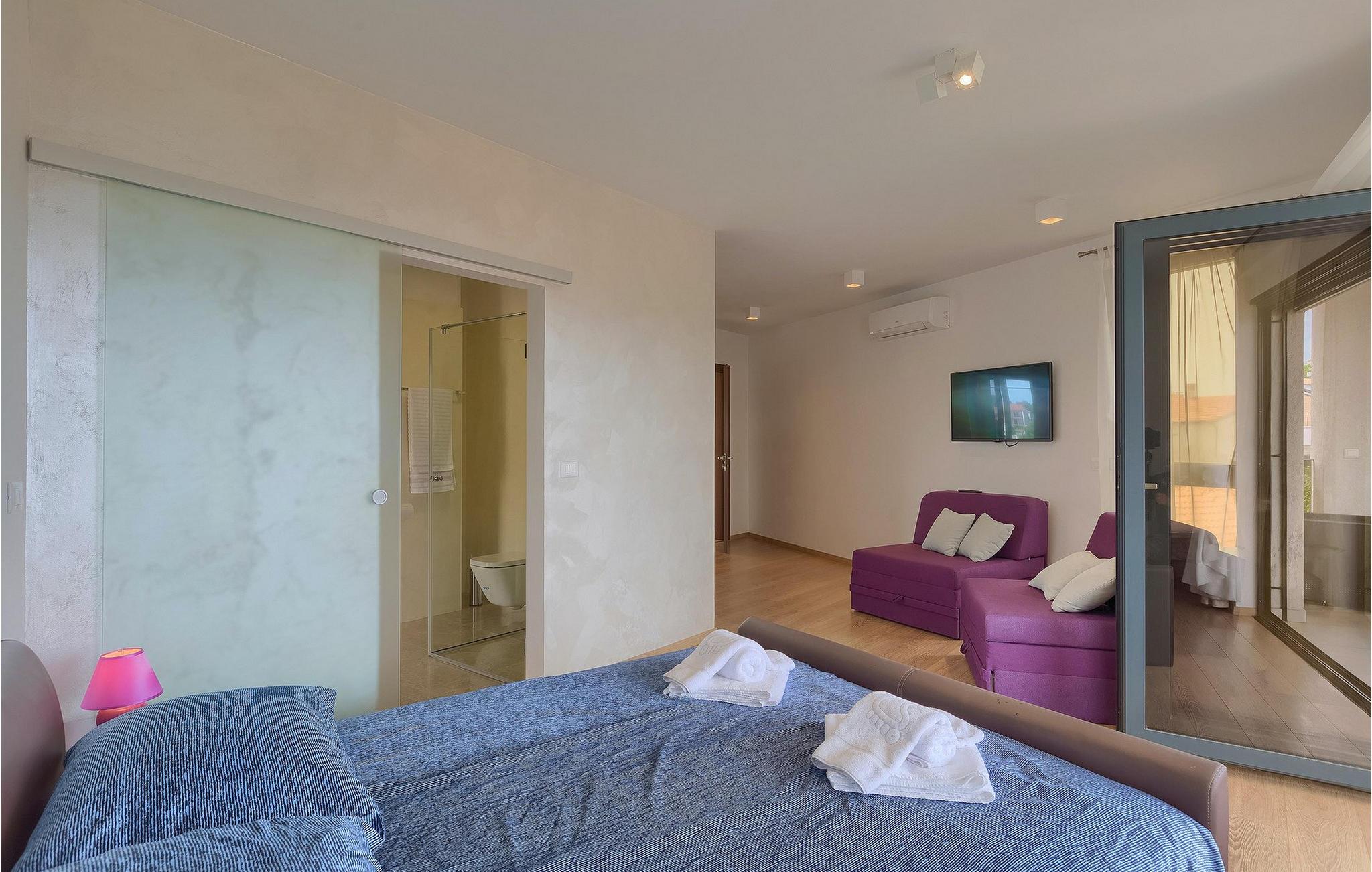 Die Räume sind auf 3 Etagen verteilt. Im Erdgeschoß finden Sie 2 Schlafzimmer, jeweils mit einem eigenen Badezimmer. Eines der Schlafzimmer hat einen direkten Zugang zum Pool. Im ersten Stock, der ein großer, offener Raum ist, befindet sich das gemütliche Wohn- und Essbereich mit einer eigenen Terrasse mit Meerblick, sowie eine komplett ausgestattete Küche. Im zweiten Stock finden Sie 2 weitere Schlafzimmer, auch bit privaten Badezimmern. Eines der Schlafzimmer hat auch eine Terrasse mit einer besonderen Attraktion: einem privaten Whirlpool. Alle Räume sind geräumig, hell und lichtdurchflutet, damit sich die Gäste der Villa wie zu Hause fühlen. Die Villa hat WiFi und ist komplett klimatisiert.Wie der Name sagt, befindet sich die Villa in einem der schönsten Teile der Stadt Pula names Valsabion. Nur einen Spaziergang entfernt sind die Strände, sowohl Sandstrände als auch Felsstrände. Die Strände sind von kleinen Inseln umgeben, die Sie durch Schwimmen oder mit einem Boot erreichen können. Nur 50 m von der Villa finden Sie Restaurants, Pizzerien, Bars usw. Die Marina ist auch nicht weit weg von der Villa. Das historische Zentrum der Stadt ist 2 km von der Villa. Sowohl Pula als auch die charmante Stadt Medulin sind leicht erreichbar. Pula ist eine historische Stadt und die ideale Wahl für diejenigen, die gerne Sehenswürdigkeiten besuchen. Das berühmteste, römische Monument in Pula, Start- und Endpunkt einer jeden Sightseeingtour, ist das Amphitheater, allgemein bekannt als die Arena von Pula, in der einst Gladiatorenkämpfe stattfanden. Es wurde im 1. Jahrhundert n. Chr. zur Zeit des Kaisers Vespasian, derselben Zeit wie das prächtige Kolosseum in Rom, errichtet. Heute ist es ein Schauplatz für Veranstaltungen im Sommer - Filmfestival, Opernsaison, Reitfest, Konzerte und Theateraufführungen. Die unterirdischen Tunnel, die einst von Gladiatoren benutzt wurden, dienen heute als Ausstellungsort.