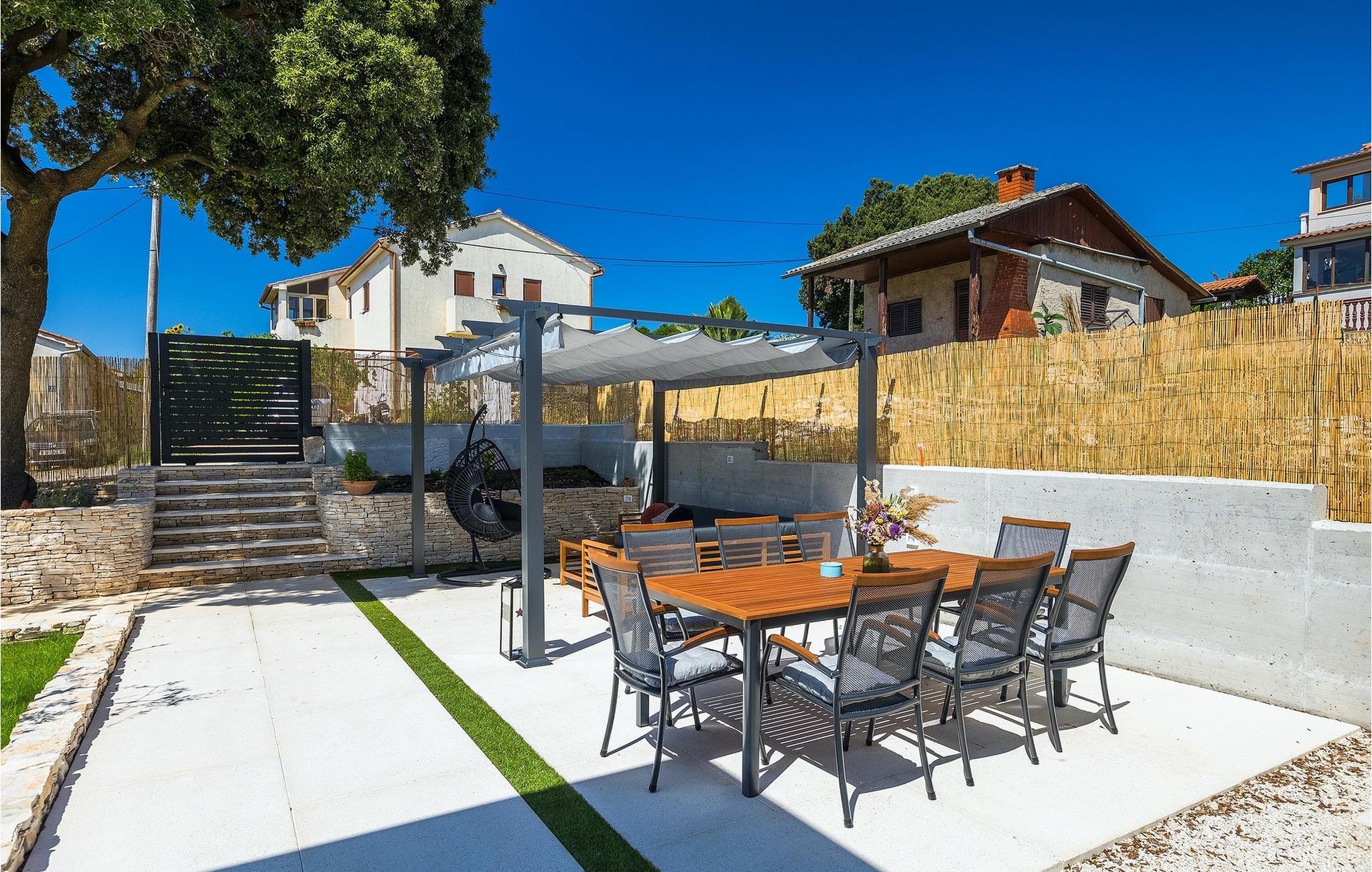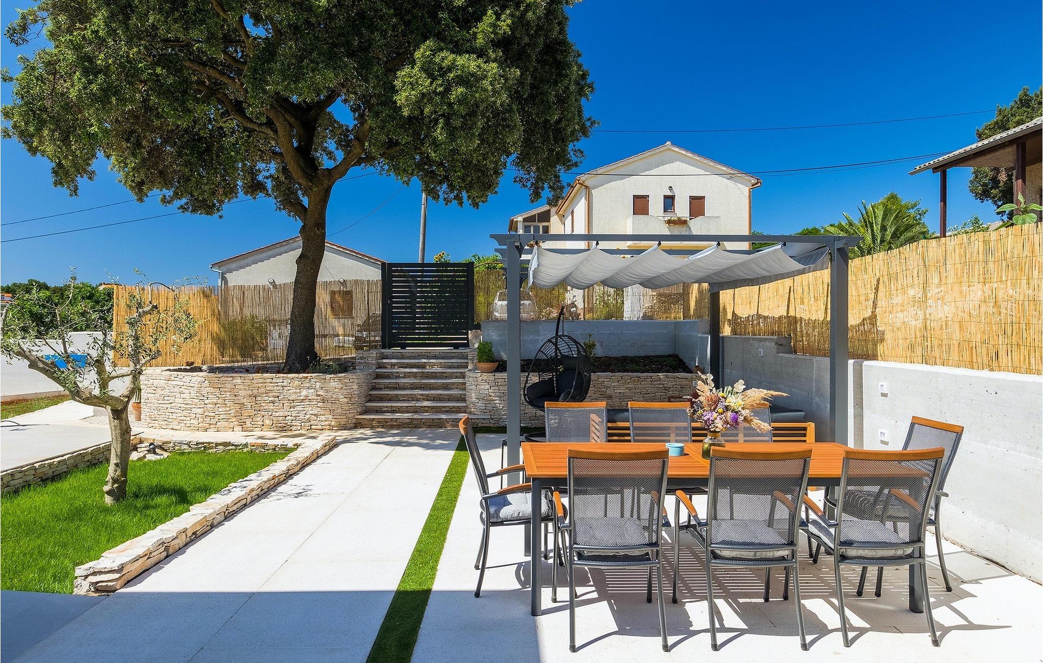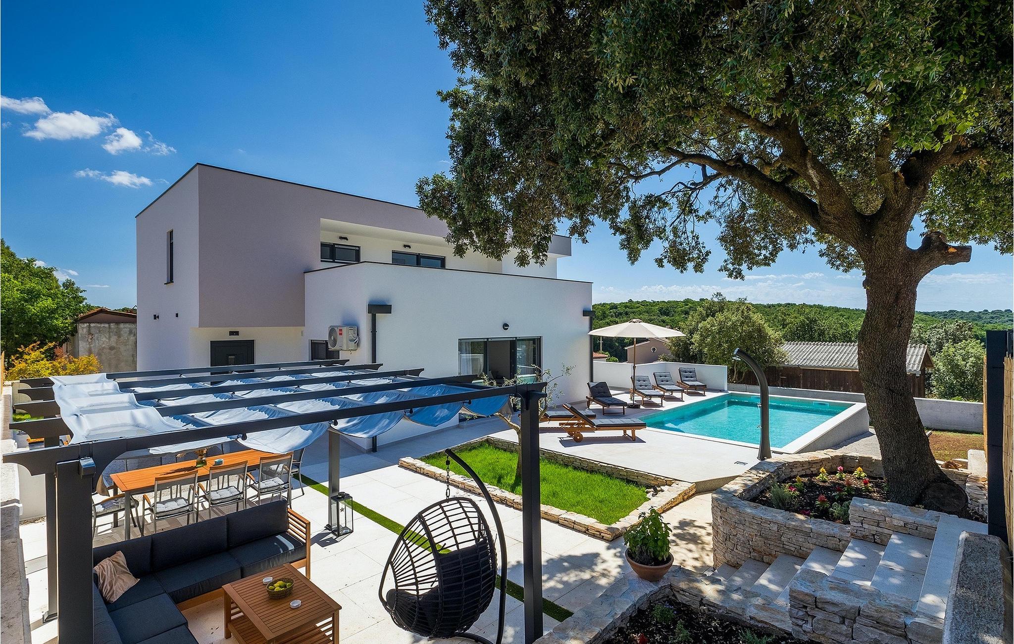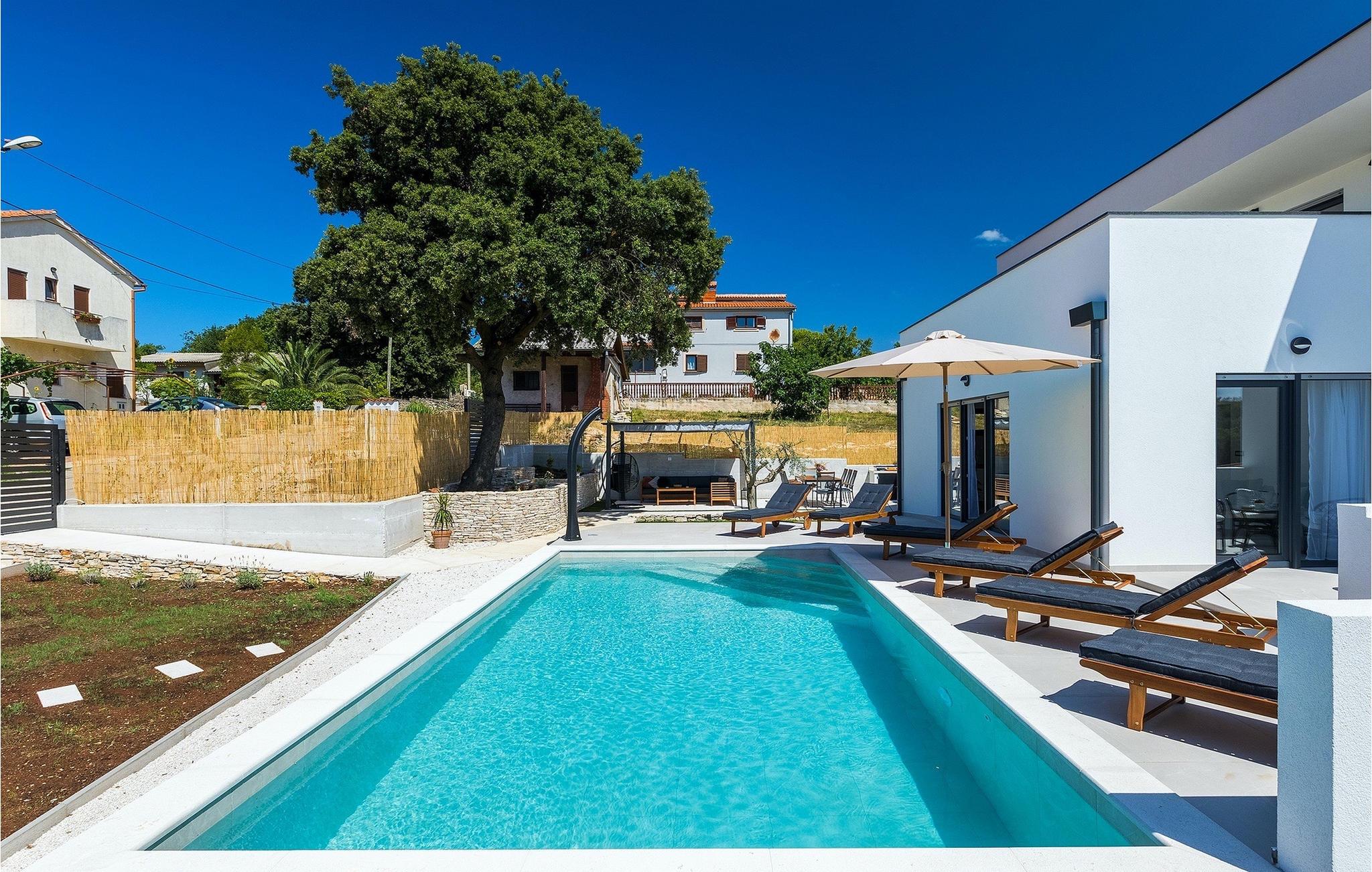 Die Villa My Hana befindet sich in der Nähe von der historischen Stadt Pula. Sie kann bis zu 8 Personen beherbergen und bietet alles für einen erholsamen Urlaub mit Ihren Liebsten. Im Außenbereich finden Sie einen schönen privaten Pool mit Liegestühlen sowie eine überdachte Terrasse mit Gartenmöbel, einen Grill und einen Essbereich im Freien. Das Grundstück ist komplett umzäunt und verfügt über einen privaten Parkplatz für bis zu 4 Autos. Das Erdgeschoss der Villa verfügt über ein stilvolles Wohnzimmer mit Essbereich und einer voll ausgestatteter Küche sowie zwei Schlafzimmer. Auf der Etage befinden sich zwei weitere komfortable Schlafzimmer und eine große Terrasse. Jedes Schlafzimmer verfügt über eine Klimaanlage, TV und eigenes Badezimmer. Die Villa My Hana ist die perfekte Wahl um Ihrem Alltag zu entfliehen und einen traumhaften Urlaub zu verbringen. Jugendgruppen sind nicht zugelassen.Die Villa My Hana befindet sich in der Nähe von Pula. Pula ist das touristische Zentrum Istriens in Bezug auf Kultur, Tradition und schöne Natur. Es hatte seine Blütezeit in der Römerzeit. Die Römer haben viele Spuren hinterlassen, insbesondere das schöne Amphitheater. Erkunden Sie die Straßen der Stadt und genießen Sie ihre ersten Tasse Kaffee in einem der zahlreichen Bars und Restaurants, wo Sie auch die bekannten Spezialitäten Istriens ausprobieren können. Nur eine kurze Fahrt entfernt ist das Kap Kamenjak, ein wunderbares Beispiel der unberührten Natur. Kristallklares Meer und Stränden mit natürlichem Schatten werden auch den wählerischen Gästen den Atem rauben. Für Sportliebhaber werden verschiedene Aktivitäten wie zum Beispiel Fußball, Reiten, Tennis, Segeln, Minigolf, Fliegen, Bowling, Volleyball auf dem Sand, Tauchen durch die Stille der Unterwasserwelt und mehrere andere Sport- und Wassersportarten angeboten.