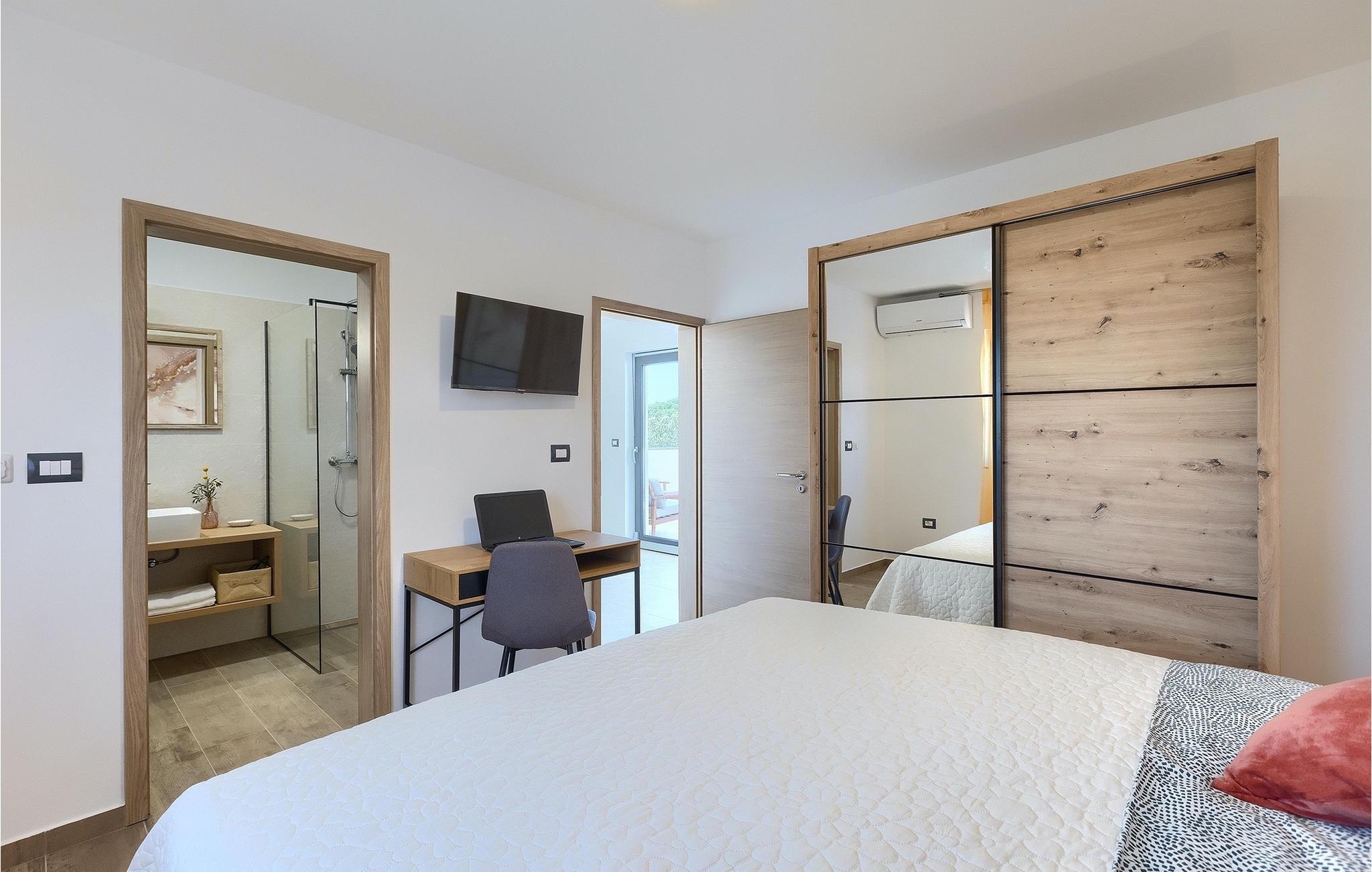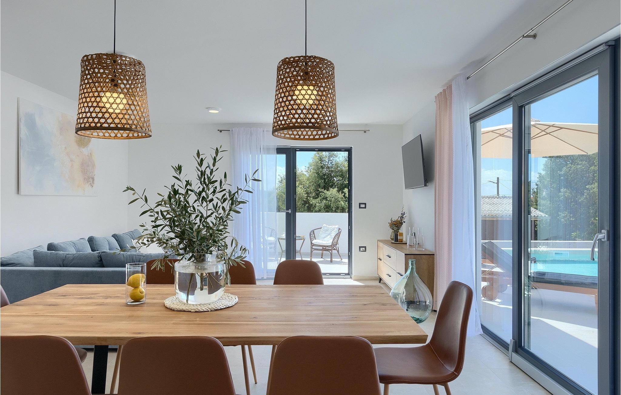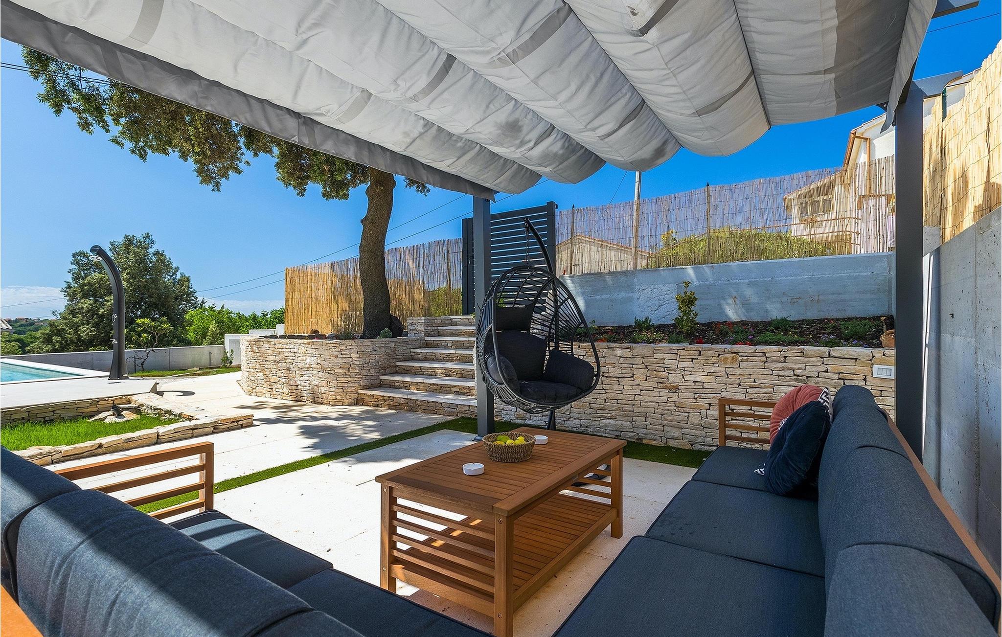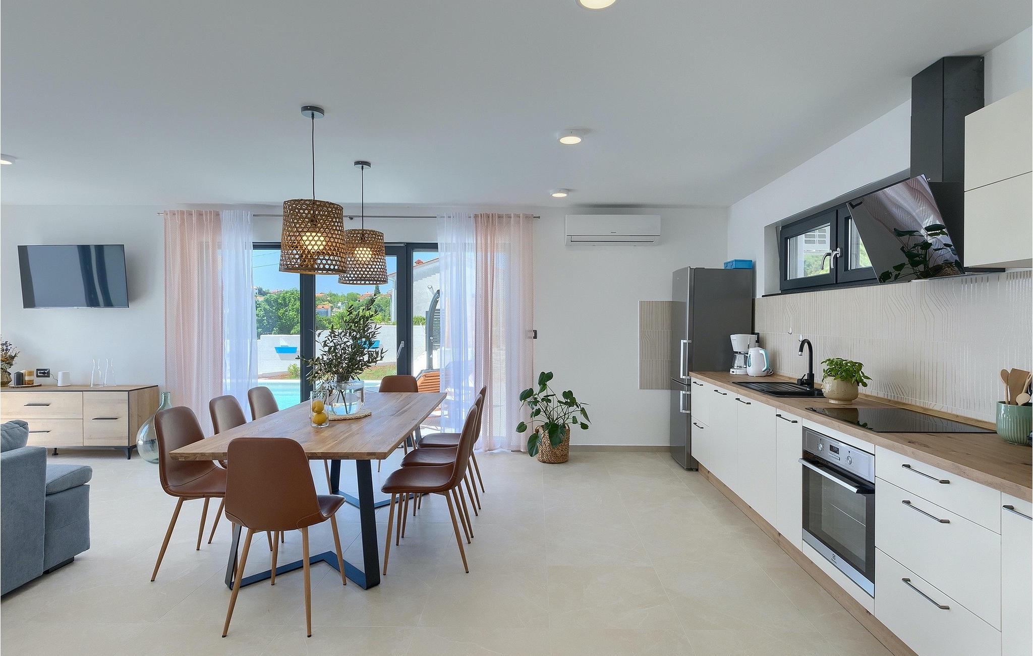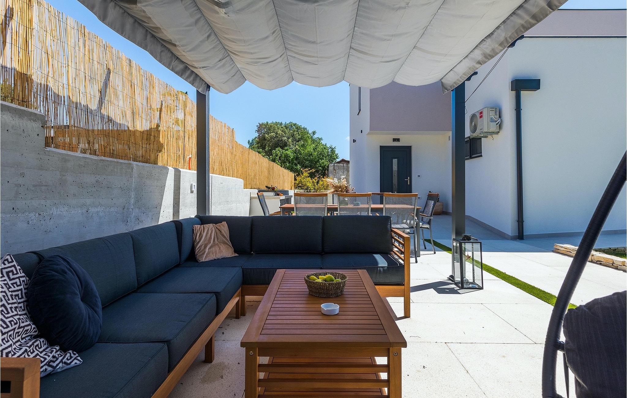 Die Villa My Hana befindet sich in der Nähe von der historischen Stadt Pula. Sie kann bis zu 8 Personen beherbergen und bietet alles für einen erholsamen Urlaub mit Ihren Liebsten. Im Außenbereich finden Sie einen schönen privaten Pool mit Liegestühlen sowie eine überdachte Terrasse mit Gartenmöbel, einen Grill und einen Essbereich im Freien. Das Grundstück ist komplett umzäunt und verfügt über einen privaten Parkplatz für bis zu 4 Autos. Das Erdgeschoss der Villa verfügt über ein stilvolles Wohnzimmer mit Essbereich und einer voll ausgestatteter Küche sowie zwei Schlafzimmer. Auf der Etage befinden sich zwei weitere komfortable Schlafzimmer und eine große Terrasse. Jedes Schlafzimmer verfügt über eine Klimaanlage, TV und eigenes Badezimmer. Die Villa My Hana ist die perfekte Wahl um Ihrem Alltag zu entfliehen und einen traumhaften Urlaub zu verbringen. Jugendgruppen sind nicht zugelassen.Die Villa My Hana befindet sich in der Nähe von Pula. Pula ist das touristische Zentrum Istriens in Bezug auf Kultur, Tradition und schöne Natur. Es hatte seine Blütezeit in der Römerzeit. Die Römer haben viele Spuren hinterlassen, insbesondere das schöne Amphitheater. Erkunden Sie die Straßen der Stadt und genießen Sie ihre ersten Tasse Kaffee in einem der zahlreichen Bars und Restaurants, wo Sie auch die bekannten Spezialitäten Istriens ausprobieren können. Nur eine kurze Fahrt entfernt ist das Kap Kamenjak, ein wunderbares Beispiel der unberührten Natur. Kristallklares Meer und Stränden mit natürlichem Schatten werden auch den wählerischen Gästen den Atem rauben. Für Sportliebhaber werden verschiedene Aktivitäten wie zum Beispiel Fußball, Reiten, Tennis, Segeln, Minigolf, Fliegen, Bowling, Volleyball auf dem Sand, Tauchen durch die Stille der Unterwasserwelt und mehrere andere Sport- und Wassersportarten angeboten.