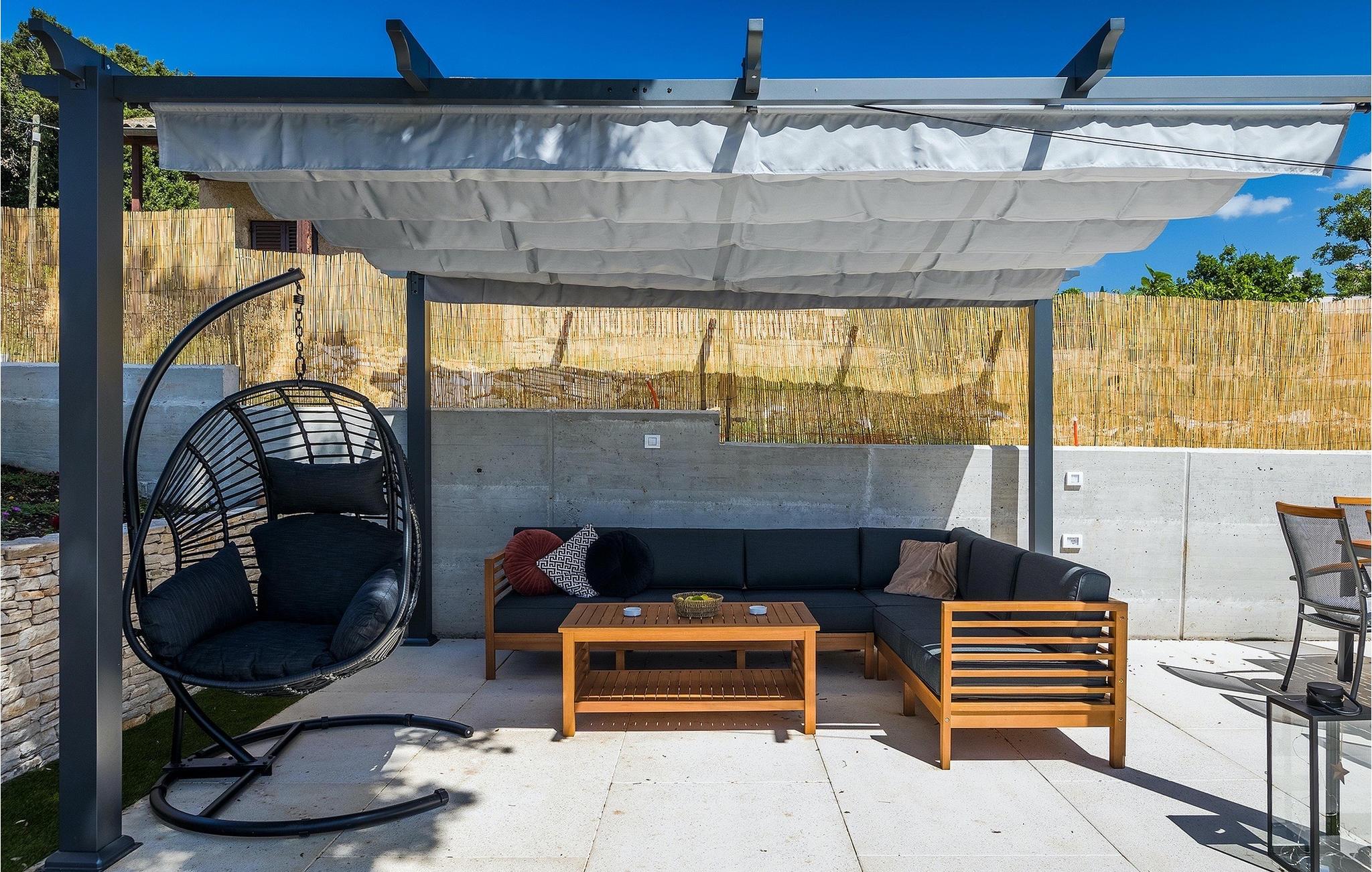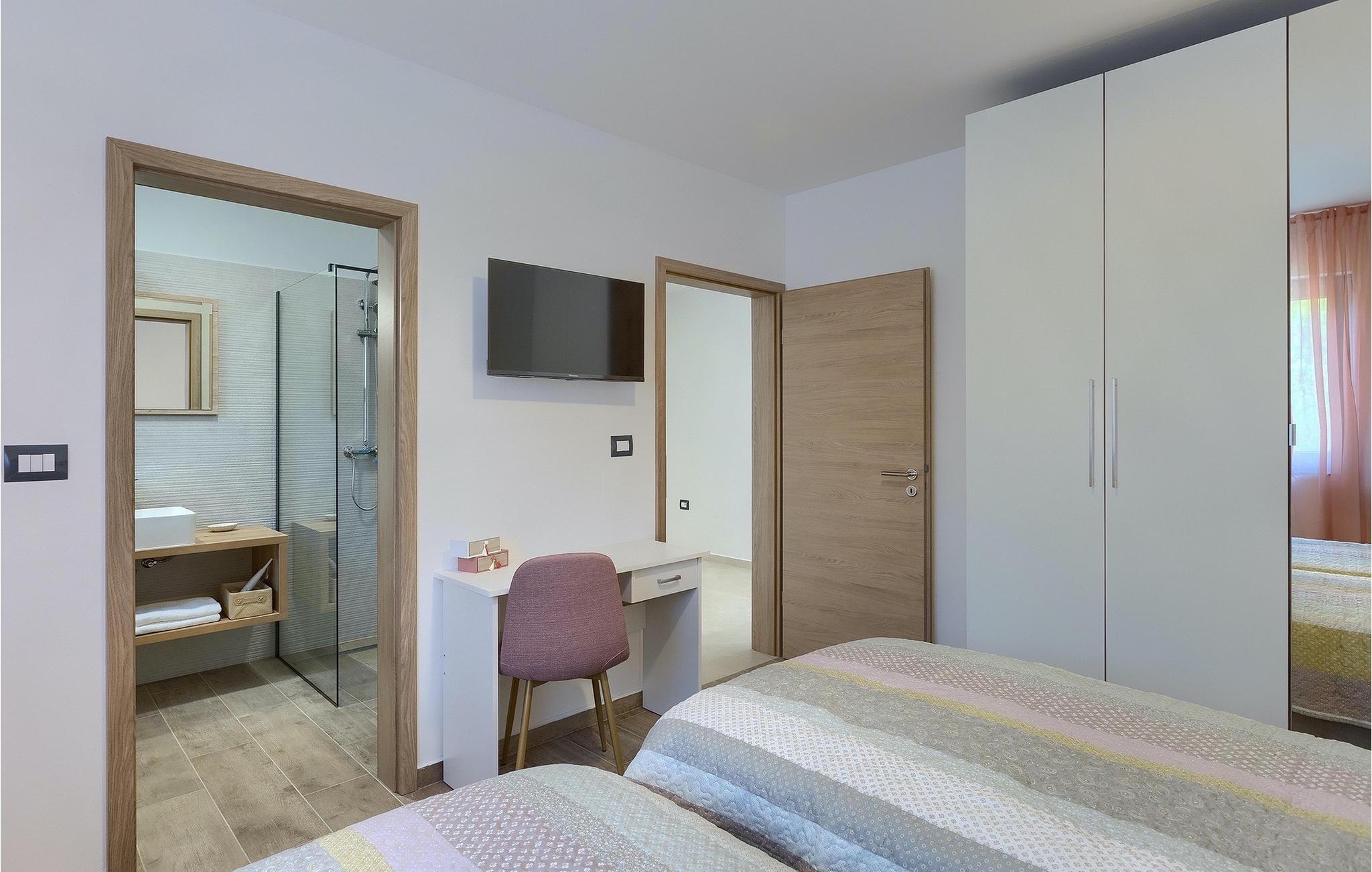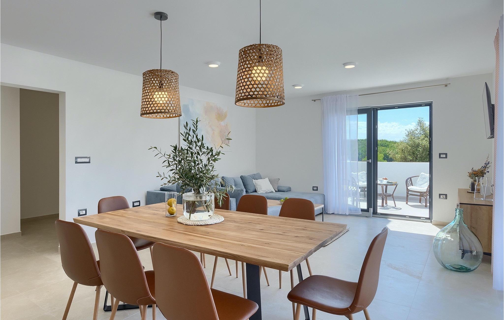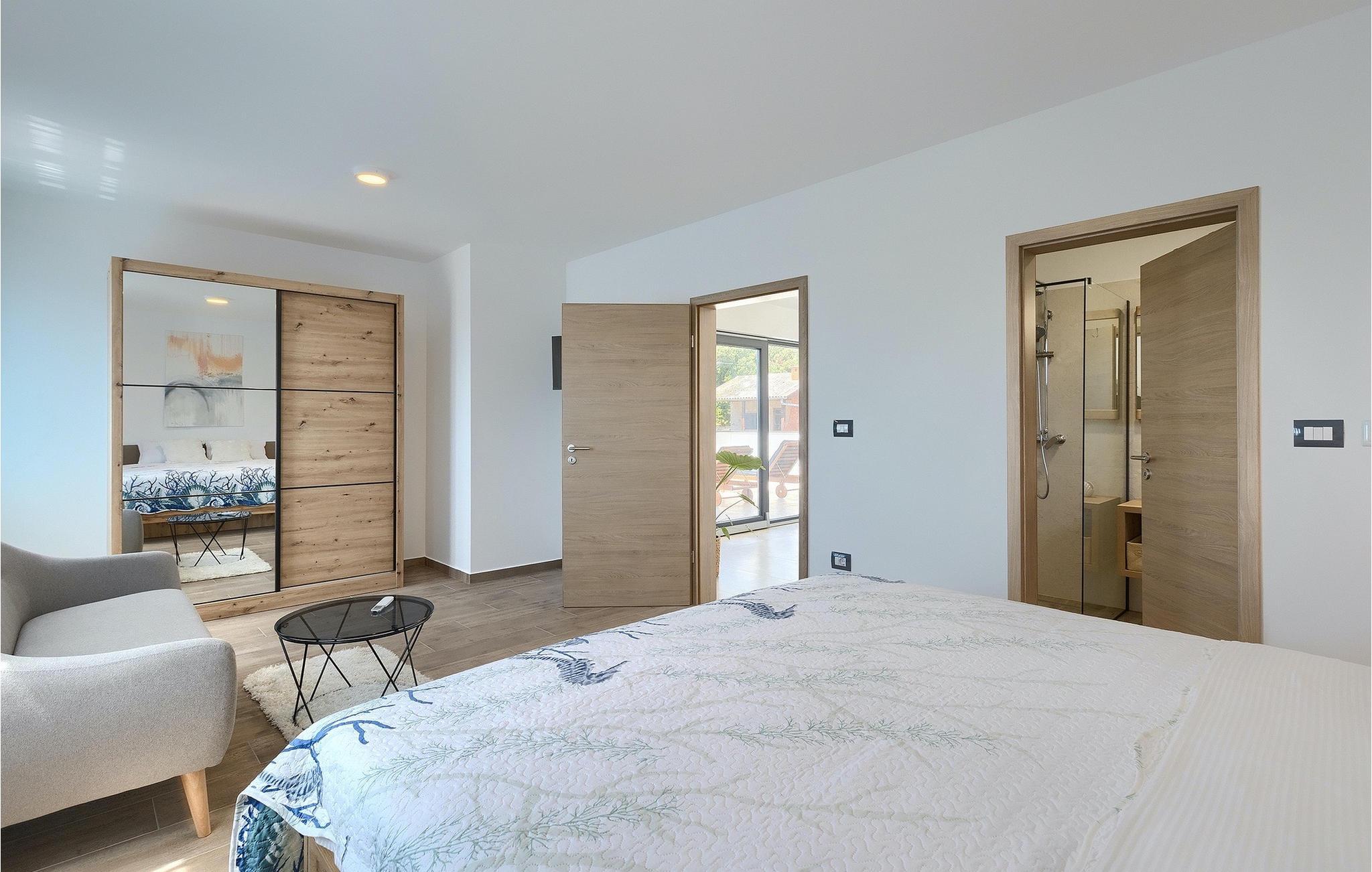 Die Villa My Hana befindet sich in der Nähe von der historischen Stadt Pula. Sie kann bis zu 8 Personen beherbergen und bietet alles für einen erholsamen Urlaub mit Ihren Liebsten. Im Außenbereich finden Sie einen schönen privaten Pool mit Liegestühlen sowie eine überdachte Terrasse mit Gartenmöbel, einen Grill und einen Essbereich im Freien. Das Grundstück ist komplett umzäunt und verfügt über einen privaten Parkplatz für bis zu 4 Autos. Das Erdgeschoss der Villa verfügt über ein stilvolles Wohnzimmer mit Essbereich und einer voll ausgestatteter Küche sowie zwei Schlafzimmer. Auf der Etage befinden sich zwei weitere komfortable Schlafzimmer und eine große Terrasse. Jedes Schlafzimmer verfügt über eine Klimaanlage, TV und eigenes Badezimmer. Die Villa My Hana ist die perfekte Wahl um Ihrem Alltag zu entfliehen und einen traumhaften Urlaub zu verbringen. Jugendgruppen sind nicht zugelassen.Die Villa My Hana befindet sich in der Nähe von Pula. Pula ist das touristische Zentrum Istriens in Bezug auf Kultur, Tradition und schöne Natur. Es hatte seine Blütezeit in der Römerzeit. Die Römer haben viele Spuren hinterlassen, insbesondere das schöne Amphitheater. Erkunden Sie die Straßen der Stadt und genießen Sie ihre ersten Tasse Kaffee in einem der zahlreichen Bars und Restaurants, wo Sie auch die bekannten Spezialitäten Istriens ausprobieren können. Nur eine kurze Fahrt entfernt ist das Kap Kamenjak, ein wunderbares Beispiel der unberührten Natur. Kristallklares Meer und Stränden mit natürlichem Schatten werden auch den wählerischen Gästen den Atem rauben. Für Sportliebhaber werden verschiedene Aktivitäten wie zum Beispiel Fußball, Reiten, Tennis, Segeln, Minigolf, Fliegen, Bowling, Volleyball auf dem Sand, Tauchen durch die Stille der Unterwasserwelt und mehrere andere Sport- und Wassersportarten angeboten.
