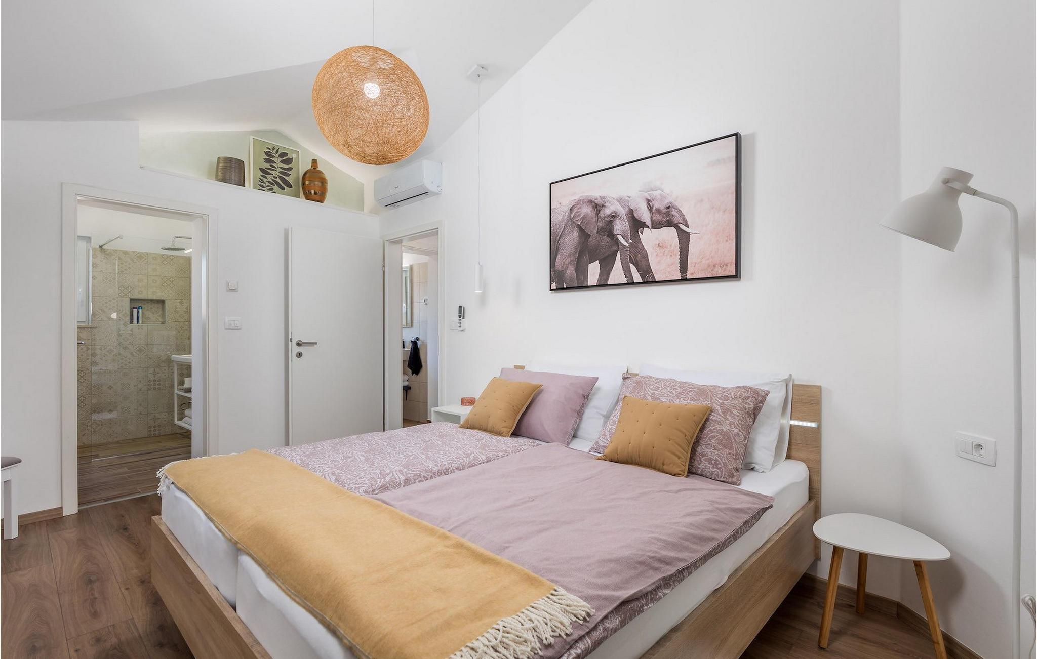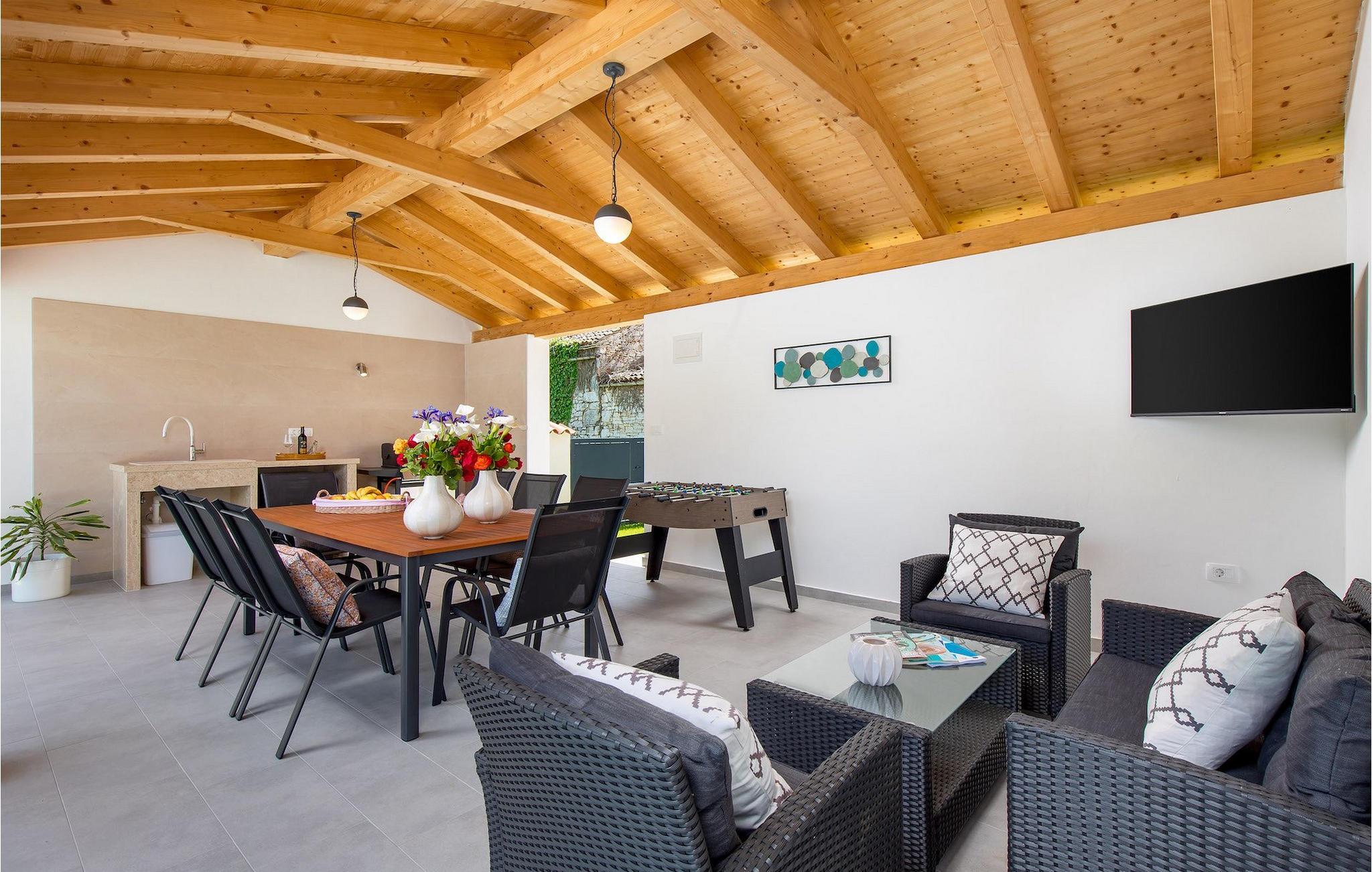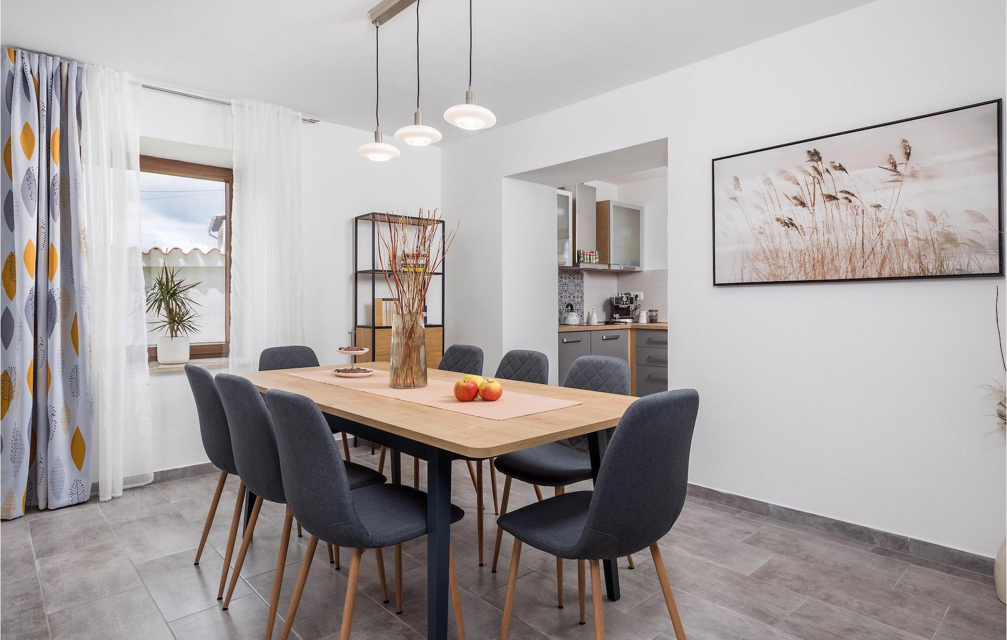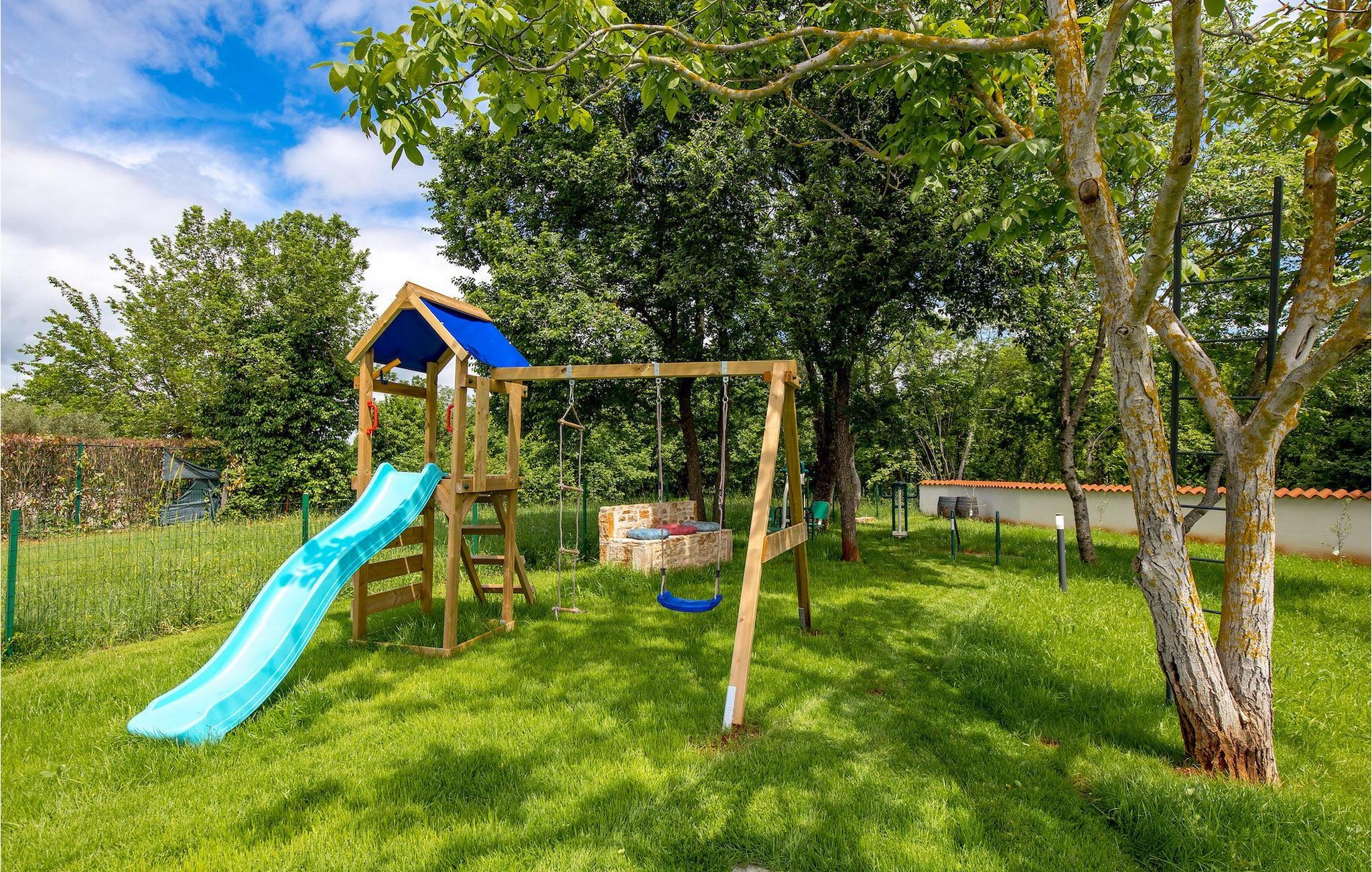 Die atemberaubende Villa Nola ist ein wahres istrisches Juwel und die perfekte Ferienvilla mit beheiztem Pool für eine 8-köpfige Familie in der Nähe des Meeres. Villa Nola bietet alles, was eine Familie oder eine Gruppe von Freunden für ihren Urlaub braucht. Im Außenbereich können Sie viele unterhaltsame und entspannende Stunden verbringen, indem Sie im Pool spielen, sich an heißen Sommertagen erfrischen, auf den Sonnenliegen die Sonnenstrahlen genießen und ein kaltes Getränk genießen, während die Kinder auf dem Spielplatz spielen. Sportliebhaber können auch im Urlaub fit bleiben, indem sie sich auf den Sportanlagen im Garten auspowern. Außerdem können Sie auf dem Gasgrill im Freien hausgemachte und traditionelle kroatische Gerichte zubereiten und im Essbereich im Freien herrlich speisen. Villa Nola verfügt außerdem über einen Hydromassage- und beheizten Pool mit einem Kinderpool mit geringerer Tiefe für sicheren und unbeschwerten Spaß für die Kinder. Auch der Innenbereich der Villa überzeugt durch ein modernes Design mit traditionellen Akzenten und Details. Im Erdgeschoss der Villa befanden sich ein Wohnzimmer, ein Esszimmer mit einer voll ausgestatteten Küche, ein Schlafzimmer mit Doppelbett, ein Badezimmer mit Dusche sowie eine separate Toilette im Waschraum. Die obere Etage besteht aus 3 weiteren Doppelzimmern, jedes mit eigenem Bad, SAT-TV und Klimaanlage. Mit einem Aufenthalt in der Villa Nola können Sie einen erholsamen und dennoch unterhaltsamen Urlaub mit Ihren Libesten verbringen. Zögern Sie also nicht, diese schöne istrische Villa zu buchen. Villa Nola befindet sich in einem kleinen Dorf namens Mali Vareski im östlichen Teil der Halbinsel Istrien. Die Villa bietet eine großartige Lage für Gäste, die gerne die Natur, atemberaubende Strände und schöne istrische Städte erkunden. Innerhalb einer kurzen Autofahrt erreichen Sie die beliebte Touristenstadt Pula, die für ihre historischen Denkmäler bekannt ist. Sie können an die Küste fahren und tolle Erinnerungen an der Adria sammeln und sich auch im Urlaub auf den vielen Radwegen in der Nähe in Form halten. Vergessen Sie nicht, die traditionelle istrische Küche zu genießen, indem Sie die süßen Tavernen in der Nähe besuchen und das probieren, wofür Istrien am berühmtesten ist, wie Olivenöl, Trüffel, Fuzi oder istrischen Prosciutto. Es gibt viele Möglichkeiten, den Charme Istriens bei einem Aufenthalt in der Villa Nola wirklich zu spüren, und die Lage bietet Ihnen so viele tolle Sehenswürdigkeiten und Dinge, die es zu erkunden gilt. Die Temperatur des beheizten Schwimmbades hängt von äußeren Faktoren, einschließlich der Wetterbedingungen, ab und daher kann die Wassertemperatur nicht garantiert werden.