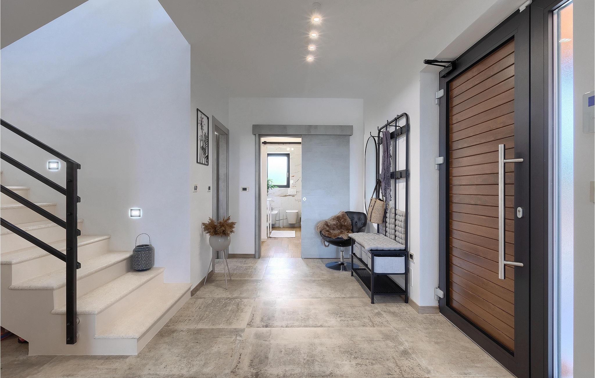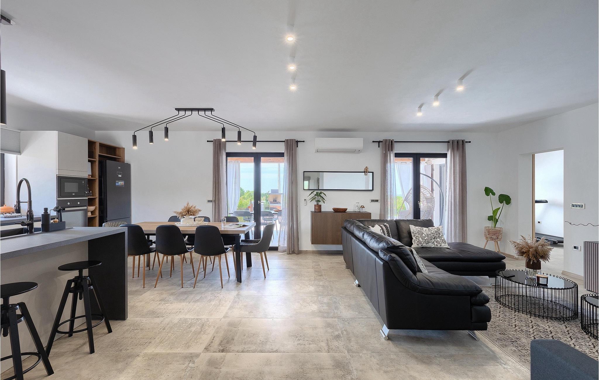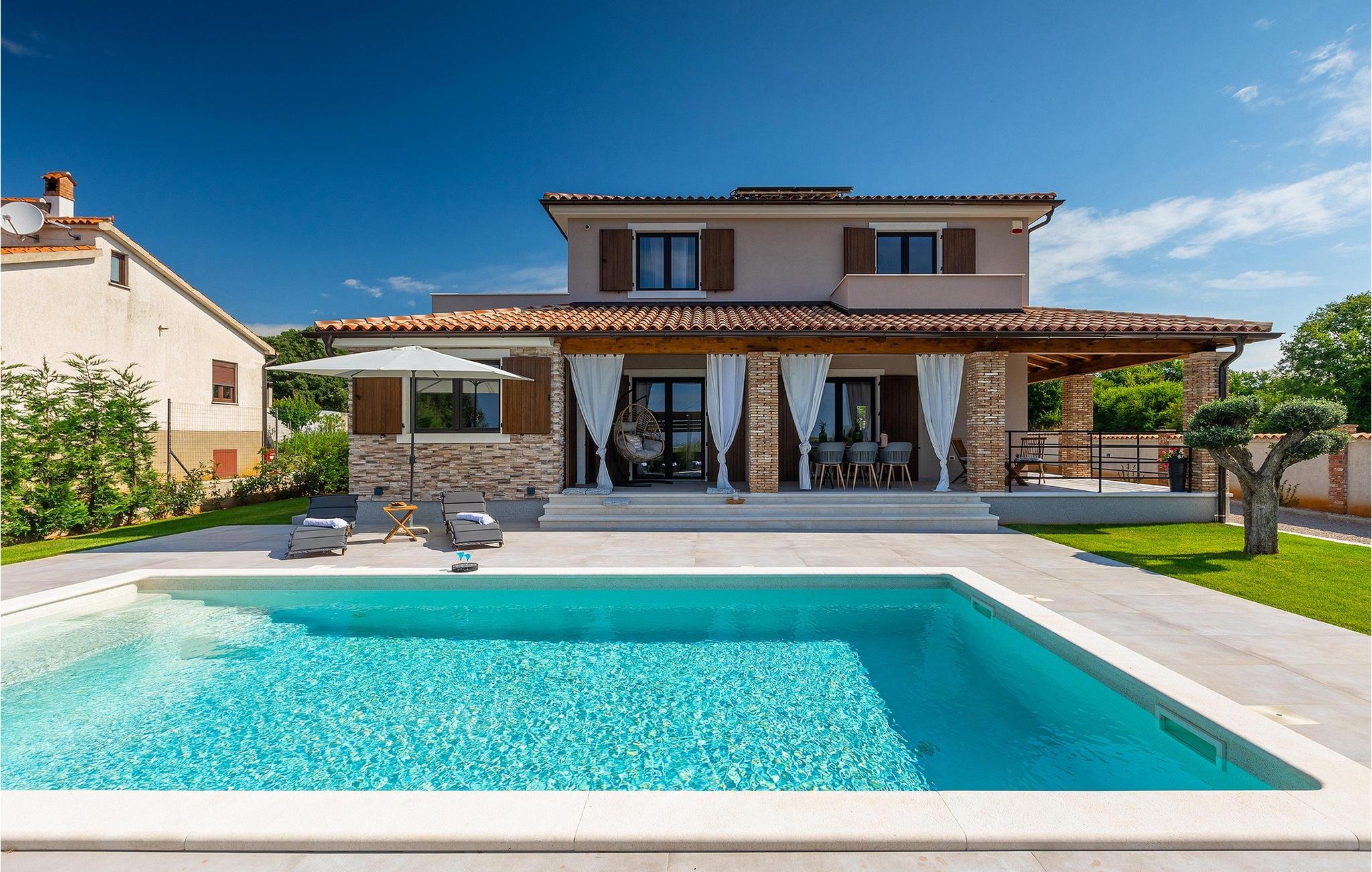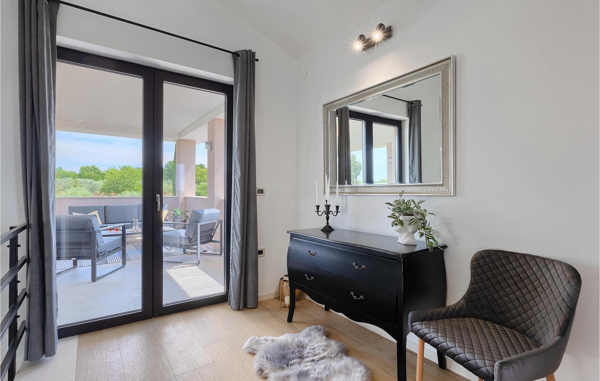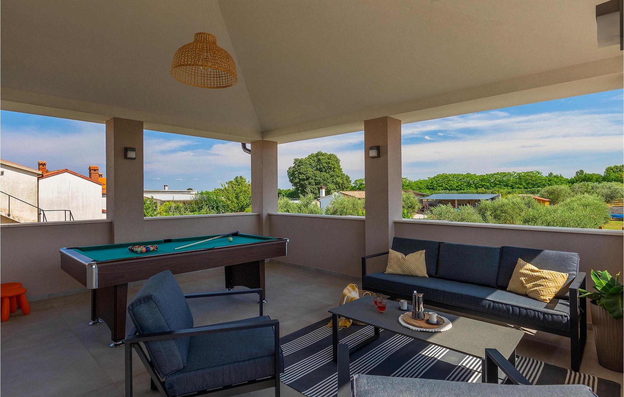 Villa Delfar liegt in Galizana in der Nähe von Pula und ist die richtige Villa für Sie, wenn Sie auf der Suche nach einem luxuriösen, ruhigen und aktiven Urlaubserlebnis sind. Es bietet Ihnen in erster Linie einen fantastischen privaten Pool. Darüber hinaus stehen Ihnen eine Sauna und ein eigener Fitnessraum mit Laufband und Heimtrainer zur Verfügung. Die Eigentümer der Villa haben auch viel Wert auf Ihren Komfort gelegt, denn in der gesamten Villa gibt es Fußbodenheizung sowie drei komfortable Schlafzimmer mit eigenem Bad und Sat-TV. Im Erdgeschoss finden Sie eine moderne, elegante und voll ausgestattete Küche sowie einen offenen Raum mit einem modernen und komfortablen Wohn- und Essbereich für 8 Personen. Auch wenn das alles erstaunlich ist, werden Sie wahrscheinlich trotzdem die meiste Zeit im Freien verbringen, wo Sie einen Esstisch im Freien, einen Grill, einen Billardtisch, einen Kinderspielplatz und vieles mehr finden. Entspannen Sie sich und genießen Sie es! Galizana ist eine kleine Ortschaft in der Nähe von Pula, der größten Stadt Istriens, die für ihre historischen Stätten bekannt ist. Die Geschichte von Galizana reicht bis in die römische Zeit zurück. Heute ist es ein kleiner Ort mit 1500 Einwohnern, mit der Pfarrkirche St. Rochus aus dem 17. Jahrhundert im Zentrum des Ortes. Da es sich um eine landwirtschaftlich geprägte Region handelt, betreibt die Bevölkerung überwiegend Weinbau, Olivenanbau und Viehzucht und produziert Olivenöl, Ziegenkäse und andere lokale Produkte. Der Vorteil von Galizana ist seine ruhige Lage in der typisch istrischen Landschaft und die Nähe zu vielen attraktiven Annehmlichkeiten, die nur eine kurze Autofahrt entfernt sind. Einige davon sind das römische Amphitheater aus dem 1. Jahrhundert, Nationalpark Brijuni-Inseln. Wählen Sie Ihren perfekten Platz an einem Kies-, Stein- oder Sandstrand an der Küste zwischen Fazana und Valbadon oder besuchen Sie die steilen Strände des Naturparks Kamenjak, dem südlichsten Ort Istriens. Entdecken Sie das Binnenland Istriens und seine mittelalterlichen Bergstädte mit ihrem reichen Erbe, ihrer Tradition und ihren gastronomischen Highlights.