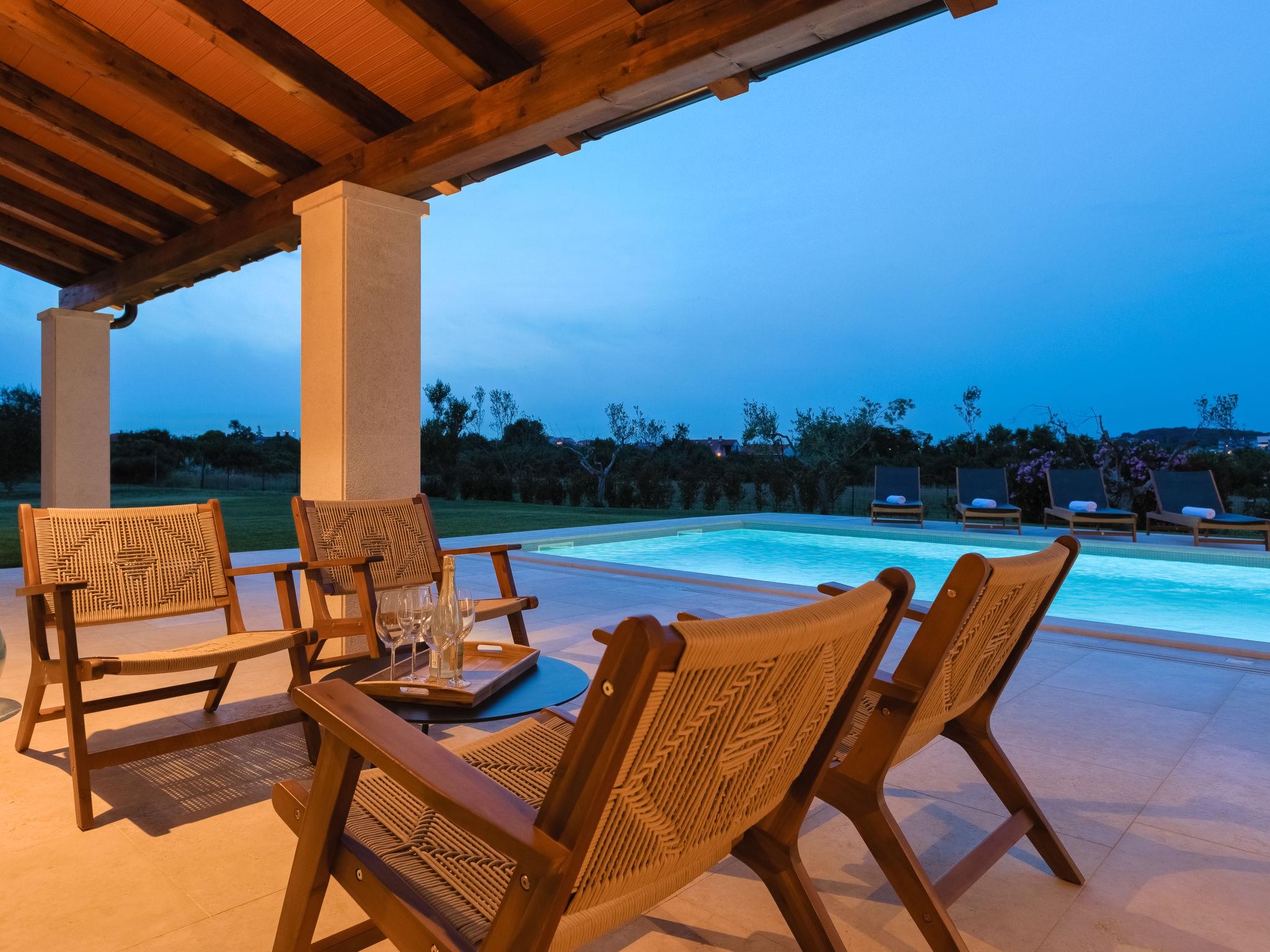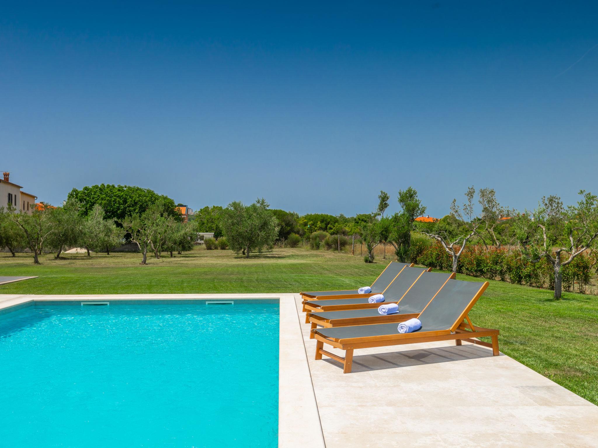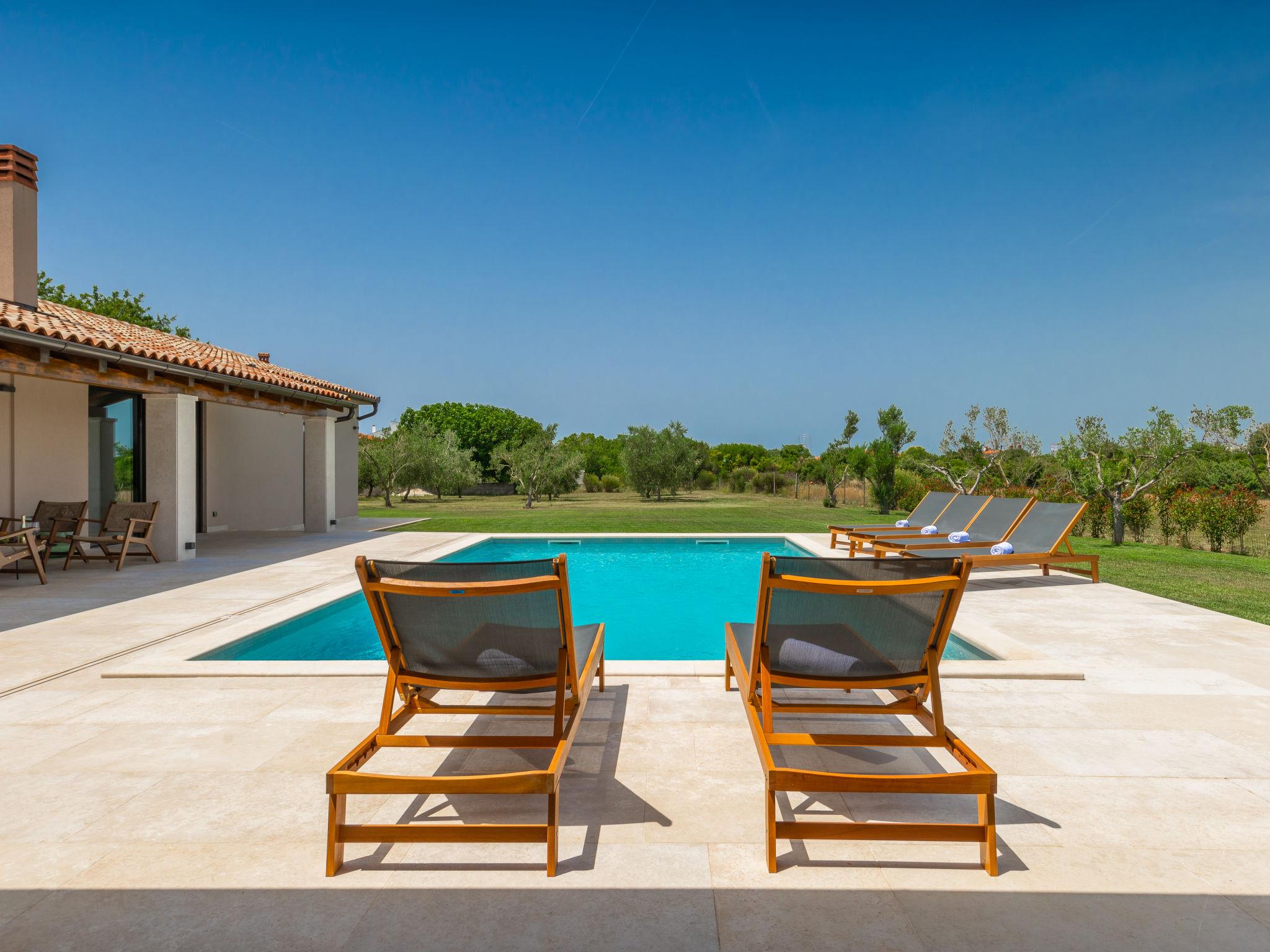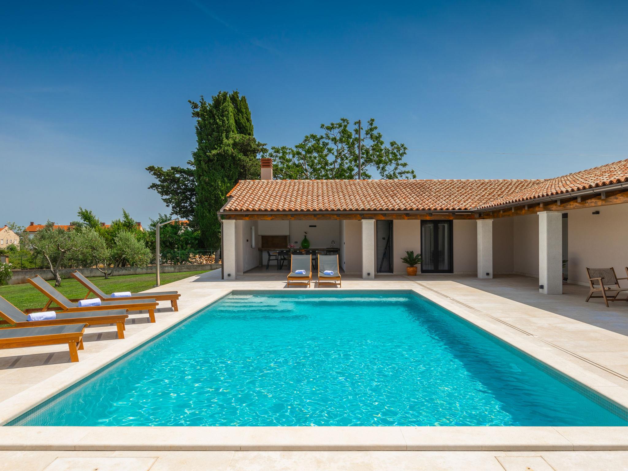 Modern, luxurious villa "Marialba". 3 km from the centre of Pula, 3.4 km from the sea, 3.4 km from the beach. Private: property 3'482 m2 (fenced), beautiful garden to relax, swimming pool angular (9 x 5 m, 45 m2, depth 135 cm, seasonal availability: 01.May. - 01.Oct.) with internal staircase. Shower/WC in the pool area, hot tub, terrace (20 m2), garden furniture, barbecue, barbecue house. In the house: internet access, air conditioning, washing machine. Parking (for 3 cars) at the house on the premises. Grocery 450 m, shopping centre 3 km, restaurant 1 km, bus stop 120 m, pebble beach 3.4 km, rocky beach 3.4 km. Groups of teenagers on request only. Please note: airfield 9.3 km from the property.