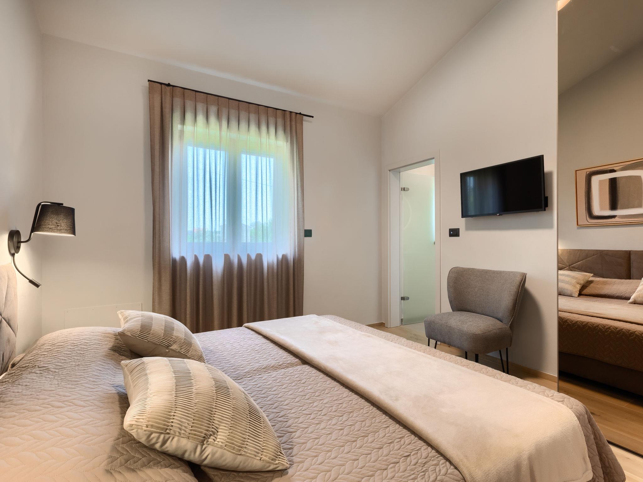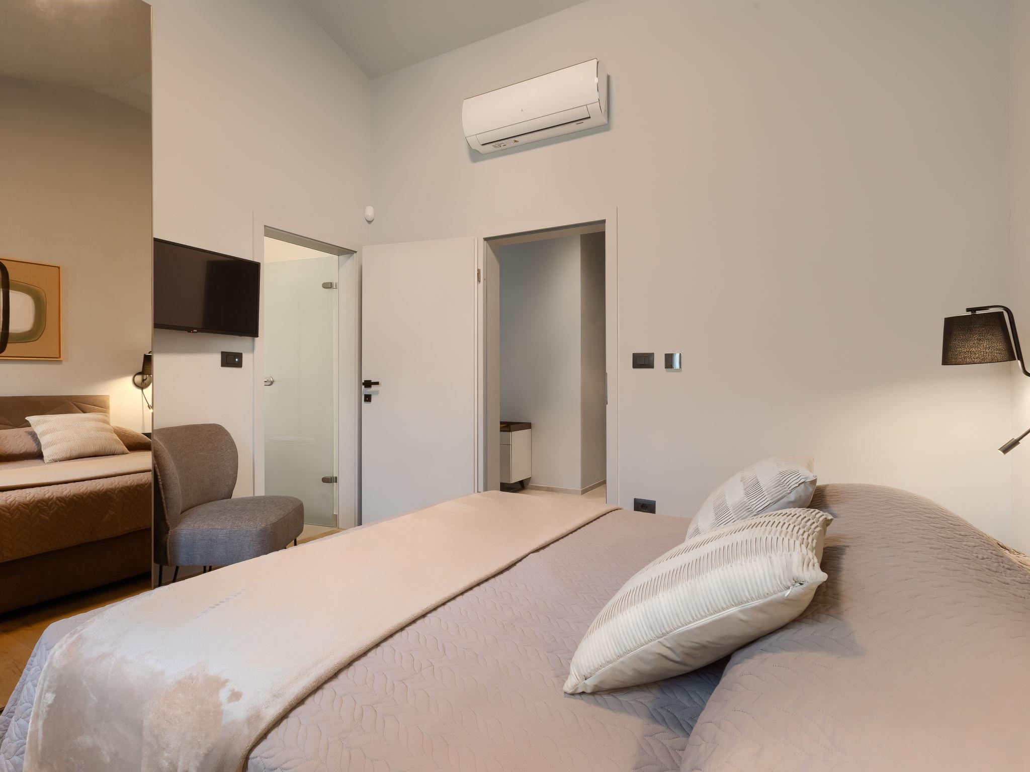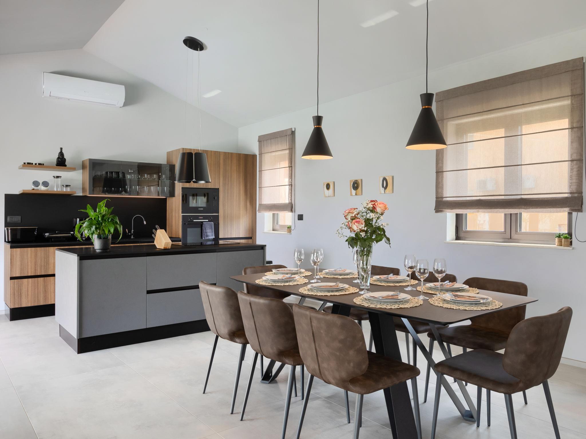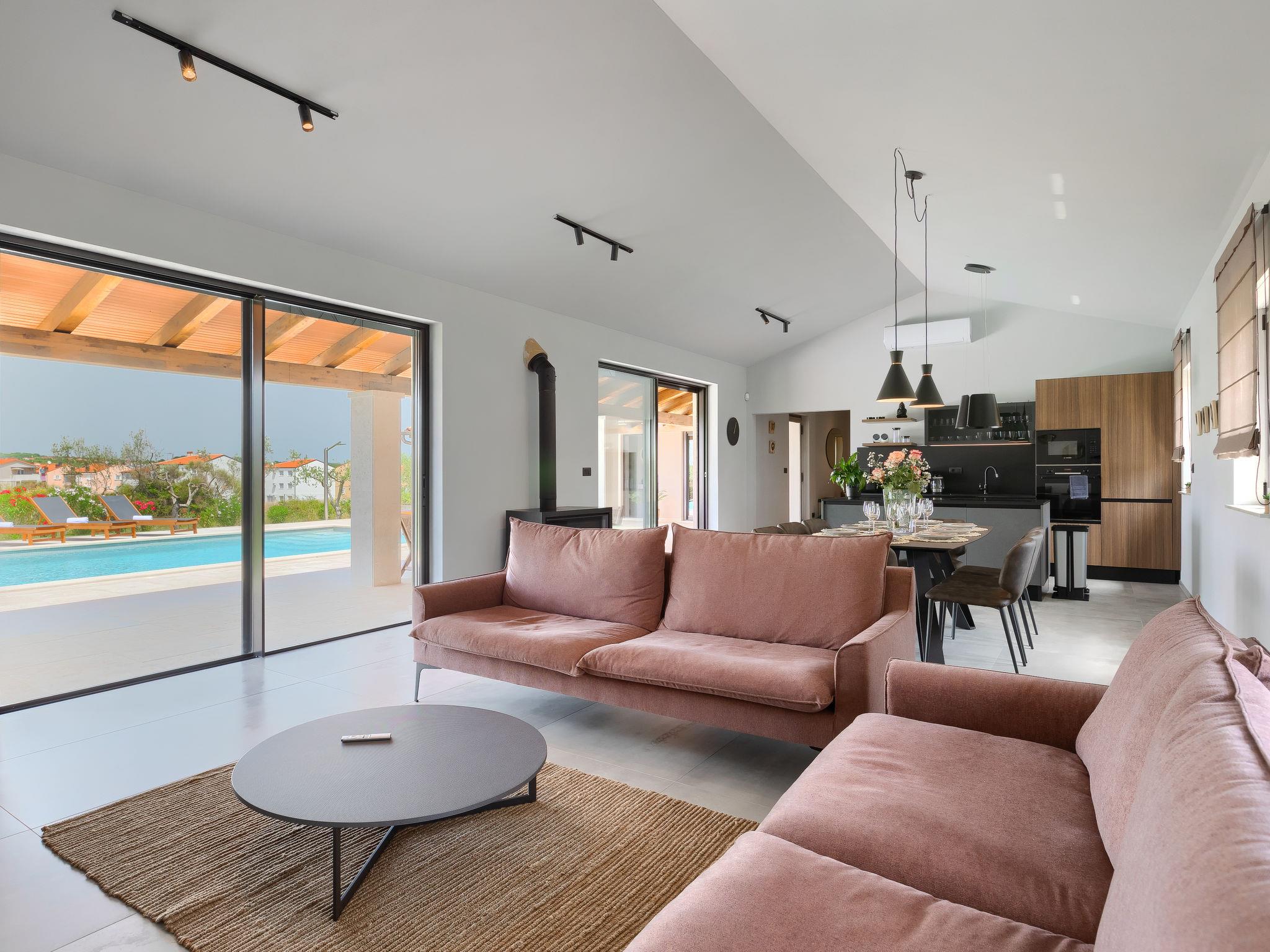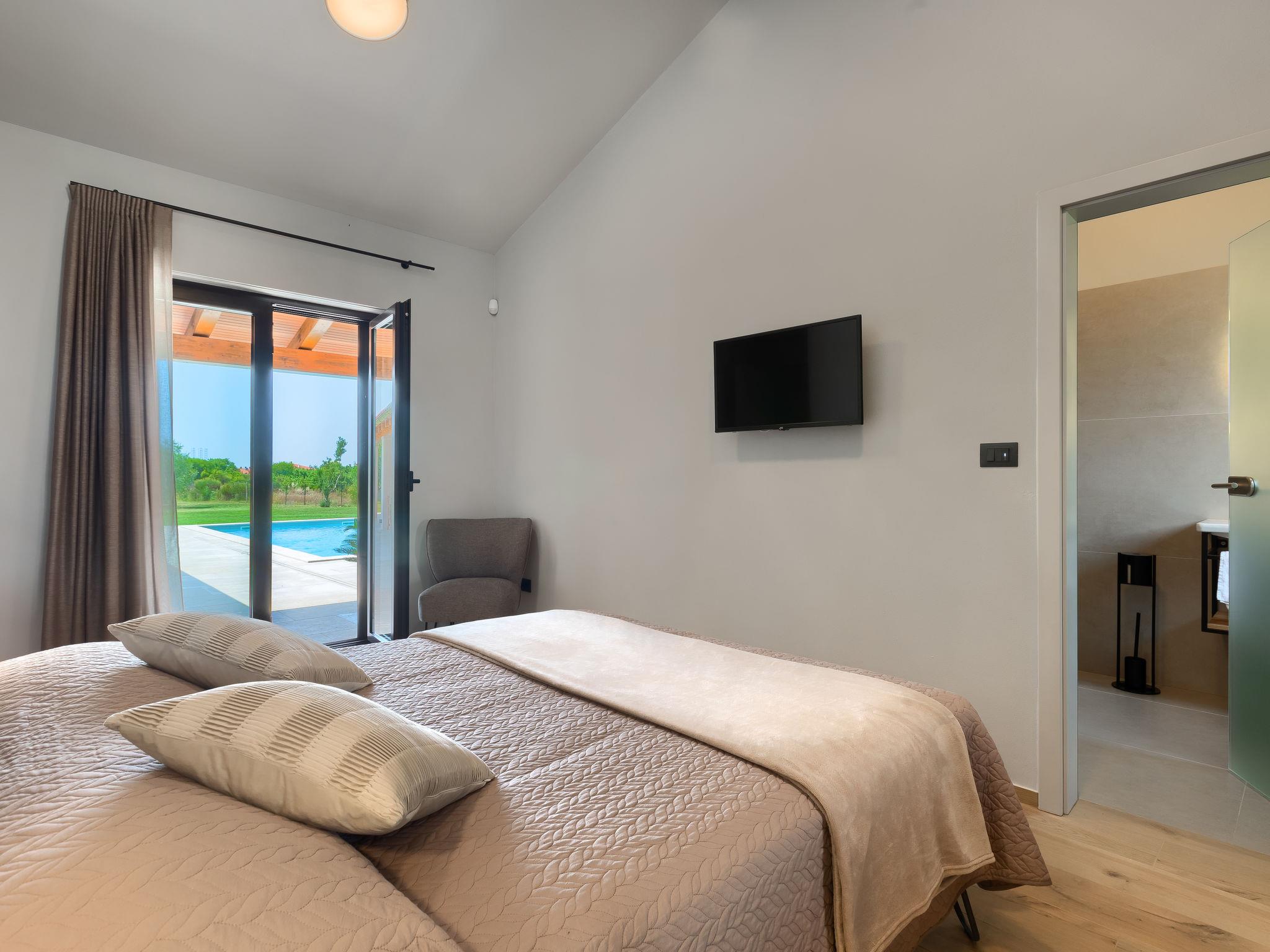 Modern, luxurious villa "Marialba". 3 km from the centre of Pula, 3.4 km from the sea, 3.4 km from the beach. Private: property 3'482 m2 (fenced), beautiful garden to relax, swimming pool angular (9 x 5 m, 45 m2, depth 135 cm, seasonal availability: 01.May. - 01.Oct.) with internal staircase. Shower/WC in the pool area, hot tub, terrace (20 m2), garden furniture, barbecue, barbecue house. In the house: internet access, air conditioning, washing machine. Parking (for 3 cars) at the house on the premises. Grocery 450 m, shopping centre 3 km, restaurant 1 km, bus stop 120 m, pebble beach 3.4 km, rocky beach 3.4 km. Groups of teenagers on request only. Please note: airfield 9.3 km from the property.