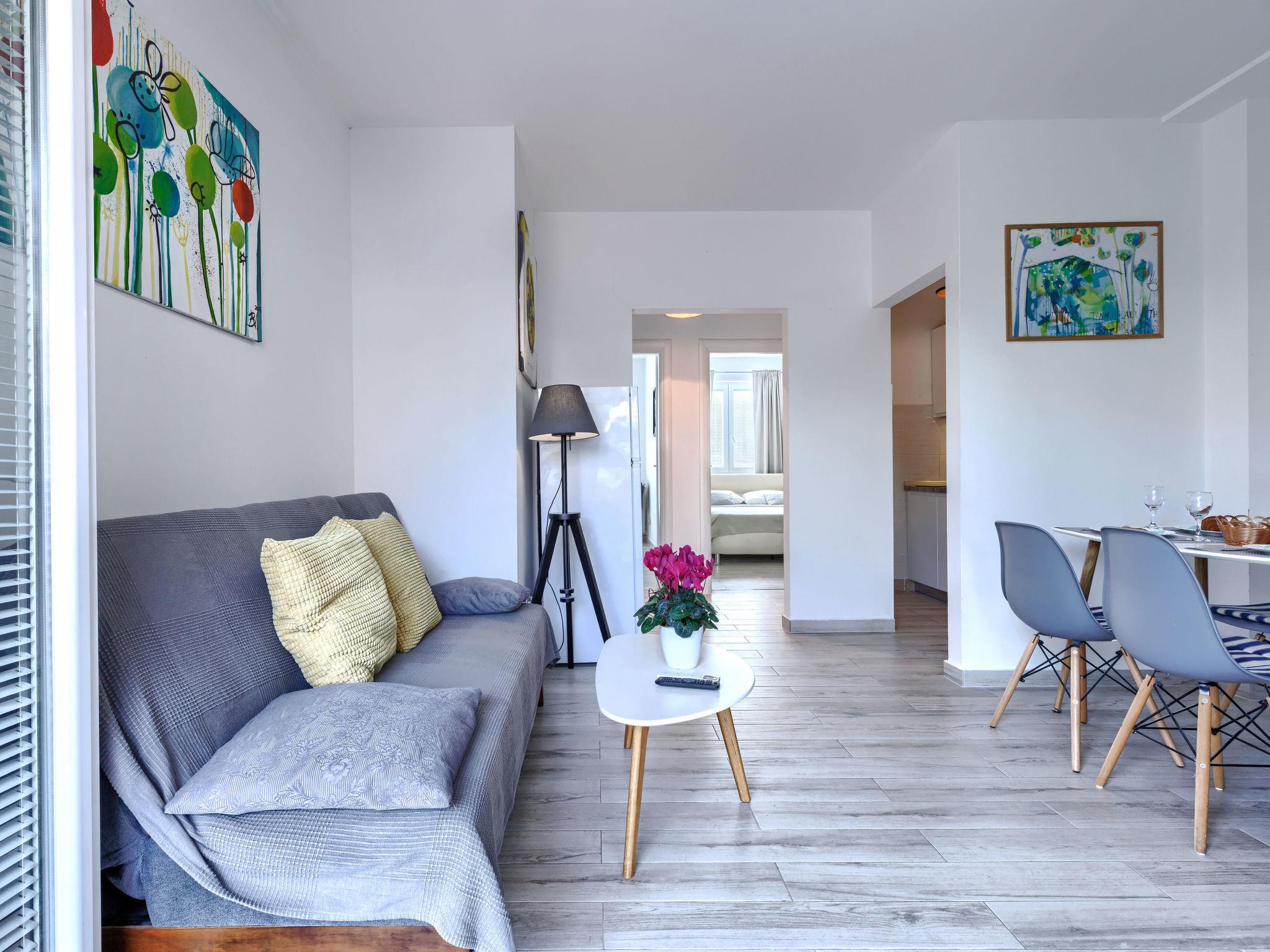 "Villa Canaria 2", 3-room apartment 55 m2 on 1st floor. Beautiful furnishings: living/dining room with satellite TV (flat screen), air conditioning. Exit to the balcony. 2 rooms, each room with 1 french bed (160 cm, length 200 cm). Open kitchen (2 ceramic glass hob hotplates, kettle, microwave, freezer, electric coffee machine). Shower/WC. Balcony 8 m2, terrace 20 m2. Balcony furniture, barbecue. Facilities: Internet (WiFi, free).
