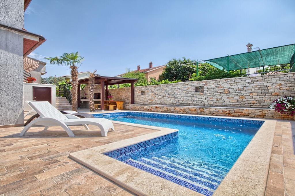 Villa Kascuni can accommodate a maximum of 16 people in 5 fully equipped apartments. Parking is located directly in front of the house. There is a shared swimming pool, garden, and barbecue area for all guests. The market is 50 meters away, and the bakery is 80 meters away. The nearest restaurant is 500 meters away. The bus stop is near the house, and the bus to Pula city center runs every 30 minutes.