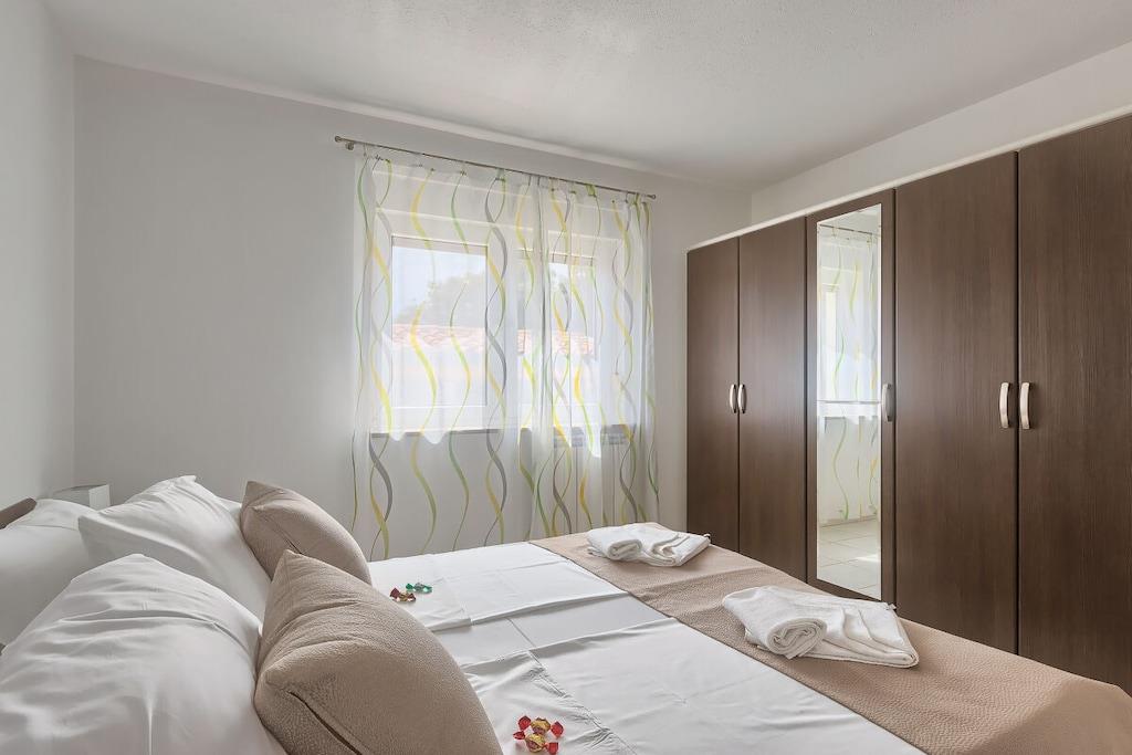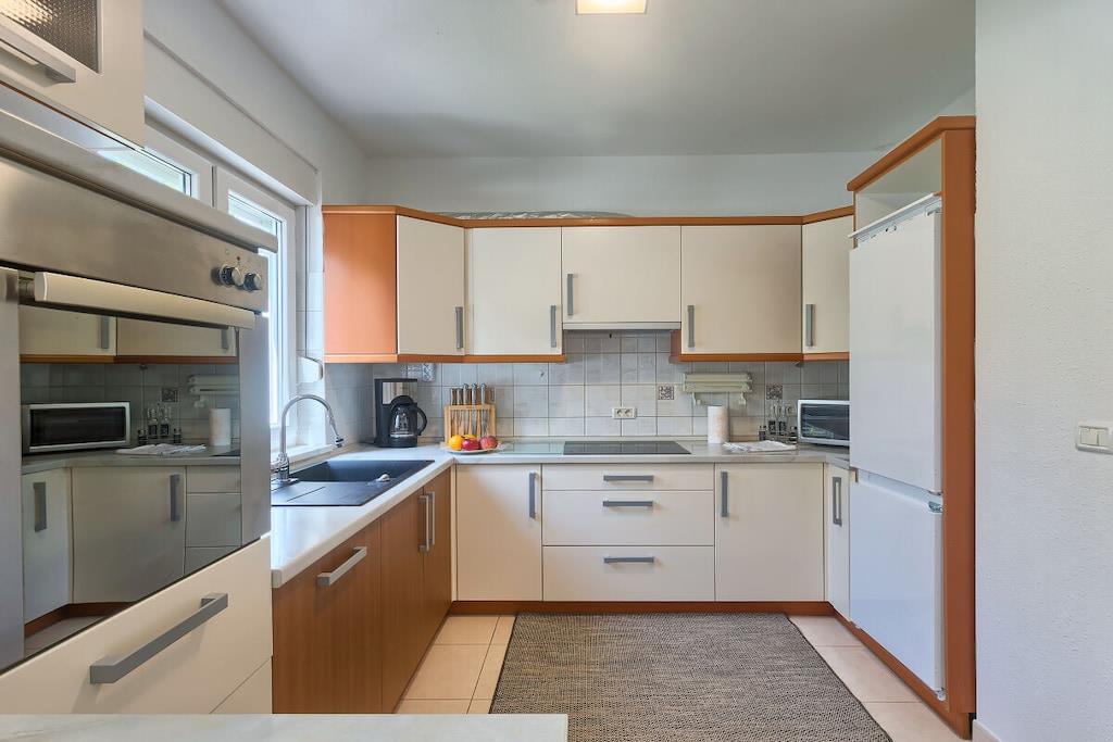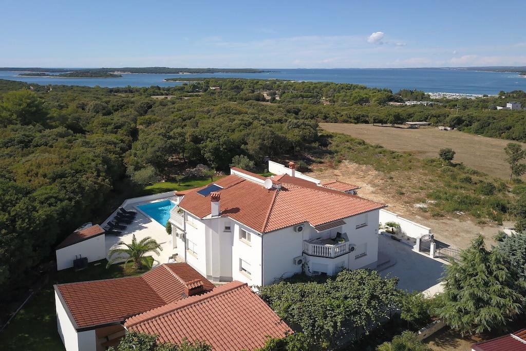 Villa Ajda is located in a quiet part of Stinjan, just 500m from the sea and 6km from Pula city center. The house is built on 2 floors. The garden features a heated 35m² pool and an outdoor kitchen. On the ground floor, there is a 120m² apartment with 2 bedrooms (each air-conditioned), a large bathroom, a toilet, and a living room with a kitchen leading to the terrace and pool. On the 1st floor, there are 2 studio apartments and 1 one-bedroom apartment. Each apartment has a balcony. 2 apartments have sea views. Private parking is available.