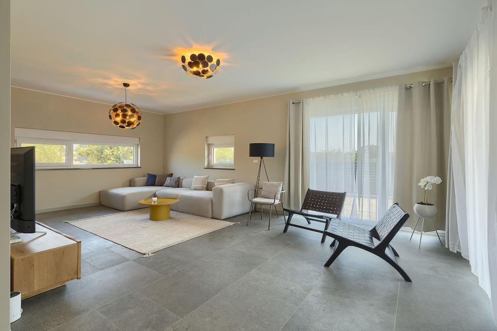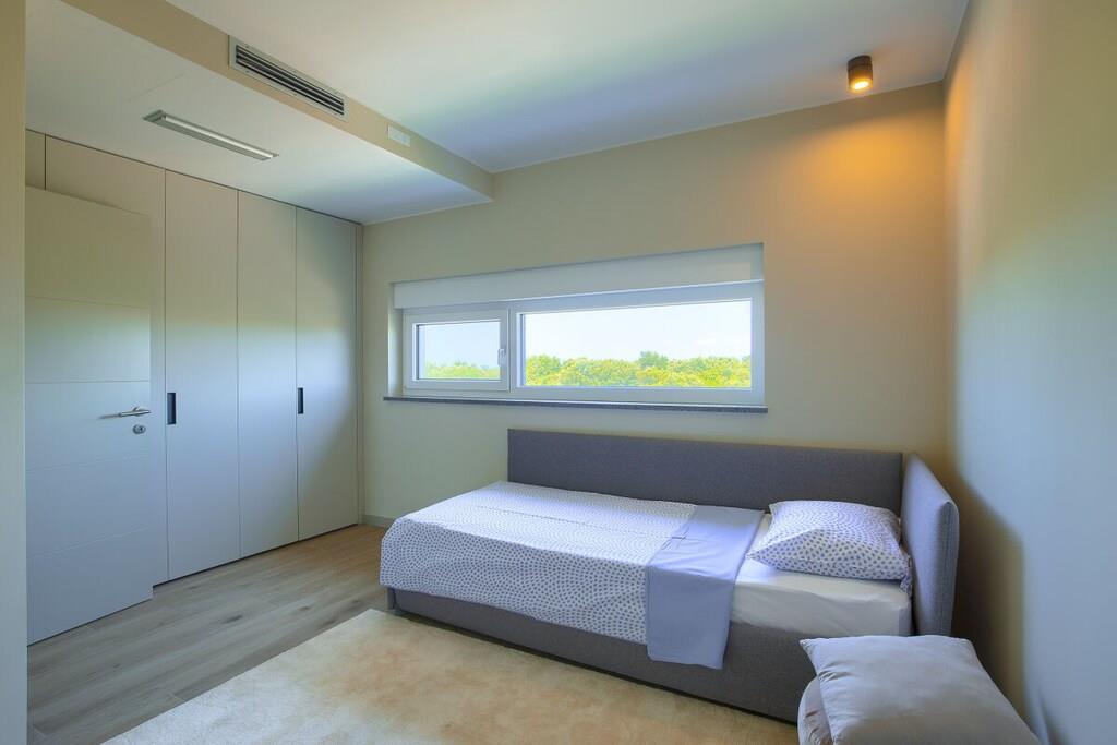 Welcome to the brand-new Villa Loreta in the beautiful town of Pula. This luxury villa boasts a generous living space of 190 square meters and comfortably accommodates up to 7 guests. With 3 bedrooms, 1 studio, and 4 bathrooms, it is the ideal place for a family vacation or a getaway with friends. The villa's interior design is modern and stylish, with contemporary furnishings and tasteful decor creating a welcoming and comfortable atmosphere.