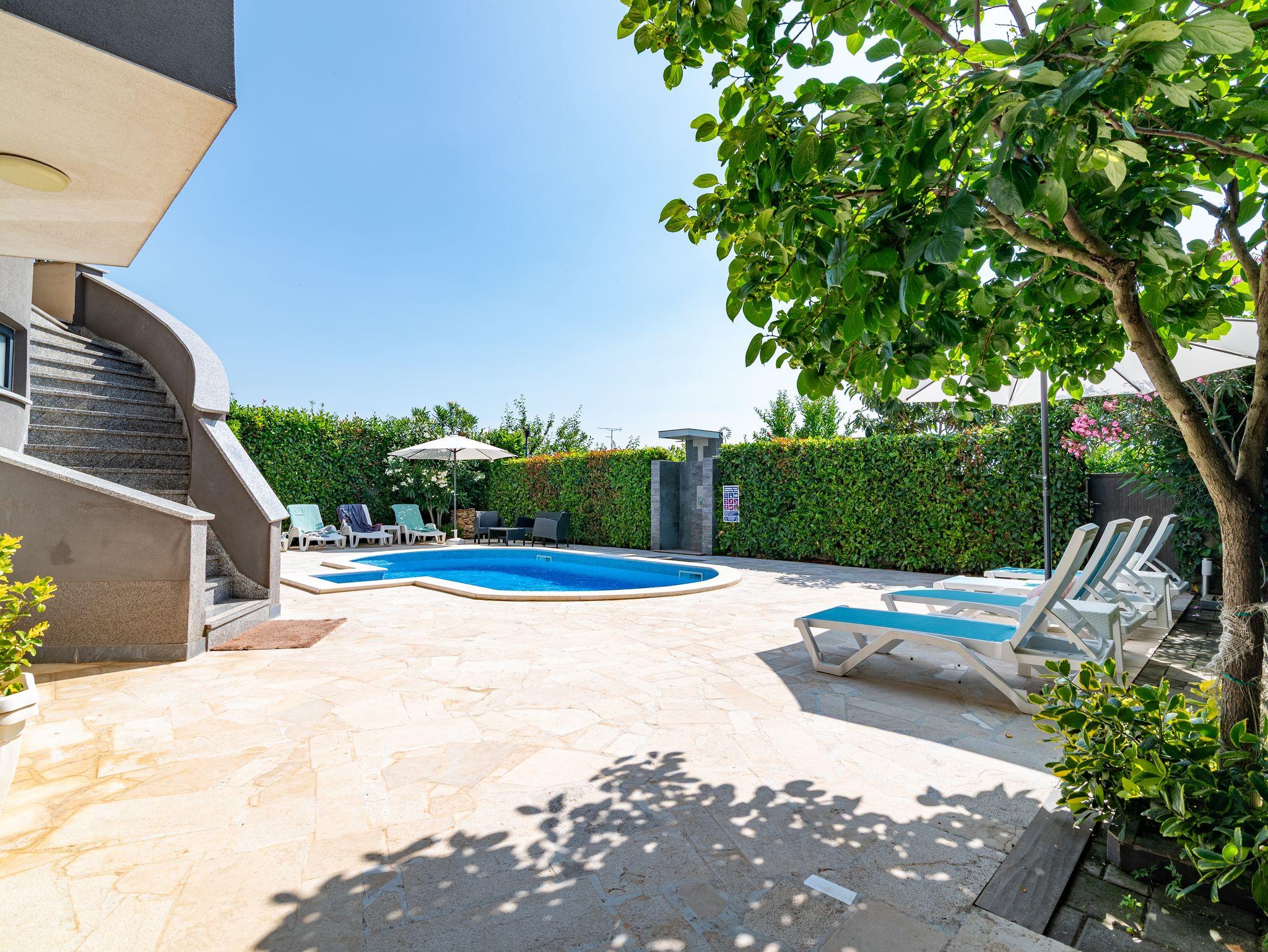 Umgebung des Objekts (Ordentlich), Hof (250m2, Kinderbereich, Sitzbereich), Parkplatz (Anzahl der Parkplätze: 4, Entfernung vom Objekt: im Hof), Pool: gemeinsam, Dimensionen: 6m x 4m x 1.35m, Wassertyp: Salzwasser, Grill: gemeinsam, WiFi Internet, Föhn, Bügeleisen