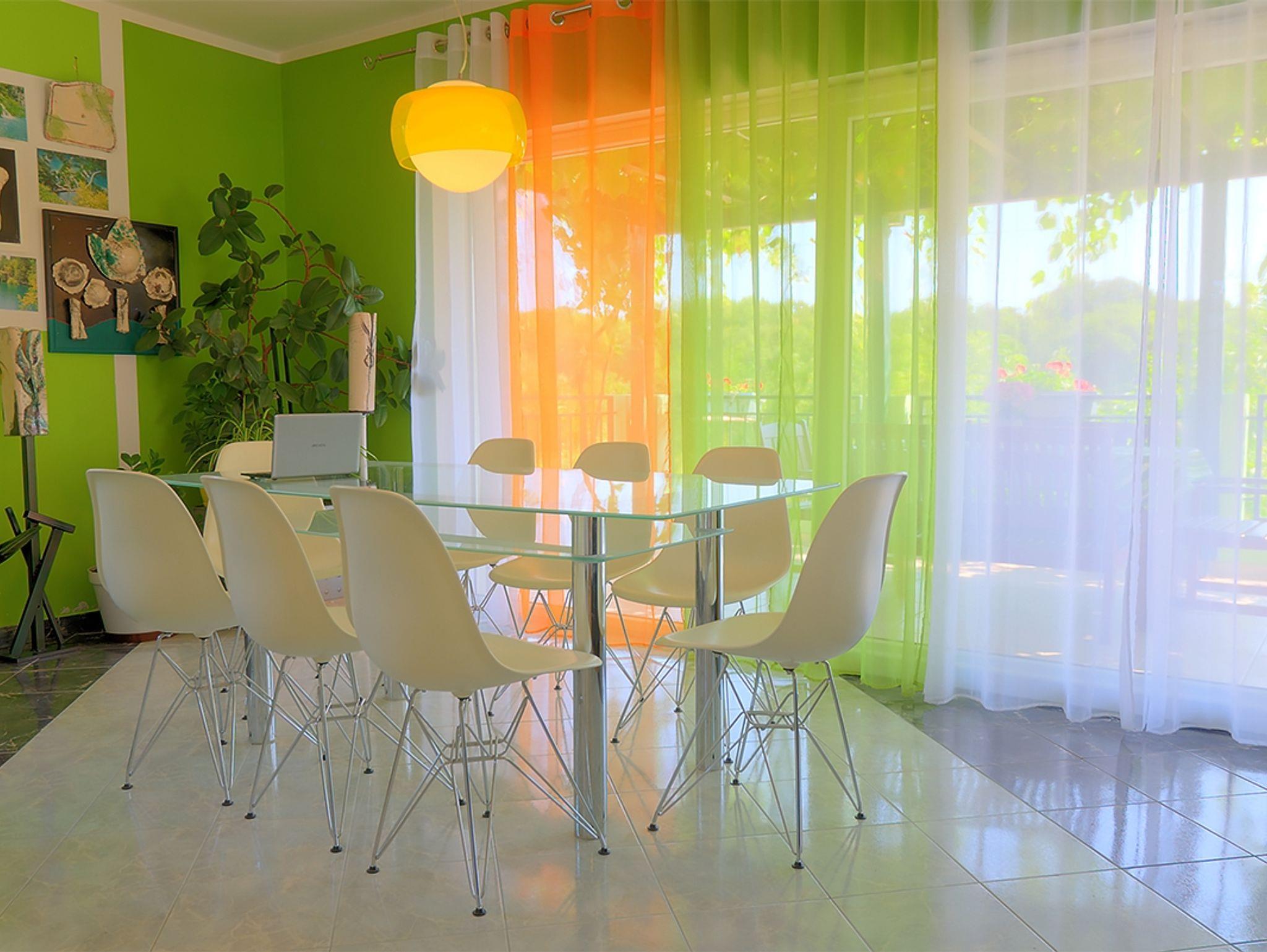 Ferienwohnung bietet Platz für 6 Gäste. Die Betten sind in Schlafzimmern, die es 2 gibt, innerhalb einer Gesamtfläche von 99m2, angeordnet. Die Gäste haben eine eigene Terrasse zur Verfügung, auf der sie in warmen Sommernächten genießen können. Für vollen Genuss und Entspannung gibt es einen privaten Grill für Gäste dieser Unterkunft. Während ihres Aufenthalts können sich Gäste im privaten Schwimmbad entspannen. In der gebuchten Unterkunftseinheit zahlt man am Ort ein Depositum ( der Preis ist an der Internetseite angeführt ). IM PREIS INBEGRIFFEN: Kurtaxe, Endreinigung, Klimatisierung, Zentralheizung, Pool, Parkplatz, Internet, Kinderbett, Bügeleisen, Bügelbrett, Föhn, Liegestühle. VERBINDLICHE ZUSÄTZLICHE KOSTEN: Kaution (300,00 € Einmalzahlung), Aufzahlung für Kurzaufenthalte (prozentualer Zuschlag pro Nächtigungsanzahl: 30% - 1, 20% - 2, 10% - 3). UNVERBINDLICHE ZUSÄTZLICHE KOSTEN: Wäschewaschen (15,00 € Waschen). Die Verfügbarkeit zusätzlicher Dienstleistungen in Ihrem reservierten Termin und die Preise derselben (falls nicht aufgeführt) müssen im Voraus überprüft werden. Zusätzliche Dienstleistungen die in der Zahlungsaufforderung nicht aufgeführt sind werden direkt beim Vermieter bezahlt, angenommen der Gast nutzt auch diese. Ermäßigung auf den Grundpreis: Gratistag 28=25 (bei einem Aufenthalt von 28 oder mehr Tagen erhalten Sie 3 kostenlose Tage für den Aufenthalt bis 31.12.26).