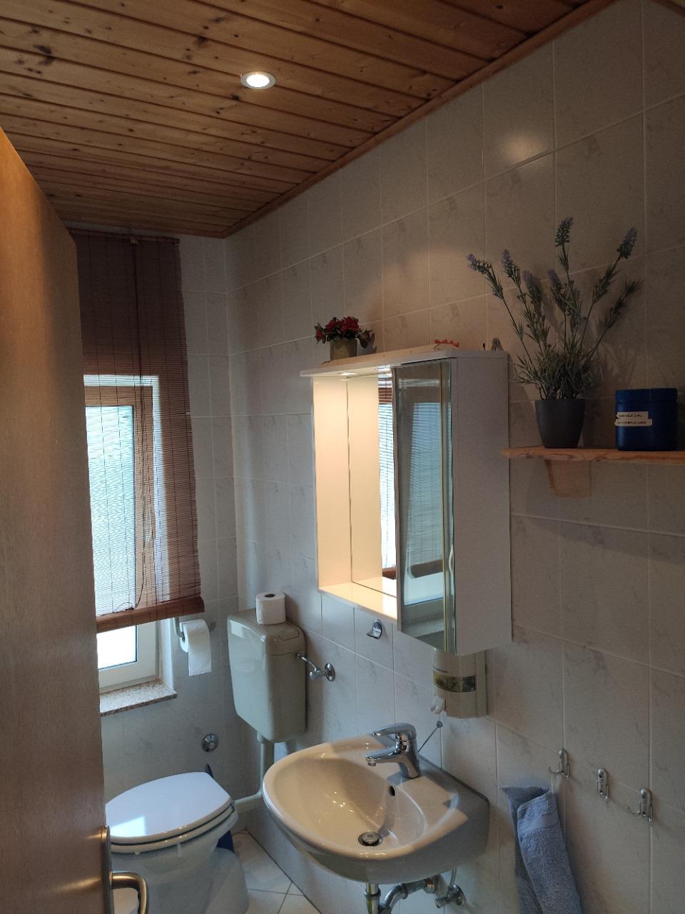 Im Bad befindet sich die Waschmaschine, die während ihres Aufenthaltes zu ihrer Verfügung steht. Bügelbrett sowie ein Bügeleisen stellen wir Ihnen auf Nachfrage gerne zur Verfügung.