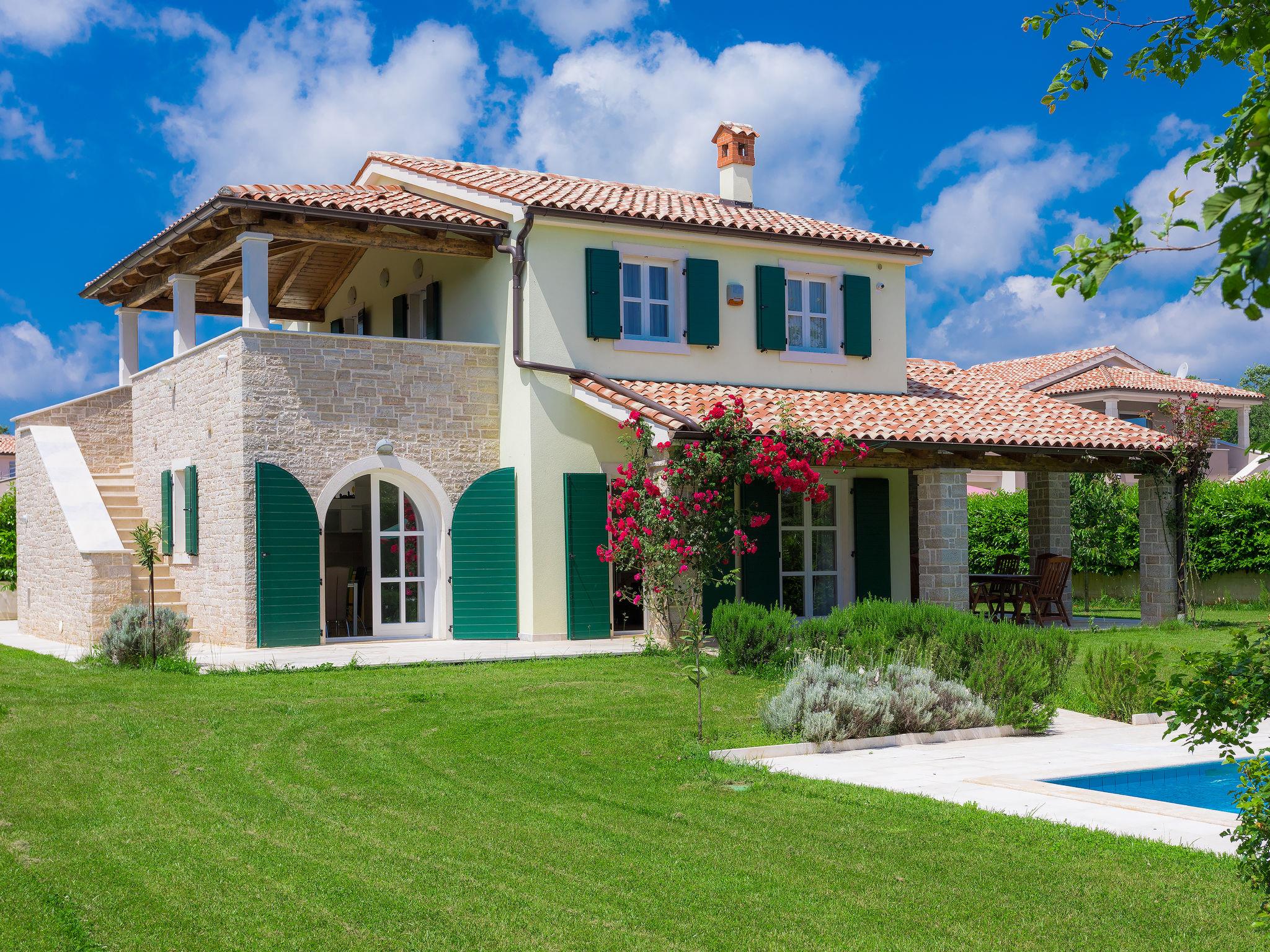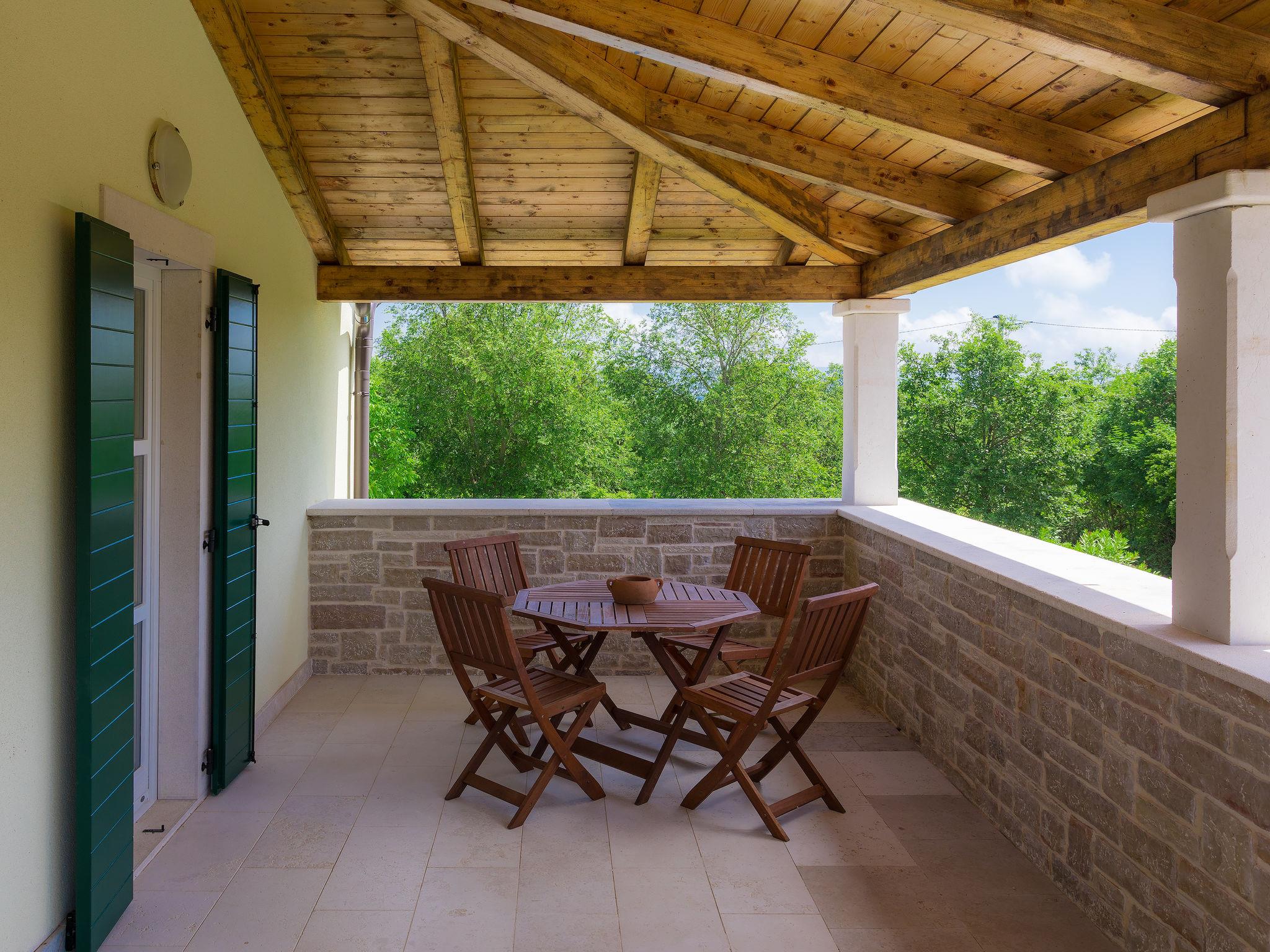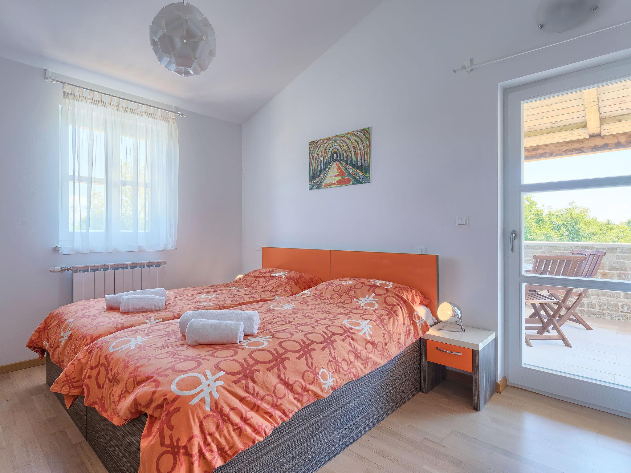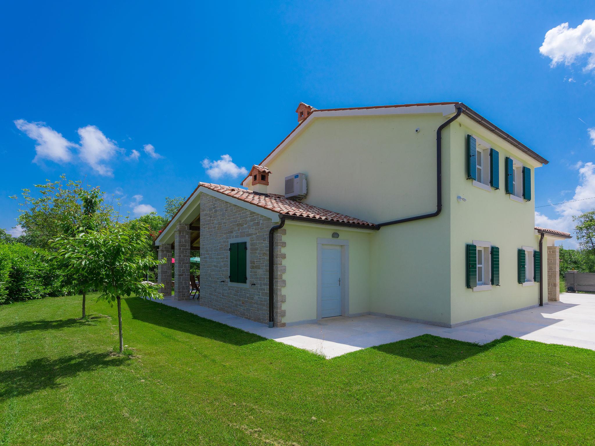 Krnica 22 km from Pula: Villa "Bella", 2 storeys. In the hamlet Hreljici 8 km from the centre of Marcana, 18 km from the centre of Pula, 6 km from the sea, 6 km from the beach. Private: property 1'400 m2 (fenced), beautiful, well-kept garden with lawn and wildlife garden, swimming pool angular (8 x 4 m, 32 m2, depth 140 cm, seasonal availability: 01.May. - 26.Oct.). Outdoor shower, barbecue, children's playground (slide, swing). In the house: internet access, air conditioning, washing machine. Parking (for 4 cars) at the house on the premises. Shop 3 km, restaurant 500 m, bus stop 650 m, pebble beach 6 km, rocky beach 6 km. Riding stable 2 km, walking paths from the house 1 km, cycle lane 1 km. Please note: suitable for families. Groups of teenagers on request only.