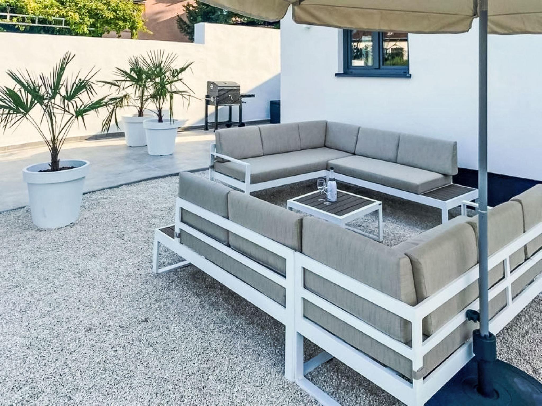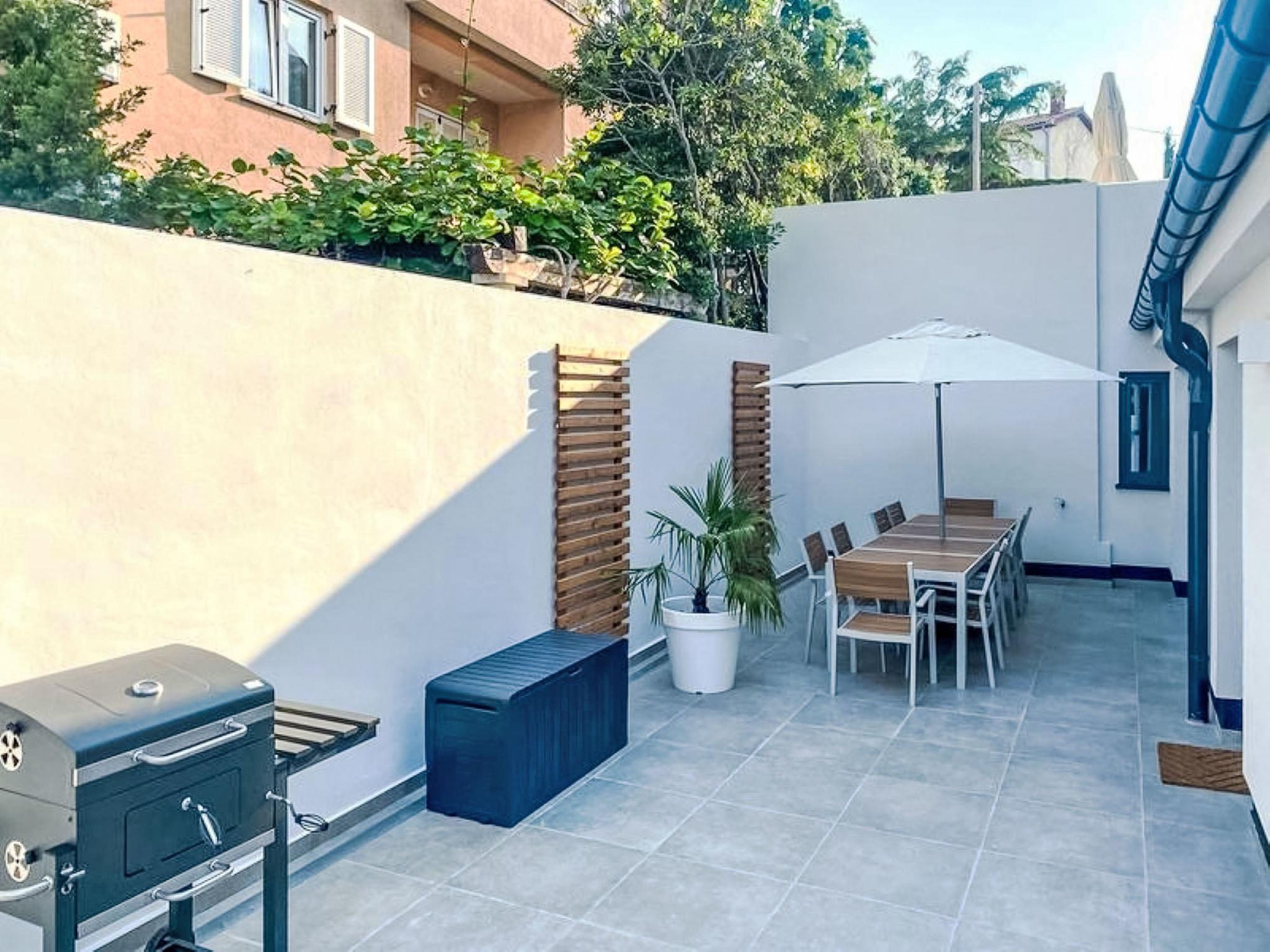 Premantura 11 km from Pula: Modern semi-detached house. 400 m from the centre of Premantura, in a quiet, sunny position, 250 m from the sea. Private: property 150 m2 (fenced), small garden. Outdoor shower, terrace (20 m2), garden furniture. In the house: internet access, hot tub, washing machine. Parking at the house on the premises. Shop 400 m, restaurant, bicycle rental 200 m, bus stop 180 m, pebble beach, rocky beach 250 m. Surf school 250 m, riding stable 3 km, walking paths from the house, cycle lane 800 m.