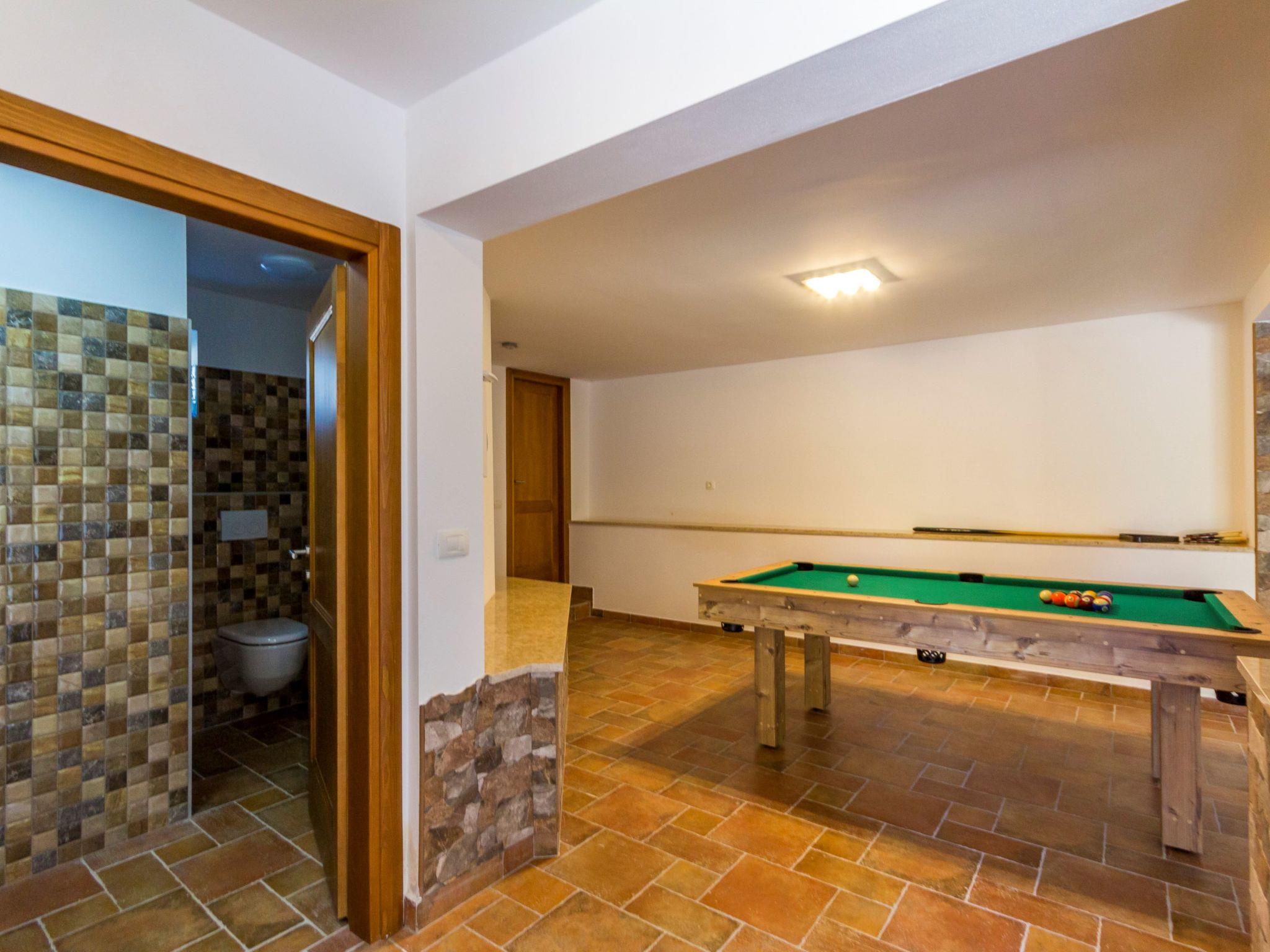 Premantura 11 km from Pula: Comfortable villa "L", 3 storeys. 600 m from the centre of Premantura, in a quiet, sunny position, 450 m from the sea, 450 m from the beach. Private: property 990 m2 (fenced), garden with flowers and trees, swimming pool angular (9 x 4 m, depth 140 cm, seasonal availability: 01.Apr. - 01.Nov.) with internal staircase. Shower/WC in the pool area, outdoor shower, table tennis, terrace (30 m2), barbecue, pool maintenance by the owner/gardener. In the house: internet access, billiard table, table football, washing machine. Parking at the house on the premises. Shop 600 m, restaurant 200 m, bus stop 500 m, pebble beach 550 m, rocky beach 450 m. Surf school 1 km, walking paths from the house 800 m, cycle lane 850 m. Nearby attractions: Nature park Kamenjak 800 m.
