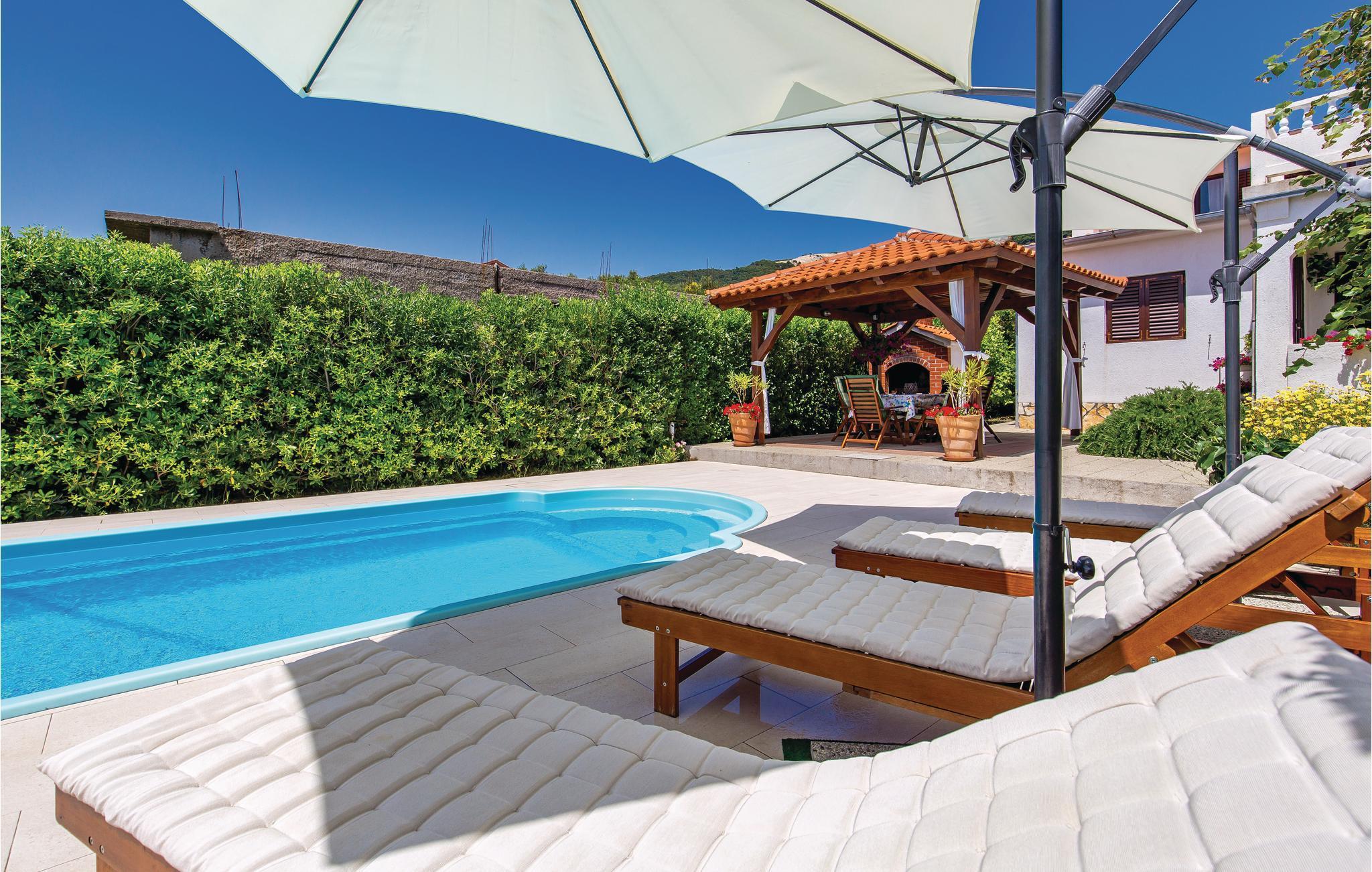 Doppelhaushälfte im Ort Banjol. Sie ist ideal für zwei Familien oder eine Gruppe von Freuden. Im Erdgeschoss sind die Essküche und das Wohnzimmer, während im Obergeschoss die Schlafzimmer liegen. Etagen mit Innentreppen. Von der oberen Terrasse bietet sich ein Blick auf das Meer, den Kanal von Barbat und die Landschaft. Auf dem gepflegten Grundstück gibt es einen Außenpool, der die perfekte Erfrischung bringt. Beim Pavillon steht ein Grill, an dem Sie viele Stunden im Freien verbringen können. Im Sommer bietet die Insel viele Veranstaltungen und lädt mit zahlreichen Badestränden, die auch die anspruchsvollsten Gäste zufriedenstellen.