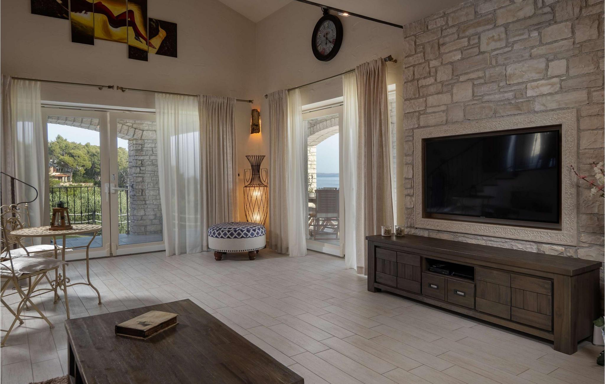 Diese Luxusvilla befindet sich auf der Insel Rab. Der Strand und das Zentrum sind nur 1 km entfernt. Die Villa verfügt über 395 m2 Wohnfläche auf 1600 m2 Garten, 4 Schlafzimmer, 4 Badezimmer, 2 separate Toiletten, Grill, Billardtisch, Darts, Tischtennis, Tischfußball, Sauna, Fitness und Garage für 2 Autos. Das Anwesen ist mit Wi-Fi-Internet ausgestattet. Das Wohnzimmer hat insgesamt ca. 35 m² und bietet Ihnen eine angenehme Atmosphäre. Es gibt ein Sofa, einen LED-SMART-TV, einen freistehenden Holzofen, eine Klimaanlage und hochwertige Möbel. Die Küche ist mit Kühlschrank, Geschirrspüler, Elektroherd, Backofen, Mikrowelle und Kaffeemaschine (Kaffeefilter) ausgestattet. Im Garten der Villa befindet sich ein 24 m² großer Pool, der mit Glasmosaikfliesen bedeckt und mit einer modernen Wasseraufbereitungsanlage ohne Chlor ausgestattet ist. Es ist ein idealer Ort für einen erholsamen Urlaub mit Freunden und Familie. Der Innenraum ist elegant eingerichtet und mit modernen Möbelaccessoires kombiniert, wodurch ein sehr attraktiver und eleganter Stil entsteht. Sie können auch einen privaten Swimmingpool mit herrlichem Meerblick genießen. Restaurants und Geschäfte finden Sie im Umkreis von 1 km. Gönnen Sie sich einen unvergesslichen Urlaub, an den Sie sich noch lange erinnern werden. Umgeben von einem wunderschönen, weitläufigen Garten bietet Ihnen diese Villa garantierte Privatsphäre und ist nach den höchsten Hygienestandards für Sie eingerichtet. Zum Angebot gehört auch die tägliche kostenlose Lieferung von Lebensmitteln.