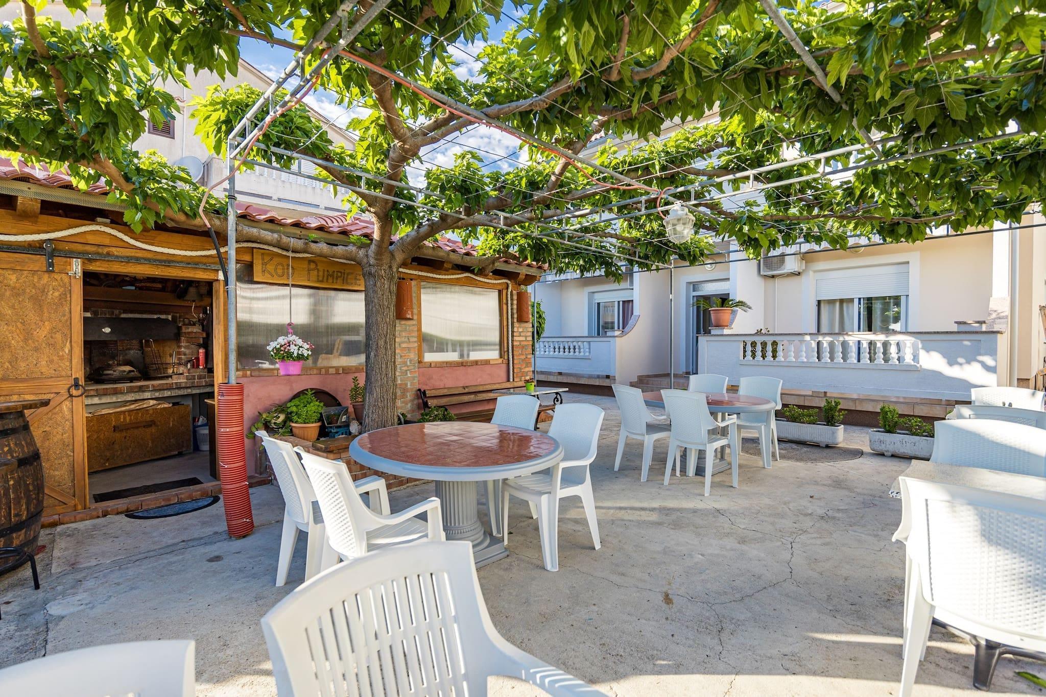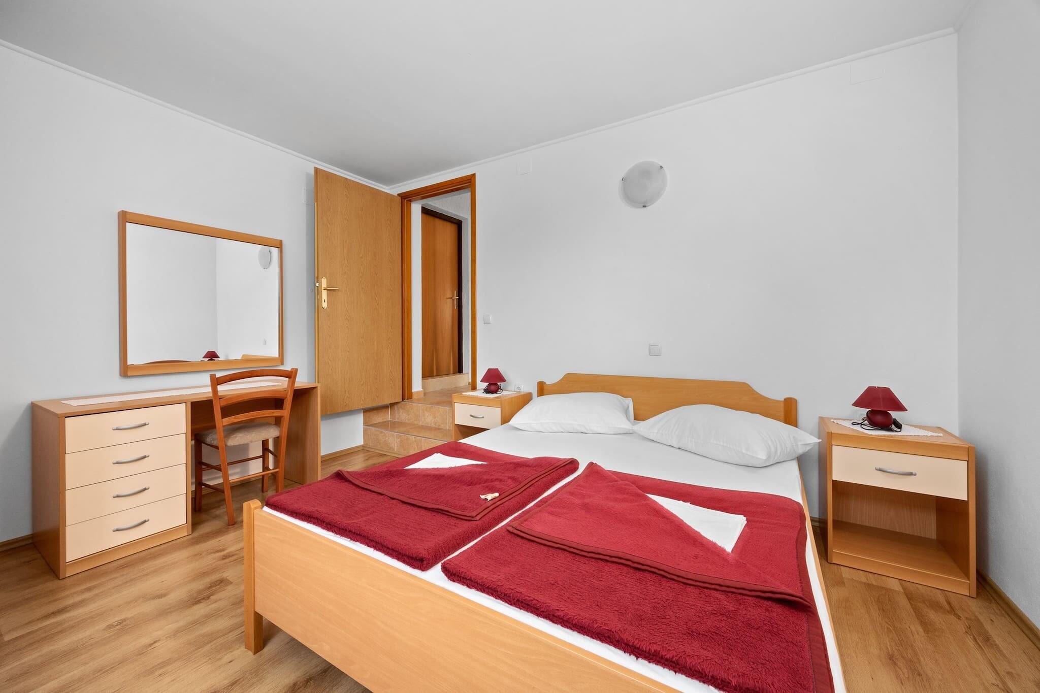 Enjoy a peaceful stay in this well-appointed two-bedroom apartment in Barbat, Rab, perfect for families or small groups of up to five guests. It features two queen-size beds and a single sofa bed, along with air conditioning, Wi-Fi, and satellite TV. A spacious private balcony offers stunning sea views, ideal for morning coffee or sunset relaxation. The apartment includes a fully equipped kitchen with a stove, fridge, microwave, and coffee machine, plus a bathroom with a shower, hair dryer, and toiletries. A washing machine is available on request for longer stays. Free private parking is provided, and laundry service can be arranged. Just 500 meters from a sandy beach, the apartment is close to local attractions like the ruins of St. Damian’s fortress and the charming Old Town Rab. Guests can also rent a small boat (license required) to explore nearby islands. With its tranquil setting and convenient amenities, this non-smoking, pet-free apartment is a perfect coastal retreat.