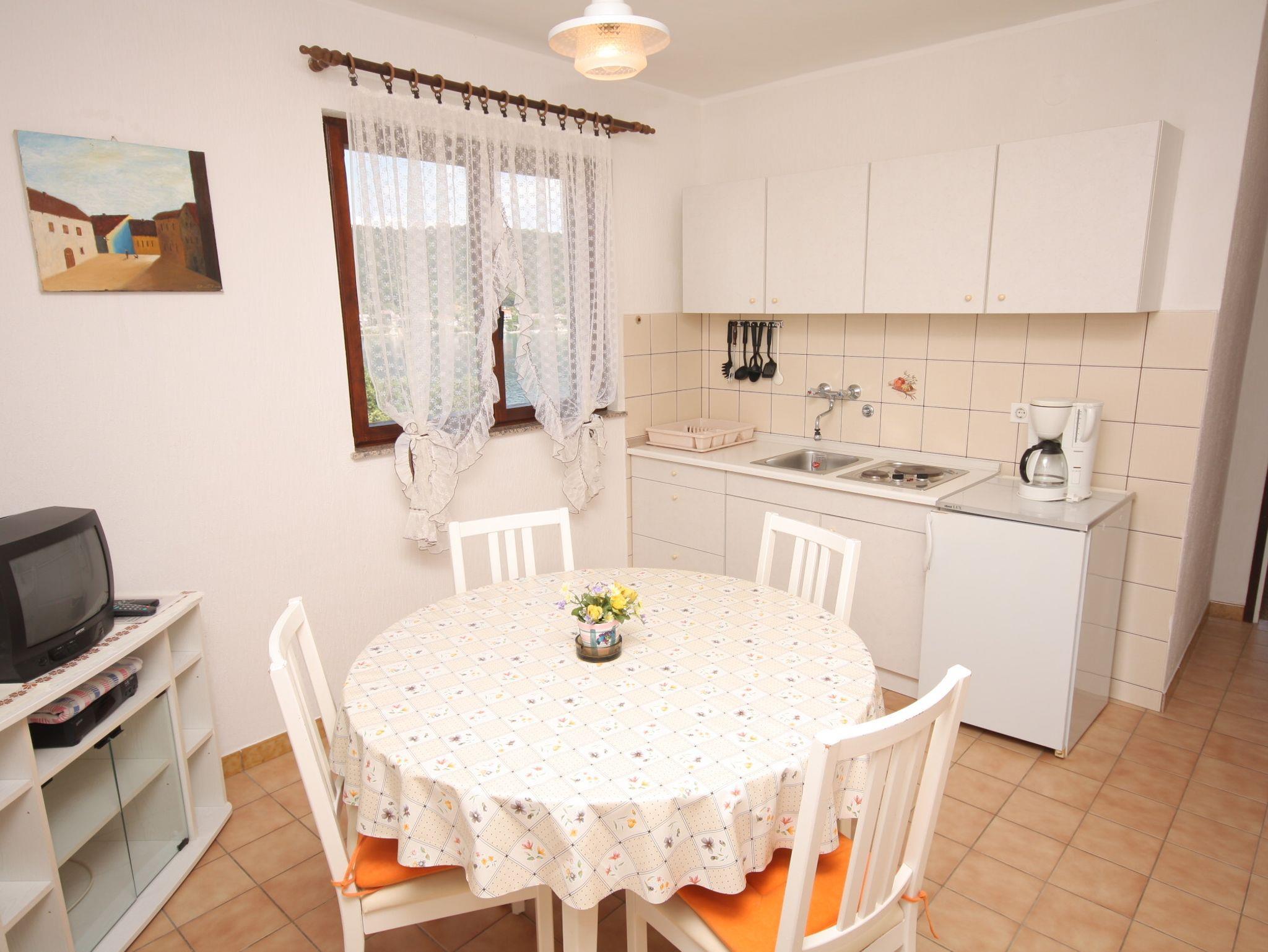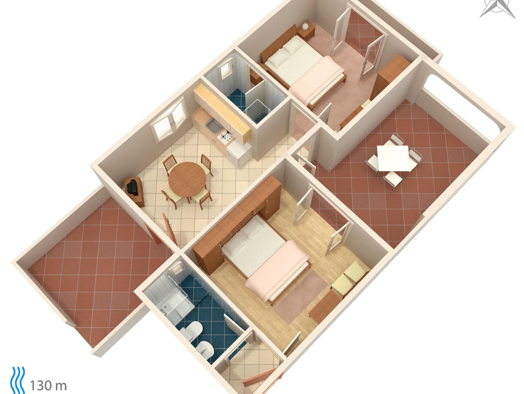 Ferienwohnung bietet Platz für 4 Gäste. Die Betten sind in Schlafzimmern, die es 2 gibt, innerhalb einer Gesamtfläche von 48m2, angeordnet. Die Gäste haben eine eigene Terrasse zur Verfügung, auf der sie in warmen Sommernächten genießen können. Das Apartment bietet Meerblick. Es ist erlaubt, Speisen auf dem Gemeinschafts-Grill vorzubereiten. In der Unterkunftseinheit besteht die Möglichkeit des Mitbringens von Haustieren gegen Aufpreis. Unterkunftseinheit hat Räume, die von dem Rest der Einheit abgetrennt werden. IM PREIS INBEGRIFFEN: Kurtaxe, Endreinigung, Klimatisierung, Parkplatz, Internet, Bootsanlegeplatz, Liegestühle. VERBINDLICHE ZUSÄTZLICHE KOSTEN: Aufzahlung für Kurzaufenthalte (prozentualer Zuschlag pro Nächtigungsanzahl: 30% - 1, 20% - 2, 10% - 3). UNVERBINDLICHE ZUSÄTZLICHE KOSTEN: Frühstück (10,00 €, 50% Nachlass für Kinder zwischen 4 und 12 Jahren, Kinder bis 4 Jahre sind frei.), Haustiere (7,00 € pro Nacht). Die Verfügbarkeit zusätzlicher Dienstleistungen in Ihrem reservierten Termin und die Preise derselben (falls nicht aufgeführt) müssen im Voraus überprüft werden. Zusätzliche Dienstleistungen die in der Zahlungsaufforderung nicht aufgeführt sind werden direkt beim Vermieter bezahlt, angenommen der Gast nutzt auch diese.