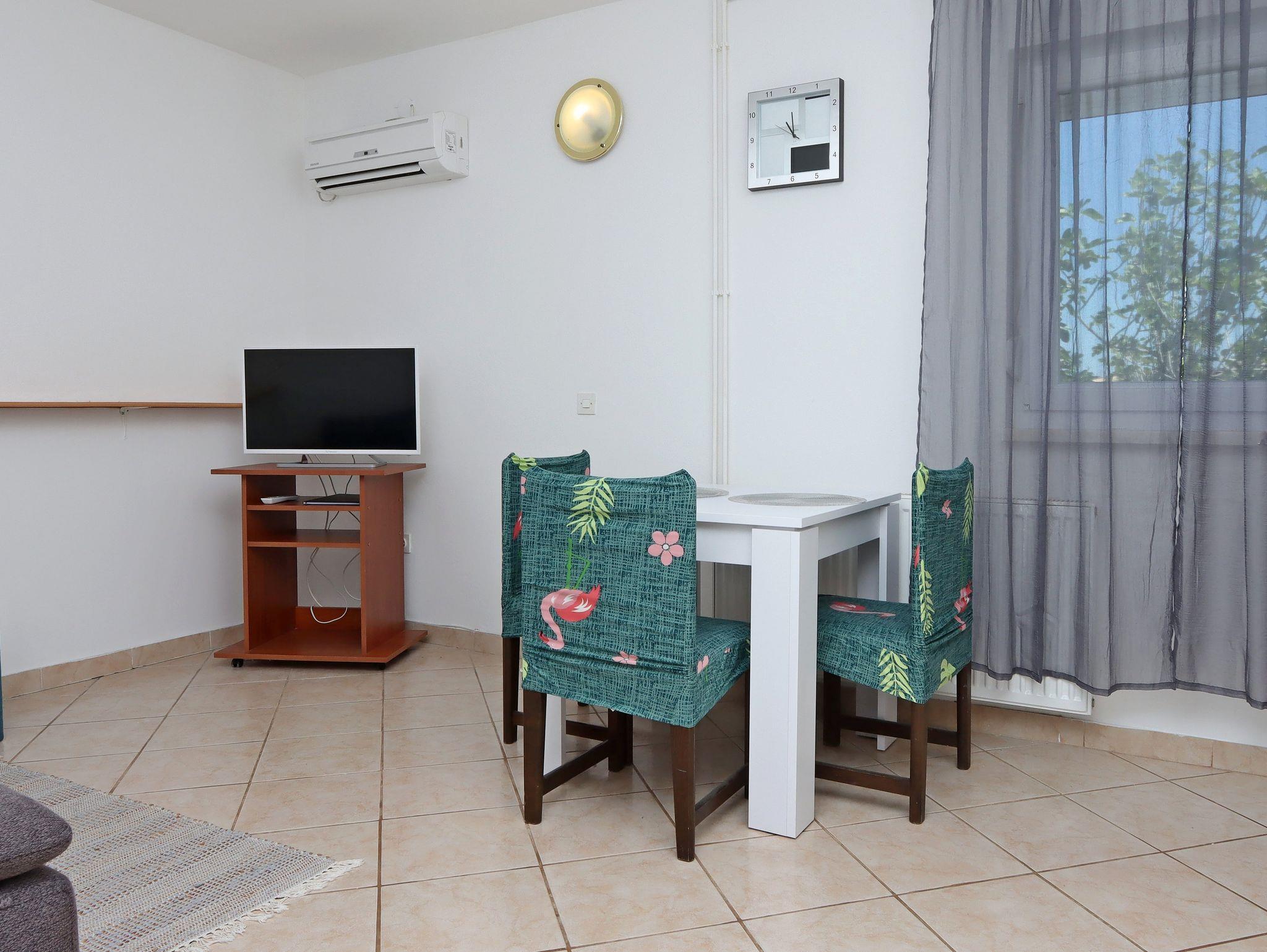 Ferienwohnung bietet Platz für 2 Gäste. Die Betten sind in Schlafzimmern, die es 1 gibt, innerhalb einer Gesamtfläche von 45m2, angeordnet. Die Gäste haben einen eigenen Balkon zur Verfügung, auf der sie in warmen Sommernächten genießen können. Das Apartment bietet Meerblick. Es ist erlaubt, Speisen auf dem Gemeinschafts-Grill vorzubereiten. IM PREIS INBEGRIFFEN: Kurtaxe, Endreinigung, Klimatisierung, Parkplatz, Internet, Bootsanlegeplatz, tragbarer Grill. VERBINDLICHE ZUSÄTZLICHE KOSTEN: Aufzahlung für Kurzaufenthalte (prozentualer Zuschlag pro Nächtigungsanzahl: 30% - 1, 20% - 2, 10% - 3). UNVERBINDLICHE ZUSÄTZLICHE KOSTEN: Wäschewaschen (5,00 € Waschen). Die Verfügbarkeit zusätzlicher Dienstleistungen in Ihrem reservierten Termin und die Preise derselben (falls nicht aufgeführt) müssen im Voraus überprüft werden. Zusätzliche Dienstleistungen die in der Zahlungsaufforderung nicht aufgeführt sind werden direkt beim Vermieter bezahlt, angenommen der Gast nutzt auch diese.