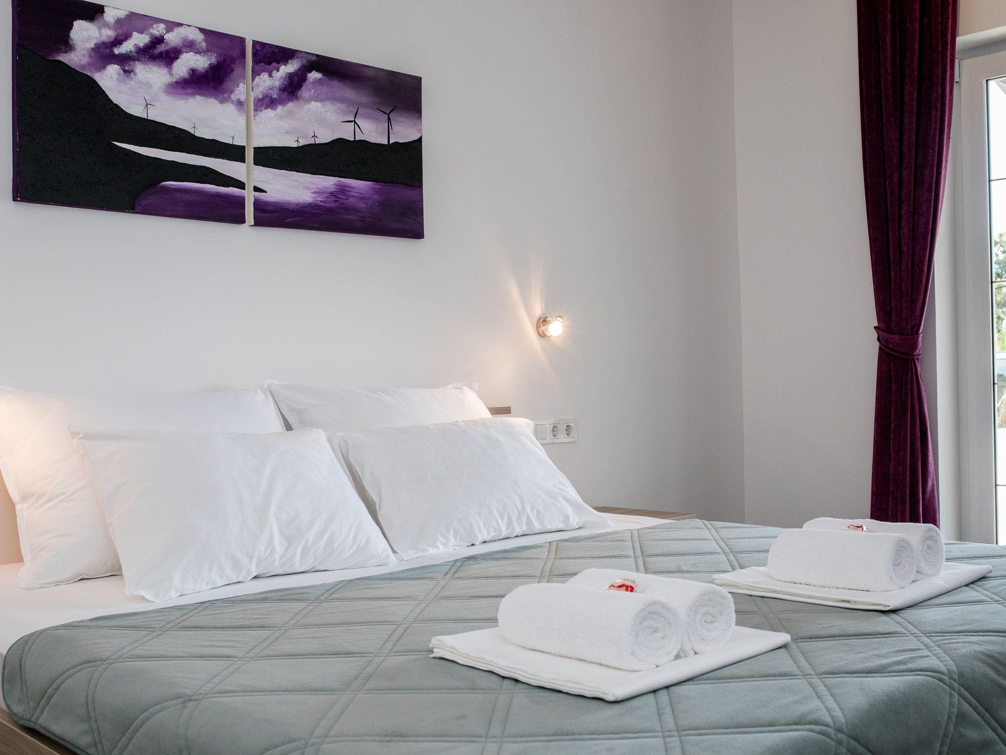 Ferienwohnung bietet Platz für 5 Gäste. Die Betten sind in Schlafzimmern, die es 2 gibt, innerhalb einer Gesamtfläche von 39m2, angeordnet. Die Gäste haben eine eigene Terrasse zur Verfügung, auf der sie in warmen Sommernächten genießen können. Das Apartment bietet Meerblick. Es ist erlaubt, Speisen auf dem Gemeinschafts-Grill vorzubereiten. IM PREIS INBEGRIFFEN: Kurtaxe, Endreinigung, Klimatisierung, Parkplatz, Internet. VERBINDLICHE ZUSÄTZLICHE KOSTEN: Aufzahlung für Kurzaufenthalte (prozentualer Zuschlag pro Nächtigungsanzahl: 30% - 1, 20% - 2, 10% - 3). UNVERBINDLICHE ZUSÄTZLICHE KOSTEN: Bootsanlegeplatz (25,00 € pro Nacht). Die Verfügbarkeit zusätzlicher Dienstleistungen in Ihrem reservierten Termin und die Preise derselben (falls nicht aufgeführt) müssen im Voraus überprüft werden. Zusätzliche Dienstleistungen die in der Zahlungsaufforderung nicht aufgeführt sind werden direkt beim Vermieter bezahlt, angenommen der Gast nutzt auch diese.