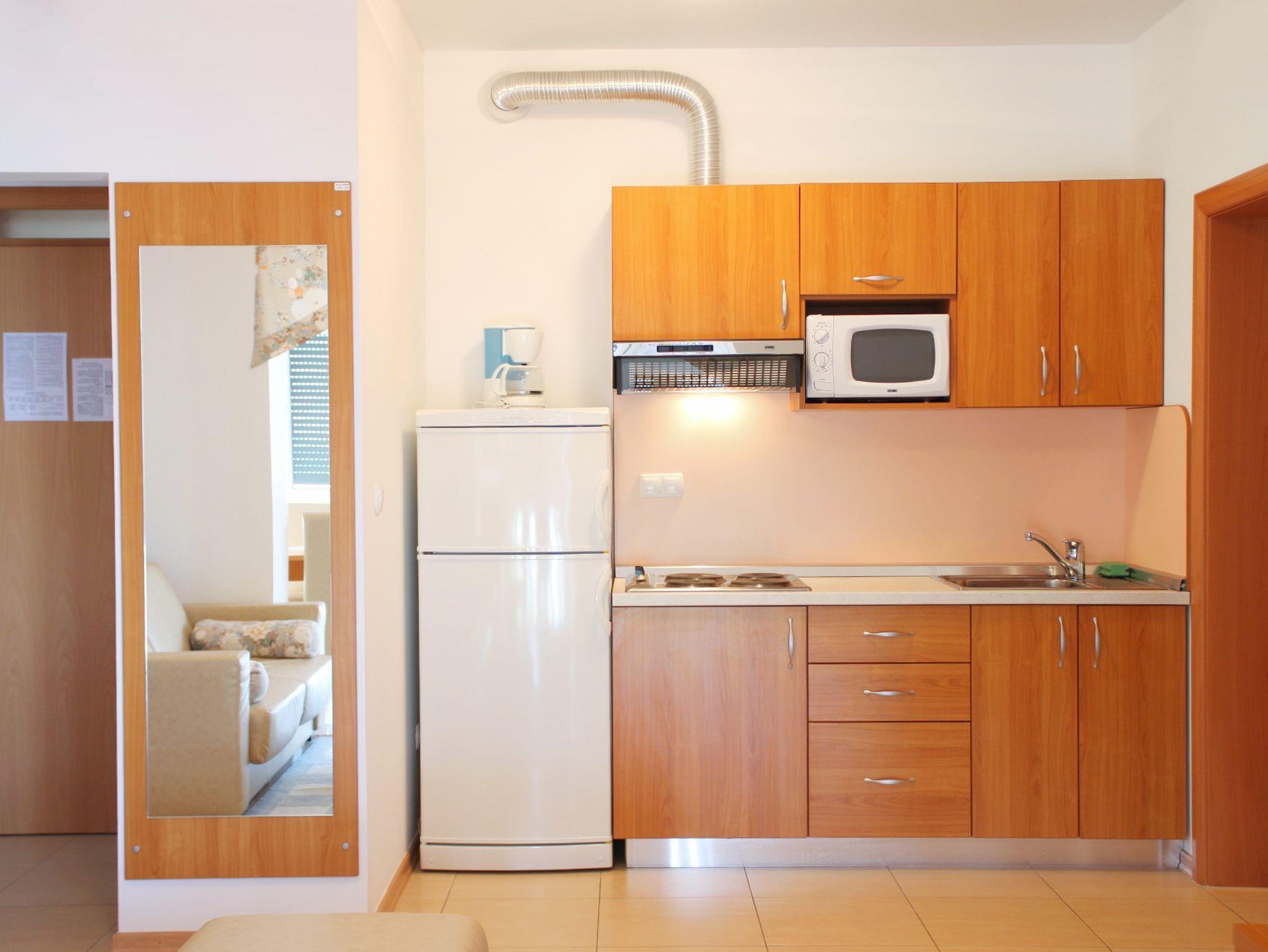 Ferienwohnung bietet Platz für 6 Gäste. Die Betten sind in Schlafzimmern, die es 2 gibt, und in Wohnzimmer, innerhalb einer Gesamtfläche von 42m2, angeordnet. Die Gäste haben eine eigene Terrasse zur Verfügung, auf der sie in warmen Sommernächten genießen können. Das Apartment bietet Meerblick. Es ist erlaubt, Speisen auf dem Gemeinschafts-Grill vorzubereiten. Während ihres Aufenthalts können Gäste das gemeinsam zur Nutzung stehende Schwimmbad benutzen. In der gebuchten Unterkunftseinheit zahlt man am Ort ein Depositum ( der Preis ist an der Internetseite angeführt ). IM PREIS INBEGRIFFEN: Endreinigung, Klimatisierung, Pool, Parkplatz, Internet, Föhn. VERBINDLICHE ZUSÄTZLICHE KOSTEN: Kurtaxe (Erwachsene 0,93 € - 1,90 € Nacht/Person, Kinderermäßigung 12 - 17 Jahre), Kaution (100,00 € Einmalzahlung). Die Verfügbarkeit zusätzlicher Dienstleistungen in Ihrem reservierten Termin und die Preise derselben (falls nicht aufgeführt) müssen im Voraus überprüft werden. Zusätzliche Dienstleistungen die in der Zahlungsaufforderung nicht aufgeführt sind werden direkt beim Vermieter bezahlt, angenommen der Gast nutzt auch diese.
