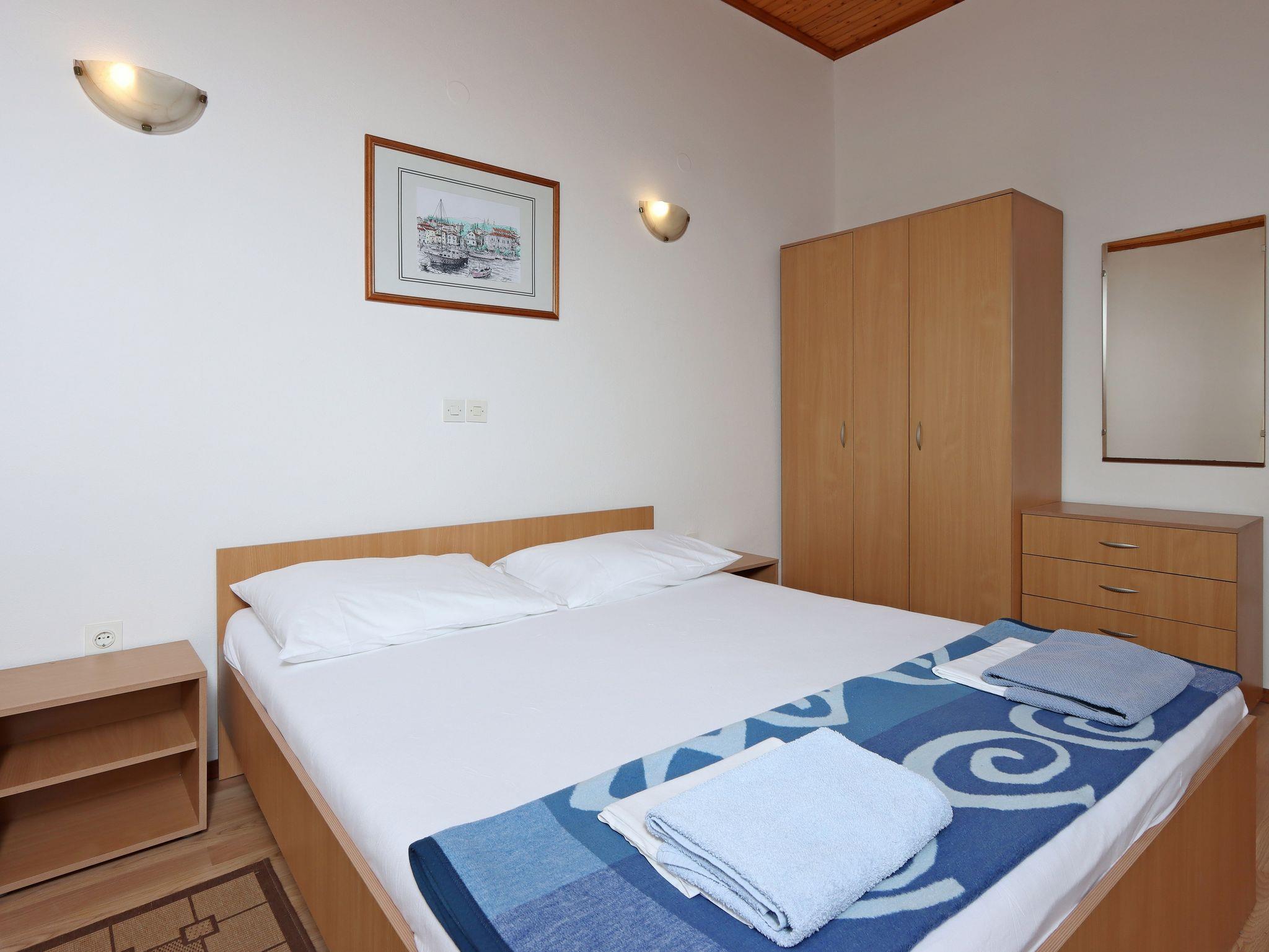 Ferienwohnung bietet Platz für 4 Gäste. Die Betten sind in Schlafzimmern, die es 2 gibt, innerhalb einer Gesamtfläche von 50m2, angeordnet. Die Gäste haben einen eigenen Balkon zur Verfügung, auf der sie in warmen Sommernächten genießen können. Das Apartment bietet Meerblick. Es ist erlaubt, Speisen auf dem Gemeinschafts-Grill vorzubereiten. IM PREIS INBEGRIFFEN: Kurtaxe, Endreinigung, Klimatisierung, Parkplatz, Internet, Bootsanlegeplatz, tragbarer Grill. VERBINDLICHE ZUSÄTZLICHE KOSTEN: Aufzahlung für Kurzaufenthalte (prozentualer Zuschlag pro Nächtigungsanzahl: 30% - 1, 20% - 2, 10% - 3). UNVERBINDLICHE ZUSÄTZLICHE KOSTEN: Wäschewaschen (5,00 € Waschen). Die Verfügbarkeit zusätzlicher Dienstleistungen in Ihrem reservierten Termin und die Preise derselben (falls nicht aufgeführt) müssen im Voraus überprüft werden. Zusätzliche Dienstleistungen die in der Zahlungsaufforderung nicht aufgeführt sind werden direkt beim Vermieter bezahlt, angenommen der Gast nutzt auch diese.