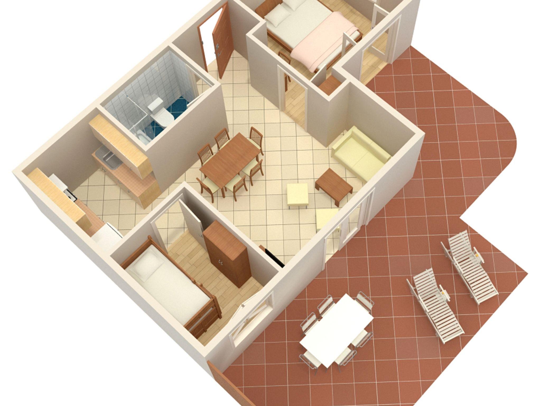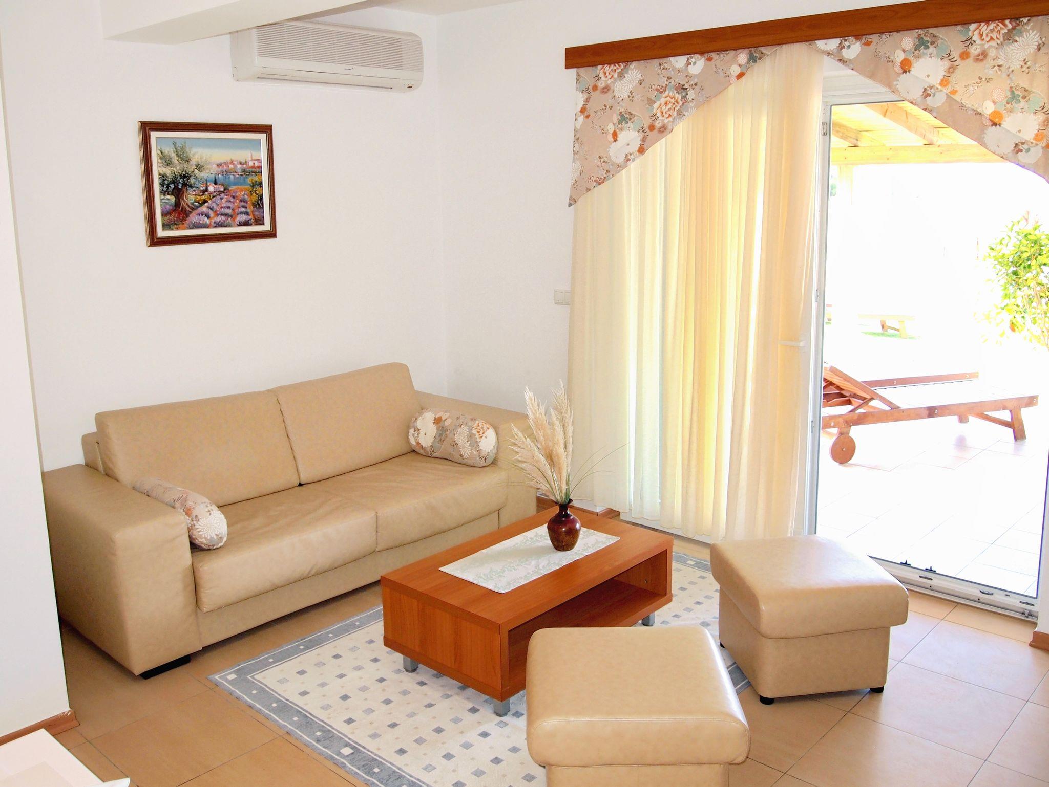 Ferienwohnung bietet Platz für 6 Gäste. Die Betten sind in Schlafzimmern, die es 2 gibt, und in Wohnzimmer, innerhalb einer Gesamtfläche von 46m2, angeordnet. Die Gäste haben eine eigene Terrasse zur Verfügung, auf der sie in warmen Sommernächten genießen können. Das Apartment bietet Meerblick. Es ist erlaubt, Speisen auf dem Gemeinschafts-Grill vorzubereiten. Während ihres Aufenthalts können Gäste das gemeinsam zur Nutzung stehende Schwimmbad benutzen. In der gebuchten Unterkunftseinheit zahlt man am Ort ein Depositum ( der Preis ist an der Internetseite angeführt ). IM PREIS INBEGRIFFEN: Endreinigung, Klimatisierung, Pool, Parkplatz, Internet, Föhn. VERBINDLICHE ZUSÄTZLICHE KOSTEN: Kurtaxe (Erwachsene 0,93 € - 1,90 € Nacht/Person, Kinderermäßigung 12 - 17 Jahre), Kaution (100,00 € Einmalzahlung). Die Verfügbarkeit zusätzlicher Dienstleistungen in Ihrem reservierten Termin und die Preise derselben (falls nicht aufgeführt) müssen im Voraus überprüft werden. Zusätzliche Dienstleistungen die in der Zahlungsaufforderung nicht aufgeführt sind werden direkt beim Vermieter bezahlt, angenommen der Gast nutzt auch diese.