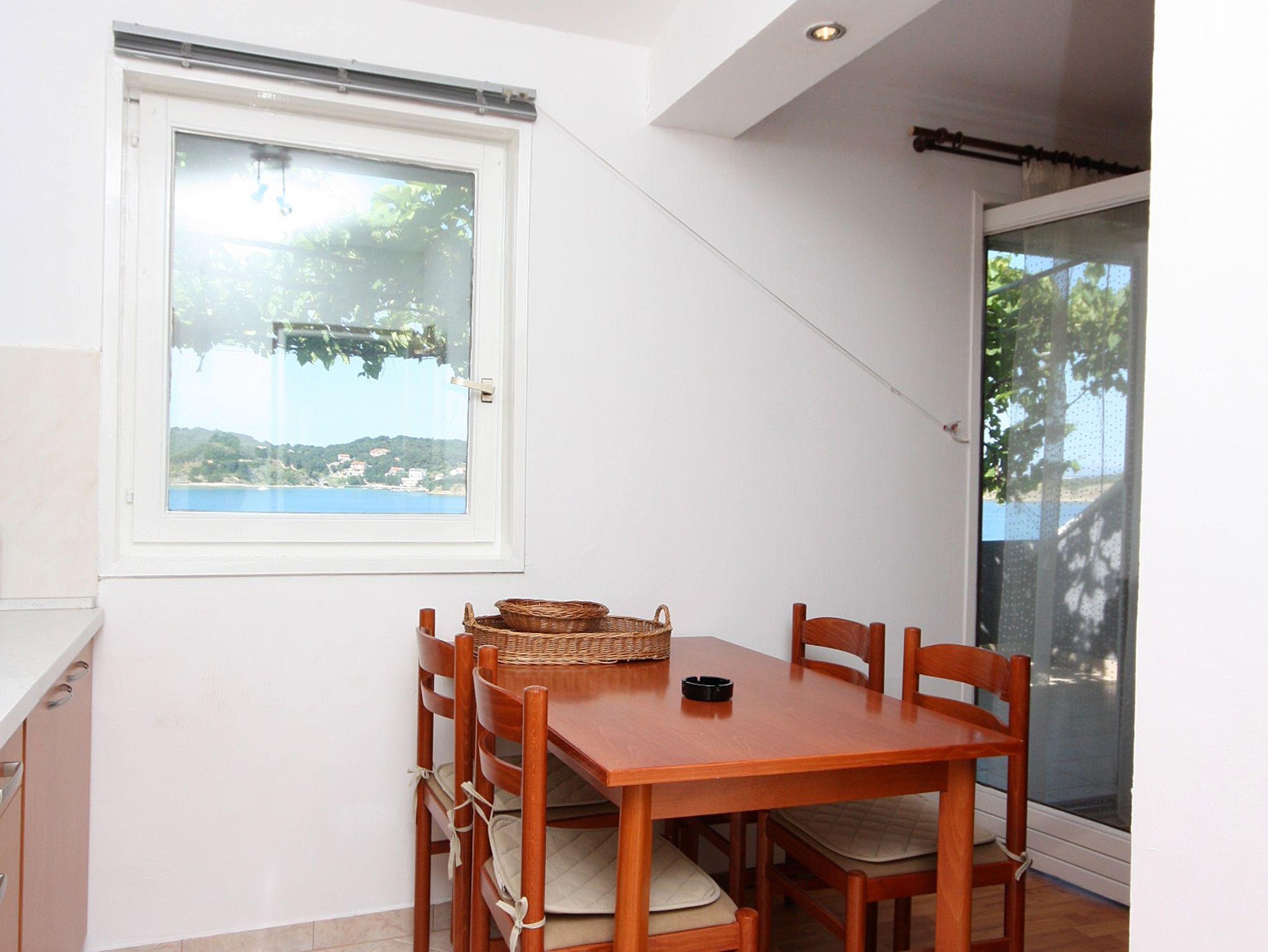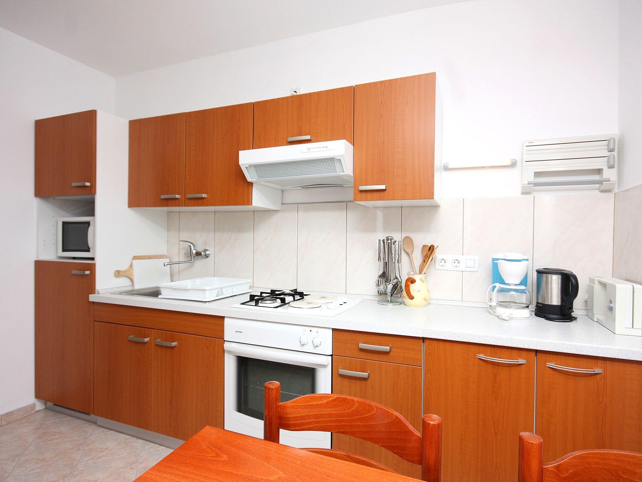 Ferienwohnung bietet Platz für 4 Gäste. Die Betten sind in Schlafzimmern, die es 1 gibt, und in Wohnzimmer, innerhalb einer Gesamtfläche von 52m2, angeordnet. Die Gäste haben eine eigene Terrasse zur Verfügung, auf der sie in warmen Sommernächten genießen können. Das Apartment bietet Meerblick. Es ist erlaubt, Speisen auf dem Gemeinschafts-Grill vorzubereiten. In der Unterkunftseinheit besteht die Möglichkeit des Mitbringens von Haustieren gegen Aufpreis. IM PREIS INBEGRIFFEN: Kurtaxe, Endreinigung, Parkplatz, Internet, Bügeleisen, Bügelbrett. VERBINDLICHE ZUSÄTZLICHE KOSTEN: Aufzahlung für Kurzaufenthalte (prozentualer Zuschlag pro Nächtigungsanzahl: 30% - 1, 20% - 2, 10% - 3). UNVERBINDLICHE ZUSÄTZLICHE KOSTEN: Klimatisierung (0,50 € pro Stunde), Wäschewaschen (3,00 € Waschen), Bootsanlegeplatz (3,00 € pro Nacht), Haustiere (5,00 € pro Nacht). Die Verfügbarkeit zusätzlicher Dienstleistungen in Ihrem reservierten Termin und die Preise derselben (falls nicht aufgeführt) müssen im Voraus überprüft werden. Zusätzliche Dienstleistungen die in der Zahlungsaufforderung nicht aufgeführt sind werden direkt beim Vermieter bezahlt, angenommen der Gast nutzt auch diese.