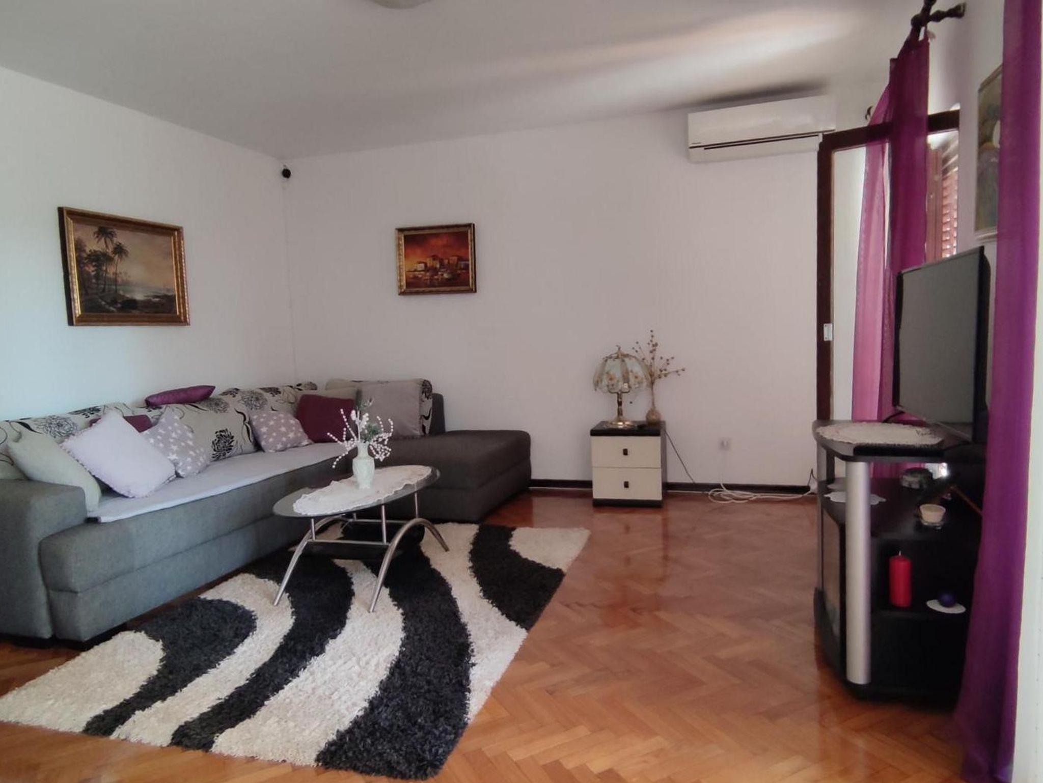Ferienwohnung bietet Platz für 6 Gäste. Die Betten sind in Schlafzimmern, die es 2 gibt, und in Wohnzimmer, innerhalb einer Gesamtfläche von 66m2, angeordnet. Die Gäste haben eine eigene Terrasse zur Verfügung, auf der sie in warmen Sommernächten genießen können. In der Unterkunftseinheit besteht die Möglichkeit des Mitbringens von Haustieren, und die Dienstleistung ist im Preis der Unterkunft enthalten. IM PREIS INBEGRIFFEN: Kurtaxe, Endreinigung, Klimatisierung, Parkplatz, Internet, Haustiere, Bügeleisen, Bügelbrett, Föhn. VERBINDLICHE ZUSÄTZLICHE KOSTEN: Aufzahlung für Kurzaufenthalte (prozentualer Zuschlag pro Nächtigungsanzahl: 30% - 1, 20% - 2, 10% - 3). Die Verfügbarkeit zusätzlicher Dienstleistungen in Ihrem reservierten Termin und die Preise derselben (falls nicht aufgeführt) müssen im Voraus überprüft werden. Zusätzliche Dienstleistungen die in der Zahlungsaufforderung nicht aufgeführt sind werden direkt beim Vermieter bezahlt, angenommen der Gast nutzt auch diese.