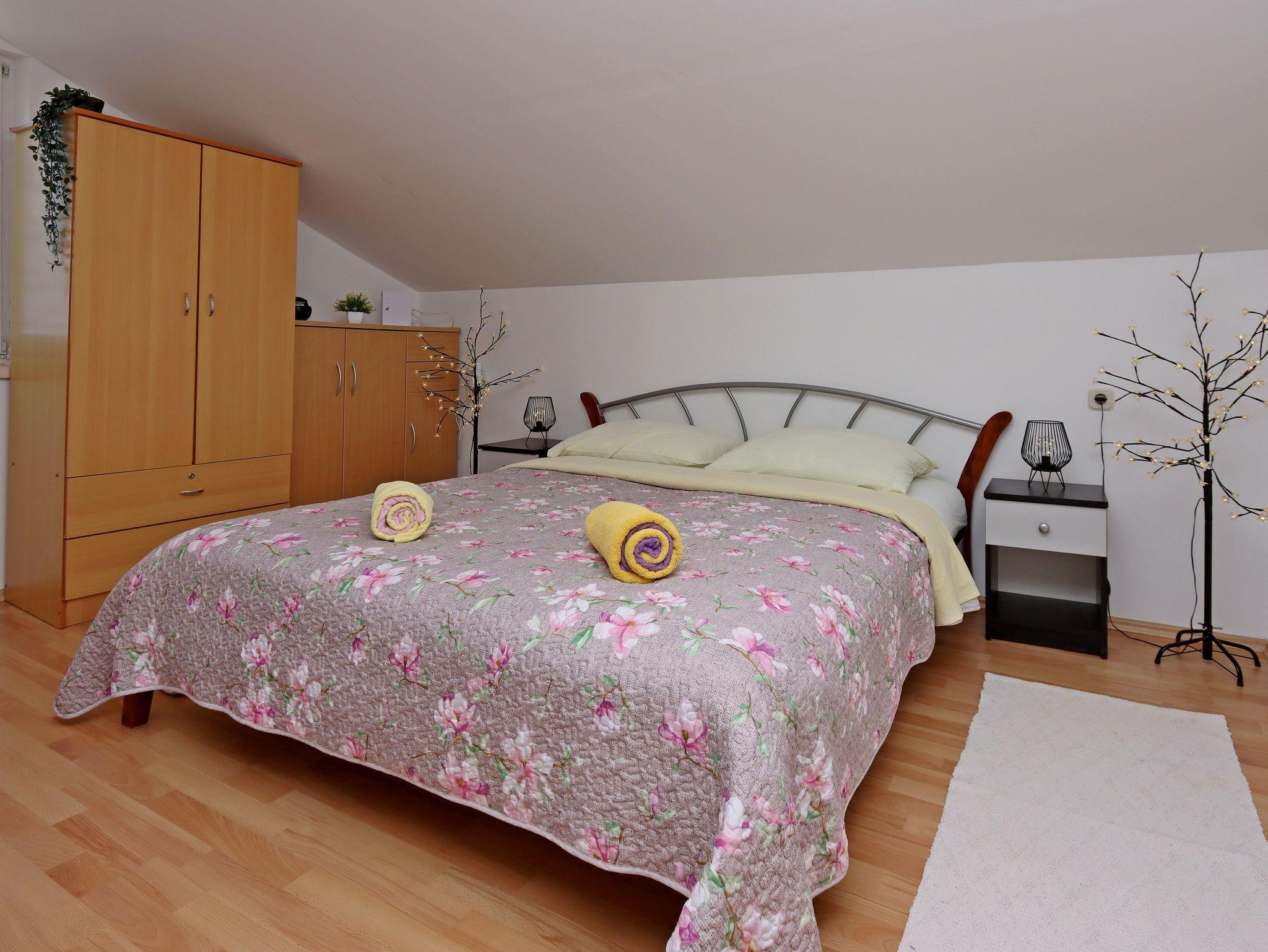 Studio bietet Platz für 4 Gäste. Die Betten sind in Schlafzimmern, die es 1 gibt, innerhalb einer Gesamtfläche von 42m2, angeordnet. Die Gäste haben eine eigene Terrasse zur Verfügung, auf der sie in warmen Sommernächten genießen können. Es ist erlaubt, Speisen auf dem Gemeinschafts-Grill vorzubereiten. In der Unterkunftseinheit besteht die Möglichkeit des Mitbringens von Haustieren gegen Aufpreis. IM PREIS INBEGRIFFEN: Kurtaxe, Endreinigung, Klimatisierung, Parkplatz, Internet, Kinderbett, Bügeleisen, Bügelbrett, Föhn, tragbarer Grill, Liegestühle. VERBINDLICHE ZUSÄTZLICHE KOSTEN: Aufzahlung für Kurzaufenthalte (prozentualer Zuschlag pro Nächtigungsanzahl: 30% - 1, 20% - 2, 10% - 3). UNVERBINDLICHE ZUSÄTZLICHE KOSTEN: Haustiere (8,00 € pro Nacht), Zusatzbett (20,00 € pro Nacht). Die Verfügbarkeit zusätzlicher Dienstleistungen in Ihrem reservierten Termin und die Preise derselben (falls nicht aufgeführt) müssen im Voraus überprüft werden. Zusätzliche Dienstleistungen die in der Zahlungsaufforderung nicht aufgeführt sind werden direkt beim Vermieter bezahlt, angenommen der Gast nutzt auch diese. Ermäßigung auf den Grundpreis: Gratistag 14=13 (bei einem Aufenthalt von 14 Tagen oder mehr erhalten Sie einen Gratistag für den Aufenthalt bis 31.12.26).