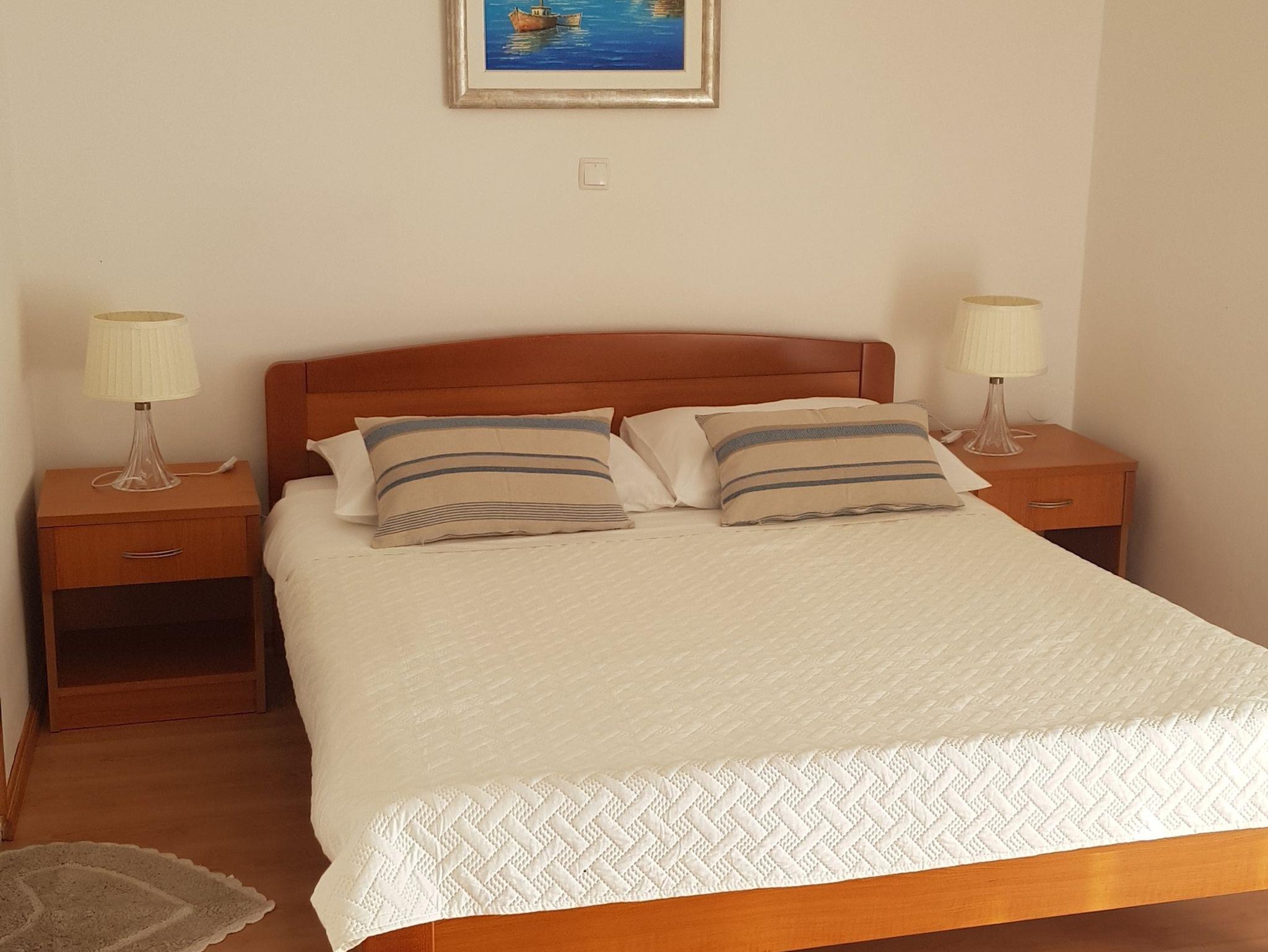Ferienwohnung bietet Platz für 4 Gäste. Die Betten sind in Schlafzimmern, die es 2 gibt, innerhalb einer Gesamtfläche von 52m2, angeordnet. Die Gäste haben eine eigene Terrasse zur Verfügung, auf der sie in warmen Sommernächten genießen können. Das Apartment bietet Meerblick. Es ist erlaubt, Speisen auf dem Gemeinschafts-Grill vorzubereiten. IM PREIS INBEGRIFFEN: Kurtaxe, Endreinigung, Parkplatz, Internet, Wäschewaschen, Zusatzbett, Bügeleisen, Bügelbrett, Föhn. VERBINDLICHE ZUSÄTZLICHE KOSTEN: Aufzahlung für Kurzaufenthalte (prozentualer Zuschlag pro Nächtigungsanzahl: 30% - 1, 20% - 2, 10% - 3). UNVERBINDLICHE ZUSÄTZLICHE KOSTEN: Klimatisierung (5,00 € pro Nacht), Bootsanlegeplatz (5,00 € pro Nacht). Die Verfügbarkeit zusätzlicher Dienstleistungen in Ihrem reservierten Termin und die Preise derselben (falls nicht aufgeführt) müssen im Voraus überprüft werden. Zusätzliche Dienstleistungen die in der Zahlungsaufforderung nicht aufgeführt sind werden direkt beim Vermieter bezahlt, angenommen der Gast nutzt auch diese.