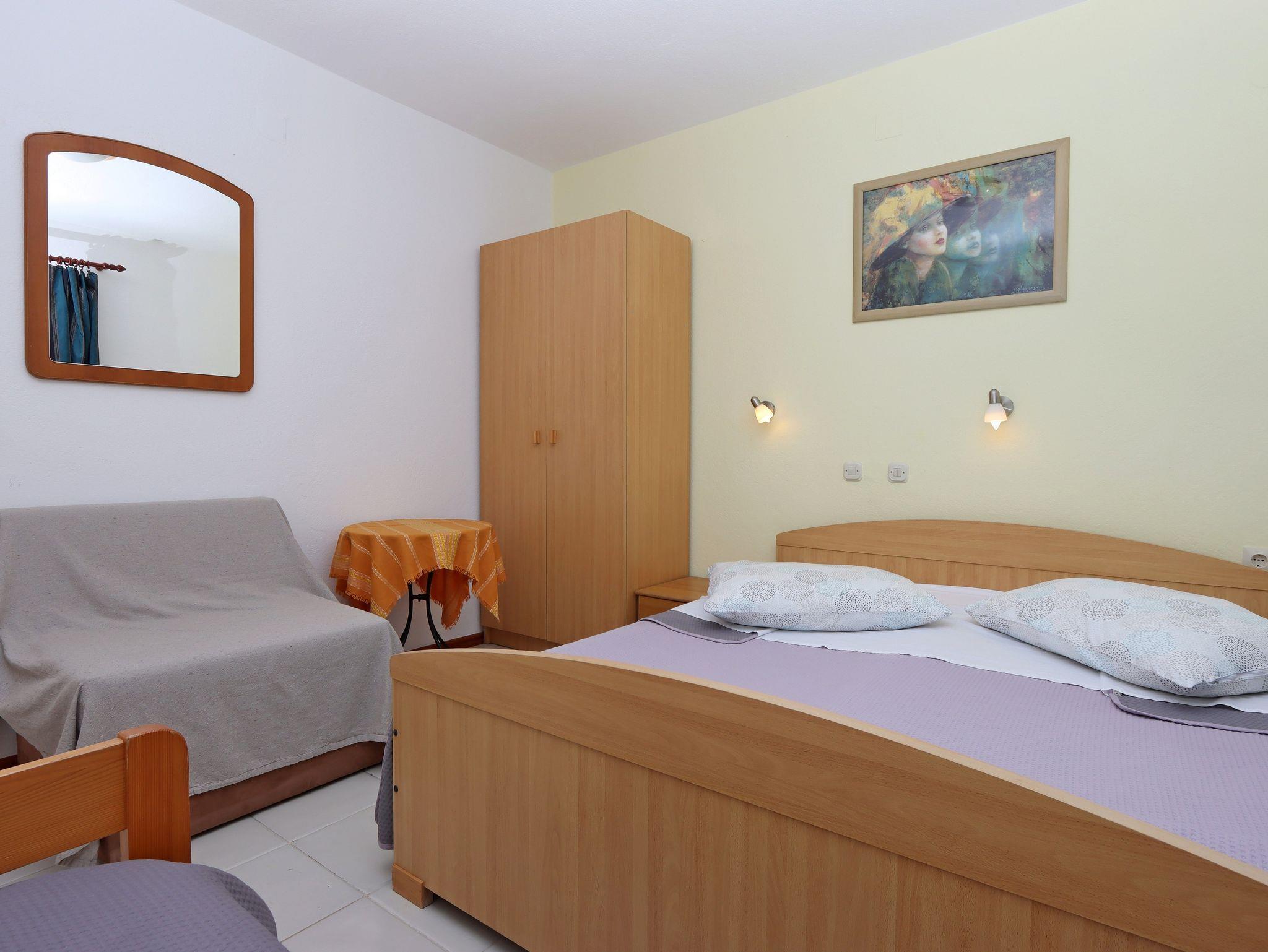 Ferienwohnung bietet Platz für 3 Gäste. Die Betten sind in Schlafzimmern, die es 1 gibt, innerhalb einer Gesamtfläche von 23m2, angeordnet. Die Gäste haben eine eigene Terrasse zur Verfügung, auf der sie in warmen Sommernächten genießen können. Das Apartment bietet Meerblick. Es ist erlaubt, Speisen auf dem Gemeinschafts-Grill vorzubereiten. In der Unterkunftseinheit besteht die Möglichkeit des Mitbringens von Haustieren gegen Aufpreis. IM PREIS INBEGRIFFEN: Kurtaxe, Endreinigung, Klimatisierung, Parkplatz, Internet, Bügeleisen, Föhn, Sonnenschirm. VERBINDLICHE ZUSÄTZLICHE KOSTEN: Aufzahlung für Kurzaufenthalte (prozentualer Zuschlag pro Nächtigungsanzahl: 30% - 1, 20% - 2, 10% - 3). UNVERBINDLICHE ZUSÄTZLICHE KOSTEN: Bootsanlegeplatz (5,00 € pro Nacht), Haustiere (7,00 € pro Nacht), Zusatzbett (5,00 € pro Nacht). Die Verfügbarkeit zusätzlicher Dienstleistungen in Ihrem reservierten Termin und die Preise derselben (falls nicht aufgeführt) müssen im Voraus überprüft werden. Zusätzliche Dienstleistungen die in der Zahlungsaufforderung nicht aufgeführt sind werden direkt beim Vermieter bezahlt, angenommen der Gast nutzt auch diese.