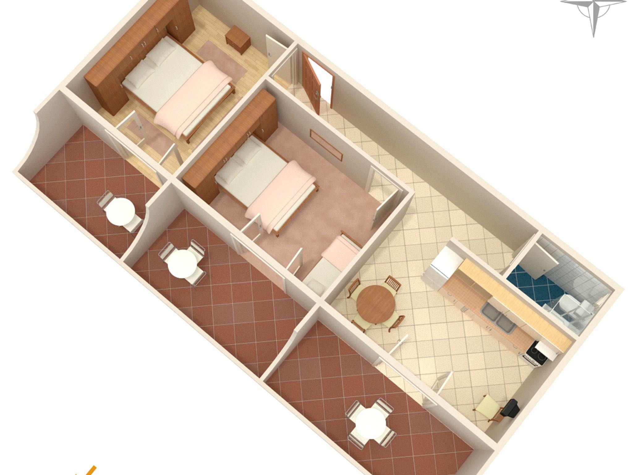 Ferienwohnung bietet Platz für 4 Gäste. Die Betten sind in Schlafzimmern, die es 2 gibt, innerhalb einer Gesamtfläche von 42m2, angeordnet. Die Gäste haben eine eigene Terrasse zur Verfügung, auf der sie in warmen Sommernächten genießen können. Das Apartment bietet Meerblick. Es ist erlaubt, Speisen auf dem Gemeinschafts-Grill vorzubereiten. In der Unterkunftseinheit besteht die Möglichkeit des Mitbringens von Haustieren gegen Aufpreis. IM PREIS INBEGRIFFEN: Kurtaxe, Endreinigung, Klimatisierung, Parkplatz, Internet. VERBINDLICHE ZUSÄTZLICHE KOSTEN: Aufzahlung für Kurzaufenthalte (prozentualer Zuschlag pro Nächtigungsanzahl: 30% - 1, 20% - 2, 10% - 3). UNVERBINDLICHE ZUSÄTZLICHE KOSTEN: Haustiere (5,00 € pro Nacht). Die Verfügbarkeit zusätzlicher Dienstleistungen in Ihrem reservierten Termin und die Preise derselben (falls nicht aufgeführt) müssen im Voraus überprüft werden. Zusätzliche Dienstleistungen die in der Zahlungsaufforderung nicht aufgeführt sind werden direkt beim Vermieter bezahlt, angenommen der Gast nutzt auch diese. Ermäßigung auf den Grundpreis: Gratistag 14=13 (bei einem Aufenthalt von 14 Tagen oder mehr erhalten Sie einen Gratistag für den Aufenthalt bis 31.12.26).