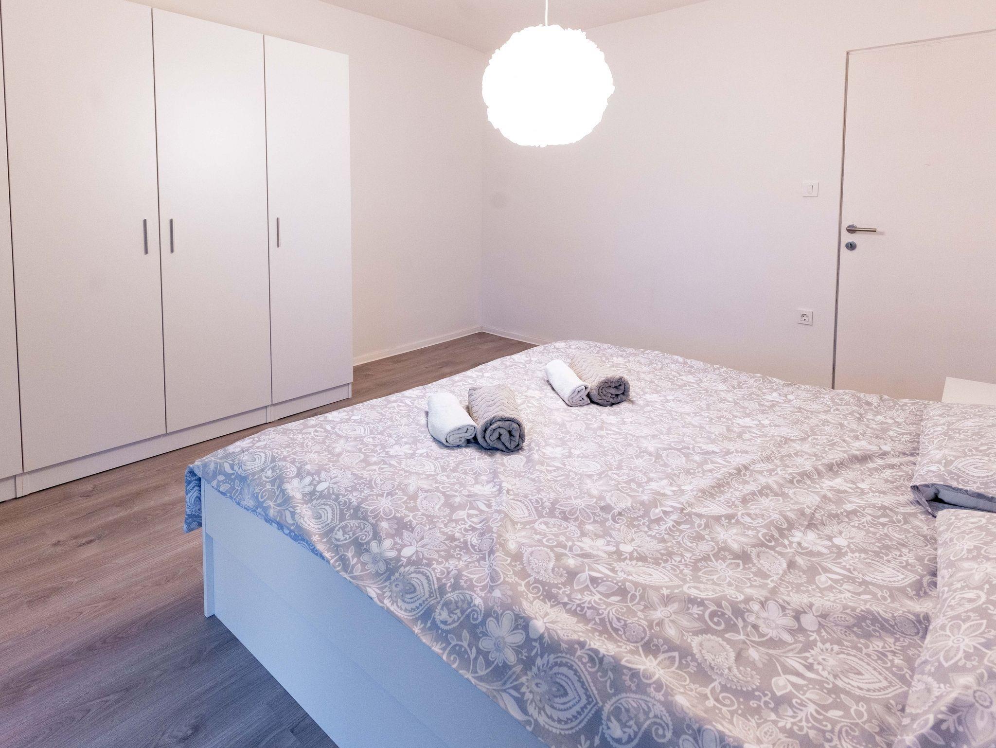 Ferienwohnung bietet Platz für 4 Gäste. Die Betten sind in Schlafzimmern, die es 2 gibt, innerhalb einer Gesamtfläche von 59m2, angeordnet. Die Gäste haben einen eigenen Balkon zur Verfügung, auf der sie in warmen Sommernächten genießen können. Es ist erlaubt, Speisen auf dem Gemeinschafts-Grill vorzubereiten. IM PREIS INBEGRIFFEN: Kurtaxe, Endreinigung, Klimatisierung, Zentralheizung, Parkplatz, Internet, Kinderbett, Föhn. VERBINDLICHE ZUSÄTZLICHE KOSTEN: Aufzahlung für Kurzaufenthalte (prozentualer Zuschlag pro Nächtigungsanzahl: 30% - 1, 20% - 2, 10% - 3). UNVERBINDLICHE ZUSÄTZLICHE KOSTEN: Wäschewaschen (8,00 € Waschen). Die Verfügbarkeit zusätzlicher Dienstleistungen in Ihrem reservierten Termin und die Preise derselben (falls nicht aufgeführt) müssen im Voraus überprüft werden. Zusätzliche Dienstleistungen die in der Zahlungsaufforderung nicht aufgeführt sind werden direkt beim Vermieter bezahlt, angenommen der Gast nutzt auch diese.