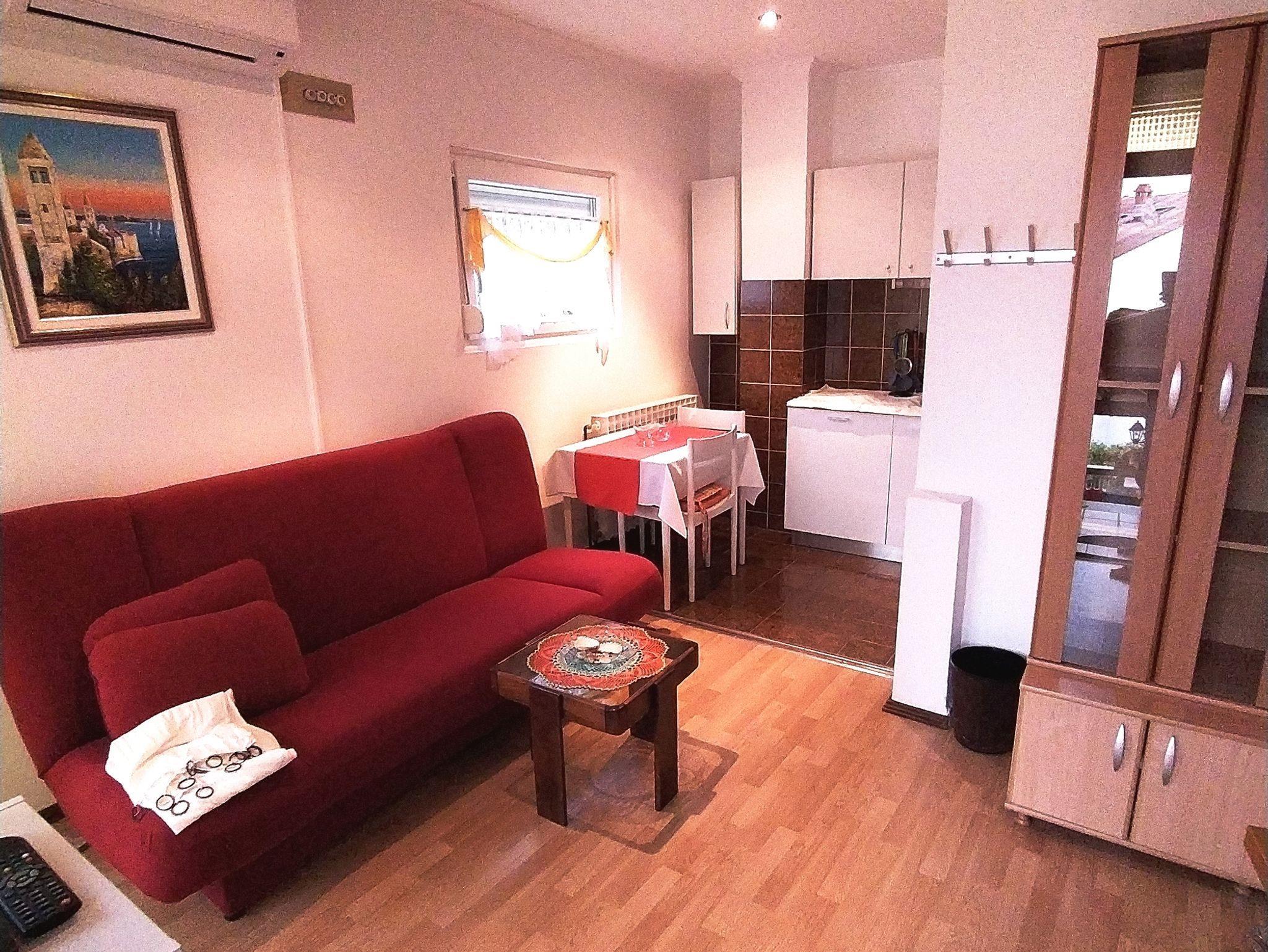 Studio bietet Platz für 3 Gäste. Die Betten sind in Schlafzimmern, die es 1 gibt, und in Wohnzimmer, innerhalb einer Gesamtfläche von 32m2, angeordnet. Die Gäste haben eine eigene Terrasse zur Verfügung, auf der sie in warmen Sommernächten genießen können. Es ist erlaubt, Speisen auf dem Gemeinschafts-Grill vorzubereiten. IM PREIS INBEGRIFFEN: Kurtaxe, Endreinigung, Klimatisierung, Zentralheizung, Parkplatz, Internet, Föhn. VERBINDLICHE ZUSÄTZLICHE KOSTEN: Aufzahlung für Kurzaufenthalte (prozentualer Zuschlag pro Nächtigungsanzahl: 30% - 1, 20% - 2, 10% - 3). UNVERBINDLICHE ZUSÄTZLICHE KOSTEN: Wäschewaschen (5,00 € Waschen), Bootsanlegeplatz (5,00 € pro Nacht). Die Verfügbarkeit zusätzlicher Dienstleistungen in Ihrem reservierten Termin und die Preise derselben (falls nicht aufgeführt) müssen im Voraus überprüft werden. Zusätzliche Dienstleistungen die in der Zahlungsaufforderung nicht aufgeführt sind werden direkt beim Vermieter bezahlt, angenommen der Gast nutzt auch diese. Ermäßigung auf den Grundpreis: Gratistag 21=19 (bei einem Aufenthalt von 21 Tagen oder mehr erhalten Sie 2 Gratistage für den Aufenthalt bis 31.12.26).