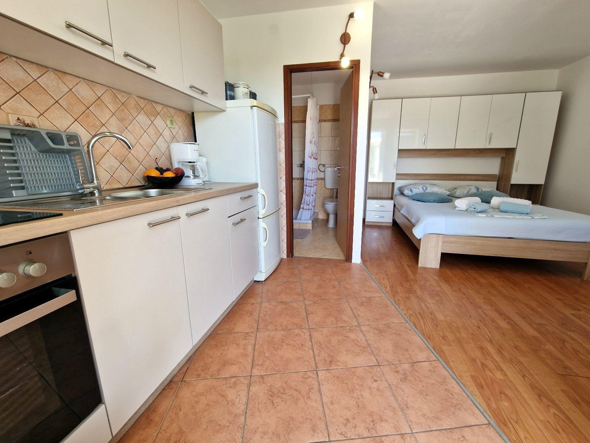 Studio bietet Platz für 2 Gäste. Die Betten sind in Schlafzimmern, die es 1 gibt, innerhalb einer Gesamtfläche von 25m2, angeordnet. Die Gäste haben eine eigene Terrasse zur Verfügung, auf der sie in warmen Sommernächten genießen können. Es ist erlaubt, Speisen auf dem Gemeinschafts-Grill vorzubereiten. In der Unterkunftseinheit besteht die Möglichkeit des Mitbringens von Haustieren gegen Aufpreis. Unterkunftseinheit hat Räume, die von dem Rest der Einheit abgetrennt werden. IM PREIS INBEGRIFFEN: Kurtaxe, Endreinigung, Klimatisierung, Parkplatz, Internet, Föhn. VERBINDLICHE ZUSÄTZLICHE KOSTEN: Aufzahlung für Kurzaufenthalte (prozentualer Zuschlag pro Nächtigungsanzahl: 30% - 1, 20% - 2, 10% - 3). UNVERBINDLICHE ZUSÄTZLICHE KOSTEN: Haustiere (6,00 € pro Nacht). Die Verfügbarkeit zusätzlicher Dienstleistungen in Ihrem reservierten Termin und die Preise derselben (falls nicht aufgeführt) müssen im Voraus überprüft werden. Zusätzliche Dienstleistungen die in der Zahlungsaufforderung nicht aufgeführt sind werden direkt beim Vermieter bezahlt, angenommen der Gast nutzt auch diese.