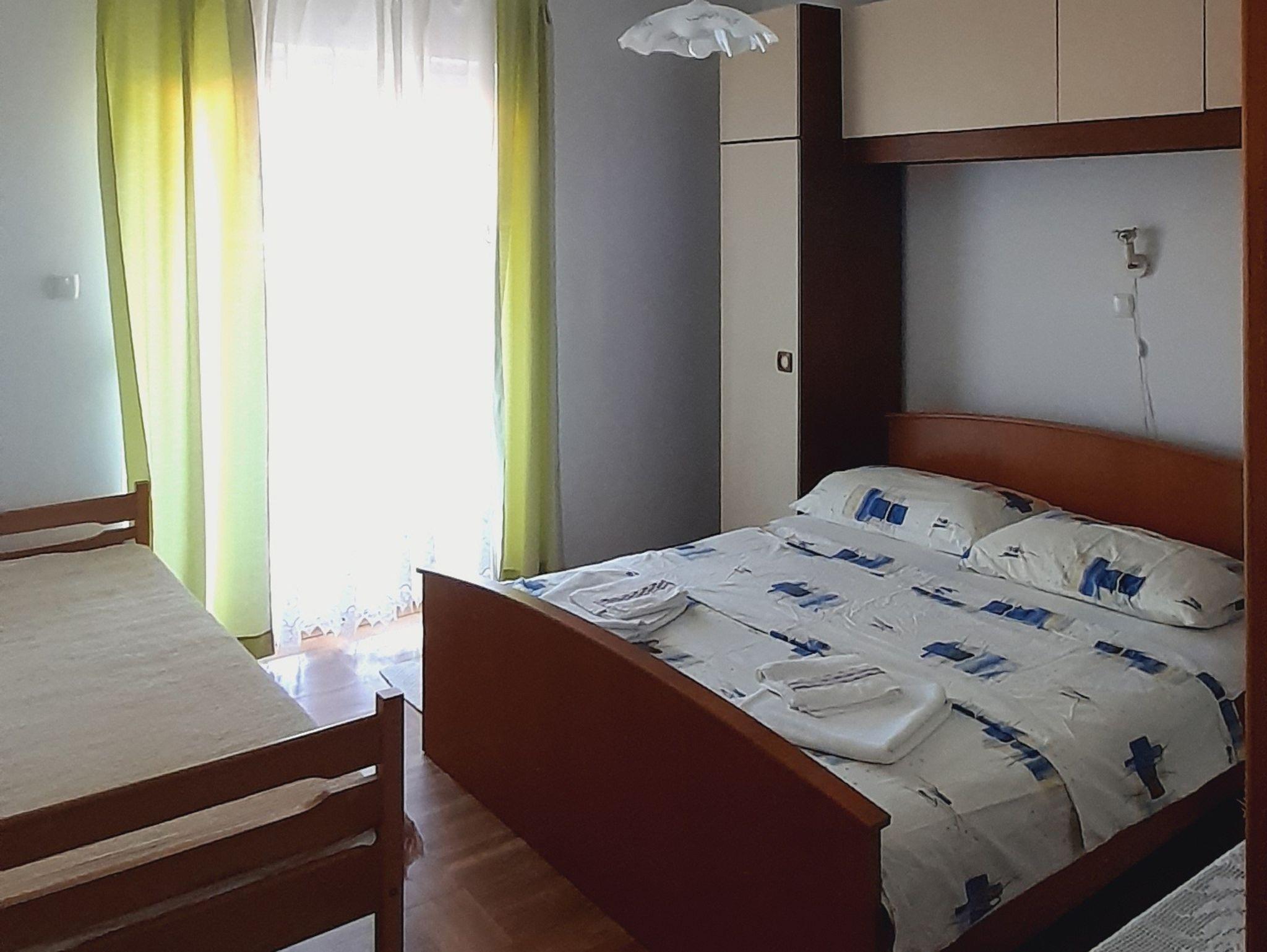 Ferienwohnung bietet Platz für 5 Gäste. Die Betten sind in Schlafzimmern, die es 2 gibt, innerhalb einer Gesamtfläche von 47m2, angeordnet. Die Gäste haben eine eigene Terrasse zur Verfügung, auf der sie in warmen Sommernächten genießen können. Das Apartment bietet Meerblick. Für vollen Genuss und Entspannung gibt es einen privaten Grill für Gäste dieser Unterkunft. In der Unterkunftseinheit besteht die Möglichkeit des Mitbringens von Haustieren gegen Aufpreis. IM PREIS INBEGRIFFEN: Kurtaxe, Endreinigung, Klimatisierung, Parkplatz, Internet, Bootsanlegeplatz, Kinderbett, Bügeleisen, Bügelbrett, Föhn. VERBINDLICHE ZUSÄTZLICHE KOSTEN: Aufzahlung für Kurzaufenthalte (prozentualer Zuschlag pro Nächtigungsanzahl: 30% - 1, 20% - 2, 10% - 3). UNVERBINDLICHE ZUSÄTZLICHE KOSTEN: Haustiere (5,00 € pro Nacht), Zusatzbett (10,00 € pro Nacht). Die Verfügbarkeit zusätzlicher Dienstleistungen in Ihrem reservierten Termin und die Preise derselben (falls nicht aufgeführt) müssen im Voraus überprüft werden. Zusätzliche Dienstleistungen die in der Zahlungsaufforderung nicht aufgeführt sind werden direkt beim Vermieter bezahlt, angenommen der Gast nutzt auch diese.