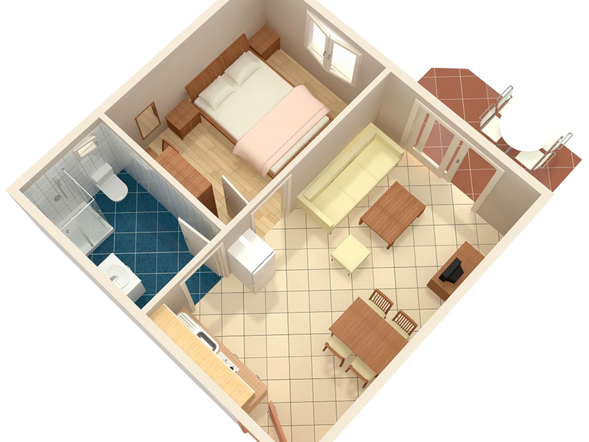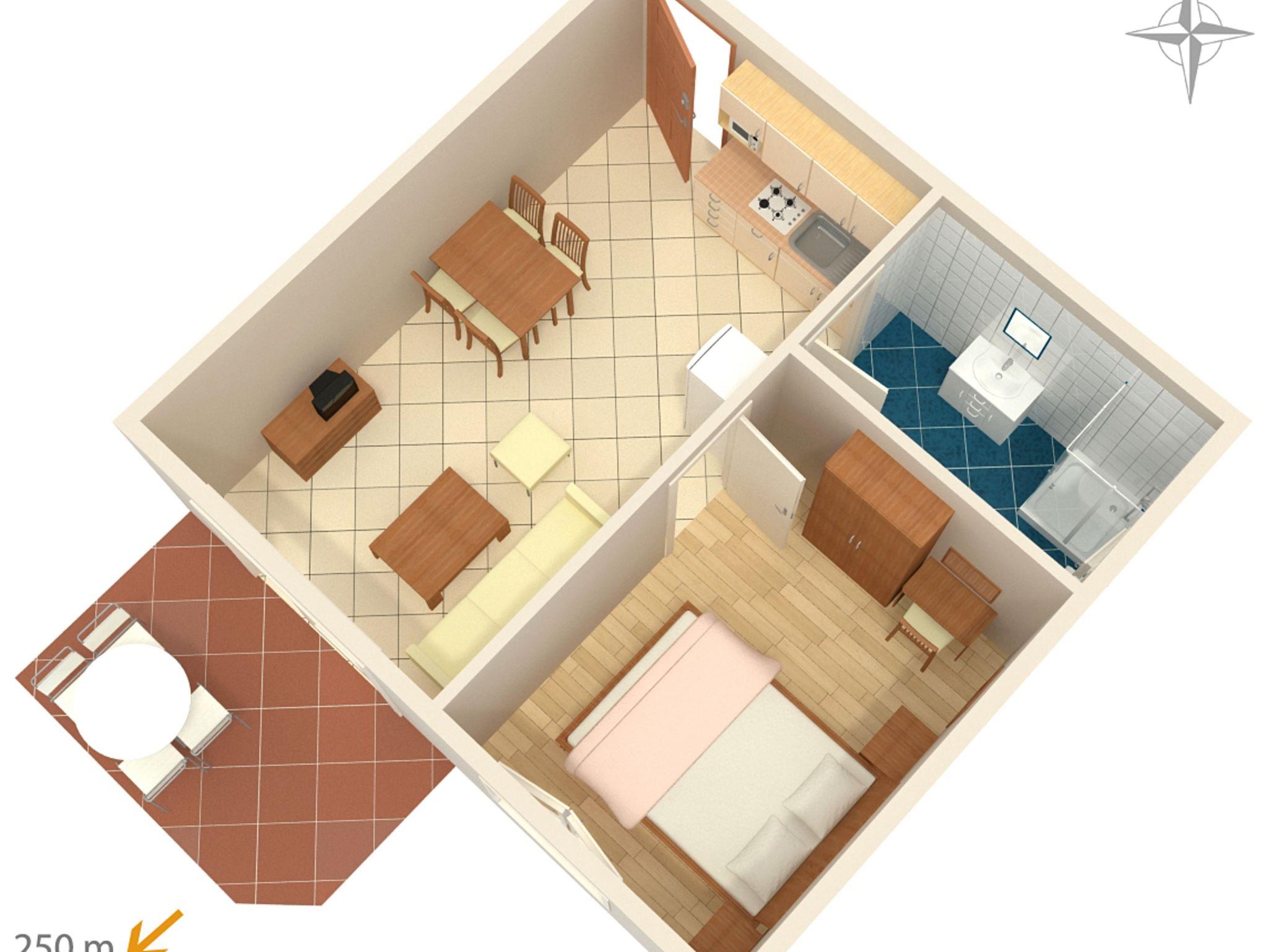 Ferienwohnung bietet Platz für 4 Gäste. Die Betten sind in Schlafzimmern, die es 1 gibt, und in Wohnzimmer, innerhalb einer Gesamtfläche von 33m2, angeordnet. Die Gäste haben eine eigene Terrasse zur Verfügung, auf der sie in warmen Sommernächten genießen können. Es ist erlaubt, Speisen auf dem Gemeinschafts-Grill vorzubereiten. Während ihres Aufenthalts können Gäste das gemeinsam zur Nutzung stehende Schwimmbad benutzen. In der gebuchten Unterkunftseinheit zahlt man am Ort ein Depositum ( der Preis ist an der Internetseite angeführt ). IM PREIS INBEGRIFFEN: Endreinigung, Klimatisierung, Pool, Parkplatz, Internet, Föhn. VERBINDLICHE ZUSÄTZLICHE KOSTEN: Kurtaxe (Erwachsene 0,93 € - 1,90 € Nacht/Person, Kinderermäßigung 12 - 17 Jahre), Kaution (100,00 € Einmalzahlung). Die Verfügbarkeit zusätzlicher Dienstleistungen in Ihrem reservierten Termin und die Preise derselben (falls nicht aufgeführt) müssen im Voraus überprüft werden. Zusätzliche Dienstleistungen die in der Zahlungsaufforderung nicht aufgeführt sind werden direkt beim Vermieter bezahlt, angenommen der Gast nutzt auch diese.