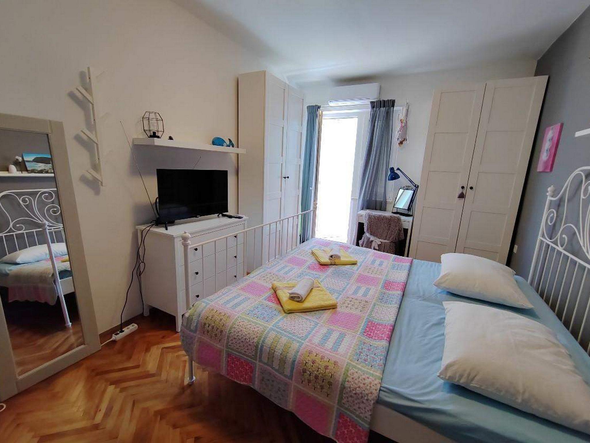 Ferienwohnung bietet Platz für 8 Gäste. Die Betten sind in Schlafzimmern, die es 4 gibt, innerhalb einer Gesamtfläche von 80m2, angeordnet. Die Gäste haben eine eigene Terrasse zur Verfügung, auf der sie in warmen Sommernächten genießen können. Es ist erlaubt, Speisen auf dem Gemeinschafts-Grill vorzubereiten. IM PREIS INBEGRIFFEN: Kurtaxe, Endreinigung, Klimatisierung, Parkplatz, Internet. VERBINDLICHE ZUSÄTZLICHE KOSTEN: Aufzahlung für Kurzaufenthalte (prozentualer Zuschlag pro Nächtigungsanzahl: 30% - 1, 20% - 2, 10% - 3). Die Verfügbarkeit zusätzlicher Dienstleistungen in Ihrem reservierten Termin und die Preise derselben (falls nicht aufgeführt) müssen im Voraus überprüft werden. Zusätzliche Dienstleistungen die in der Zahlungsaufforderung nicht aufgeführt sind werden direkt beim Vermieter bezahlt, angenommen der Gast nutzt auch diese.