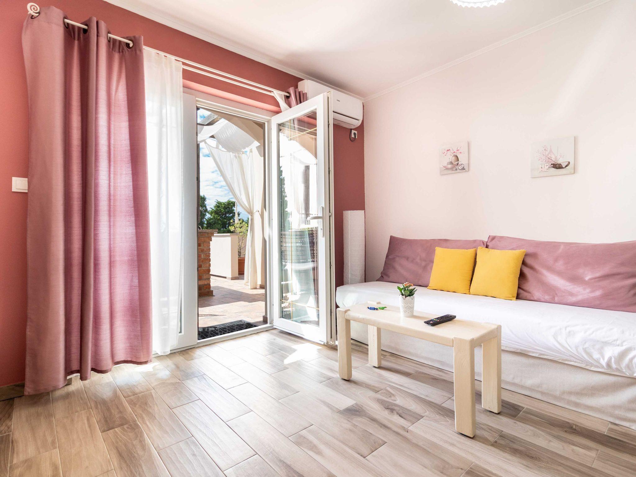 Ferienwohnung bietet Platz für 4 Gäste. Die Betten sind in Schlafzimmern, die es 1 gibt, und in Wohnzimmer, innerhalb einer Gesamtfläche von 38m2, angeordnet. Die Gäste haben einen eigenen Balkon zur Verfügung, auf der sie in warmen Sommernächten genießen können. Das Apartment bietet Meerblick. Es ist erlaubt, Speisen auf dem Gemeinschafts-Grill vorzubereiten. IM PREIS INBEGRIFFEN: Kurtaxe, Endreinigung, Klimatisierung, Parkplatz, Internet, Bügeleisen, Bügelbrett, Föhn. VERBINDLICHE ZUSÄTZLICHE KOSTEN: Aufzahlung für Kurzaufenthalte (prozentualer Zuschlag pro Nächtigungsanzahl: 30% - 1, 20% - 2, 10% - 3). UNVERBINDLICHE ZUSÄTZLICHE KOSTEN: Zusatzbett (10,00 € pro Nacht). Die Verfügbarkeit zusätzlicher Dienstleistungen in Ihrem reservierten Termin und die Preise derselben (falls nicht aufgeführt) müssen im Voraus überprüft werden. Zusätzliche Dienstleistungen die in der Zahlungsaufforderung nicht aufgeführt sind werden direkt beim Vermieter bezahlt, angenommen der Gast nutzt auch diese.