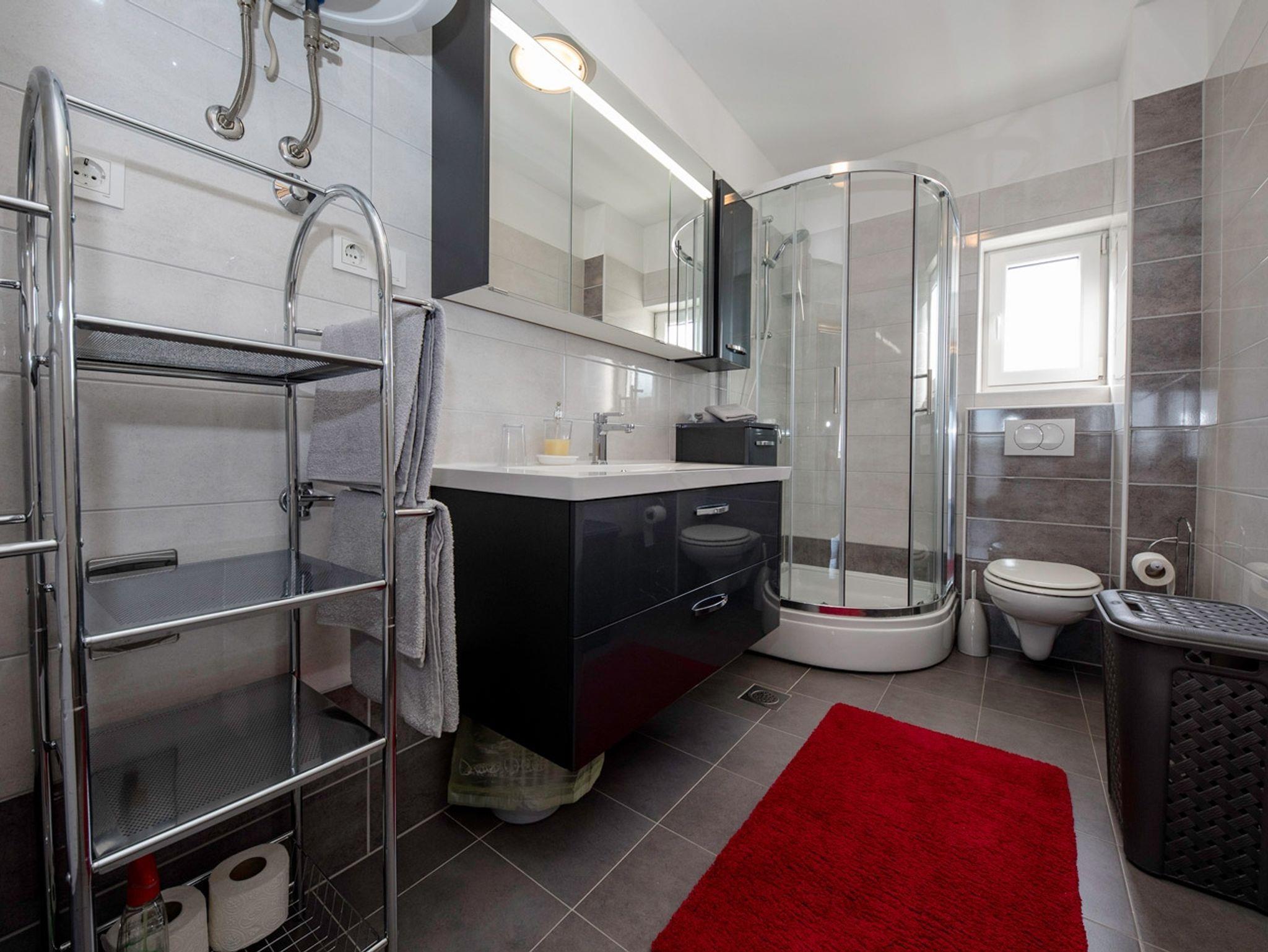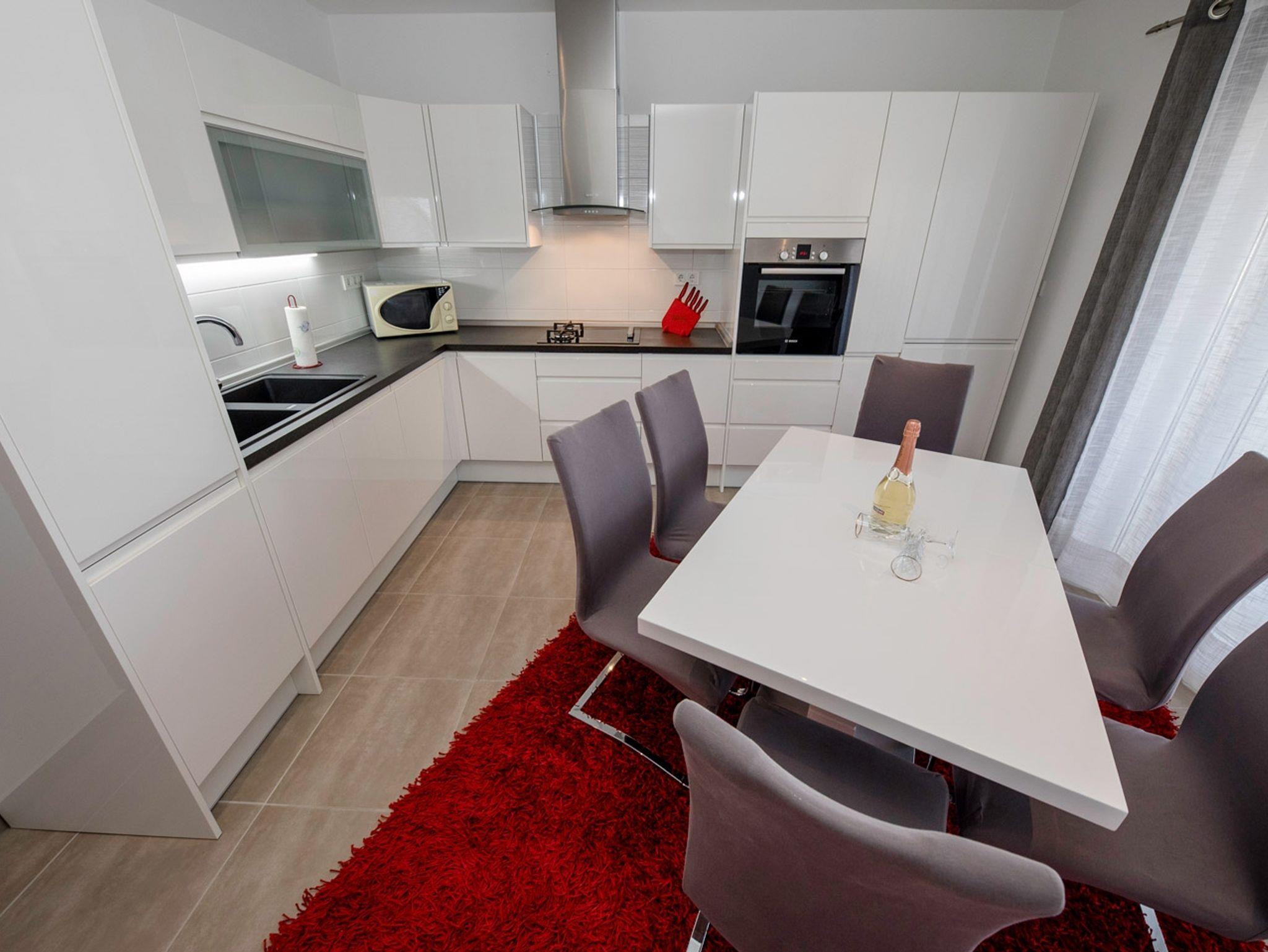Ferienwohnung bietet Platz für 4 Gäste. Die Betten sind in Schlafzimmern, die es 2 gibt, innerhalb einer Gesamtfläche von 64m2, angeordnet. Die Gäste haben eine eigene Terrasse zur Verfügung, auf der sie in warmen Sommernächten genießen können. Das Apartment bietet Meerblick. Es ist erlaubt, Speisen auf dem Gemeinschafts-Grill vorzubereiten. IM PREIS INBEGRIFFEN: Kurtaxe, Endreinigung, Klimatisierung, Parkplatz, Internet, Föhn, tragbarer Grill. VERBINDLICHE ZUSÄTZLICHE KOSTEN: Aufzahlung für Kurzaufenthalte (prozentualer Zuschlag pro Nächtigungsanzahl: 30% - 1, 20% - 2, 10% - 3). UNVERBINDLICHE ZUSÄTZLICHE KOSTEN: Wäschewaschen (3,00 € Waschen), Zusatzbett (10,00 € pro Nacht). Die Verfügbarkeit zusätzlicher Dienstleistungen in Ihrem reservierten Termin und die Preise derselben (falls nicht aufgeführt) müssen im Voraus überprüft werden. Zusätzliche Dienstleistungen die in der Zahlungsaufforderung nicht aufgeführt sind werden direkt beim Vermieter bezahlt, angenommen der Gast nutzt auch diese.