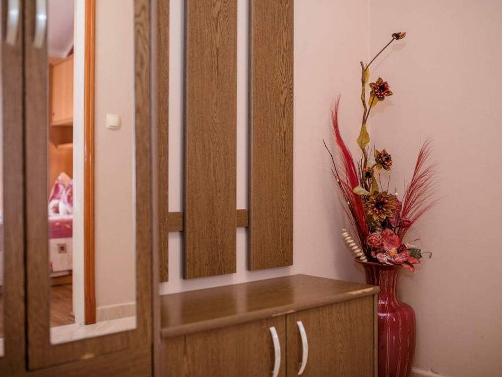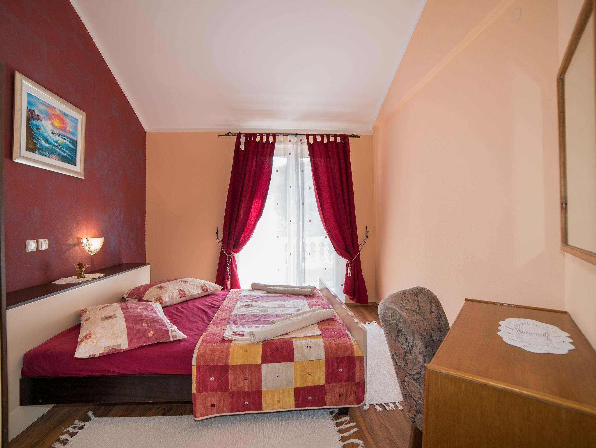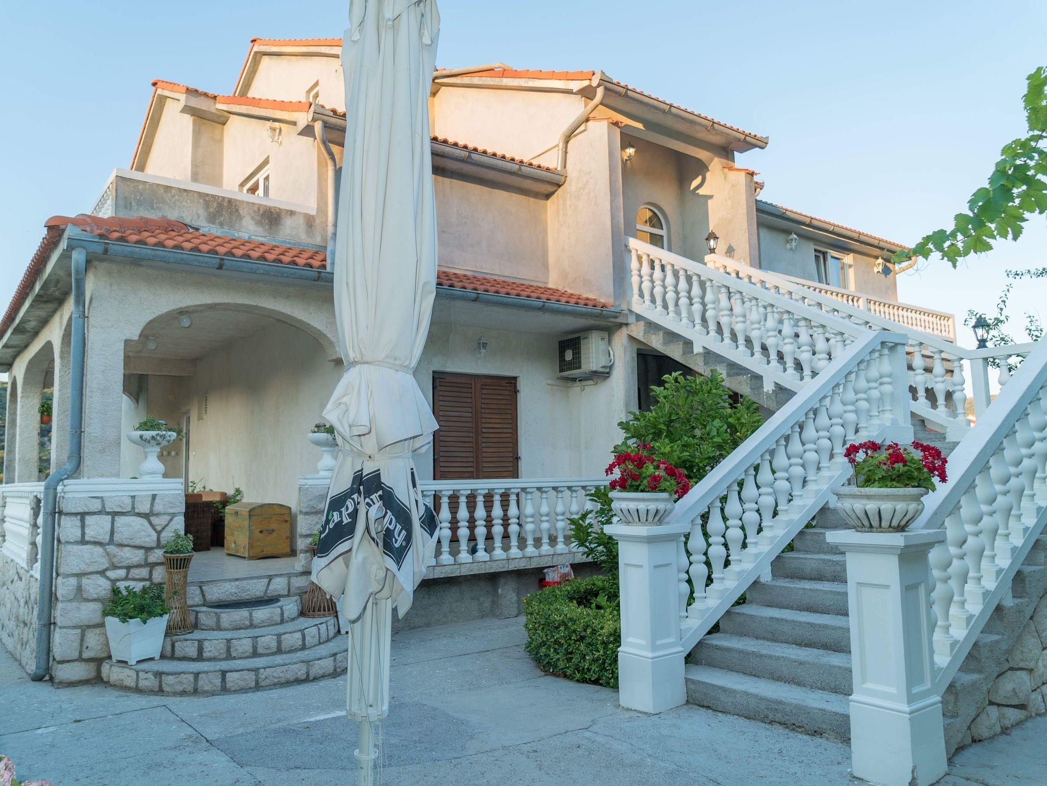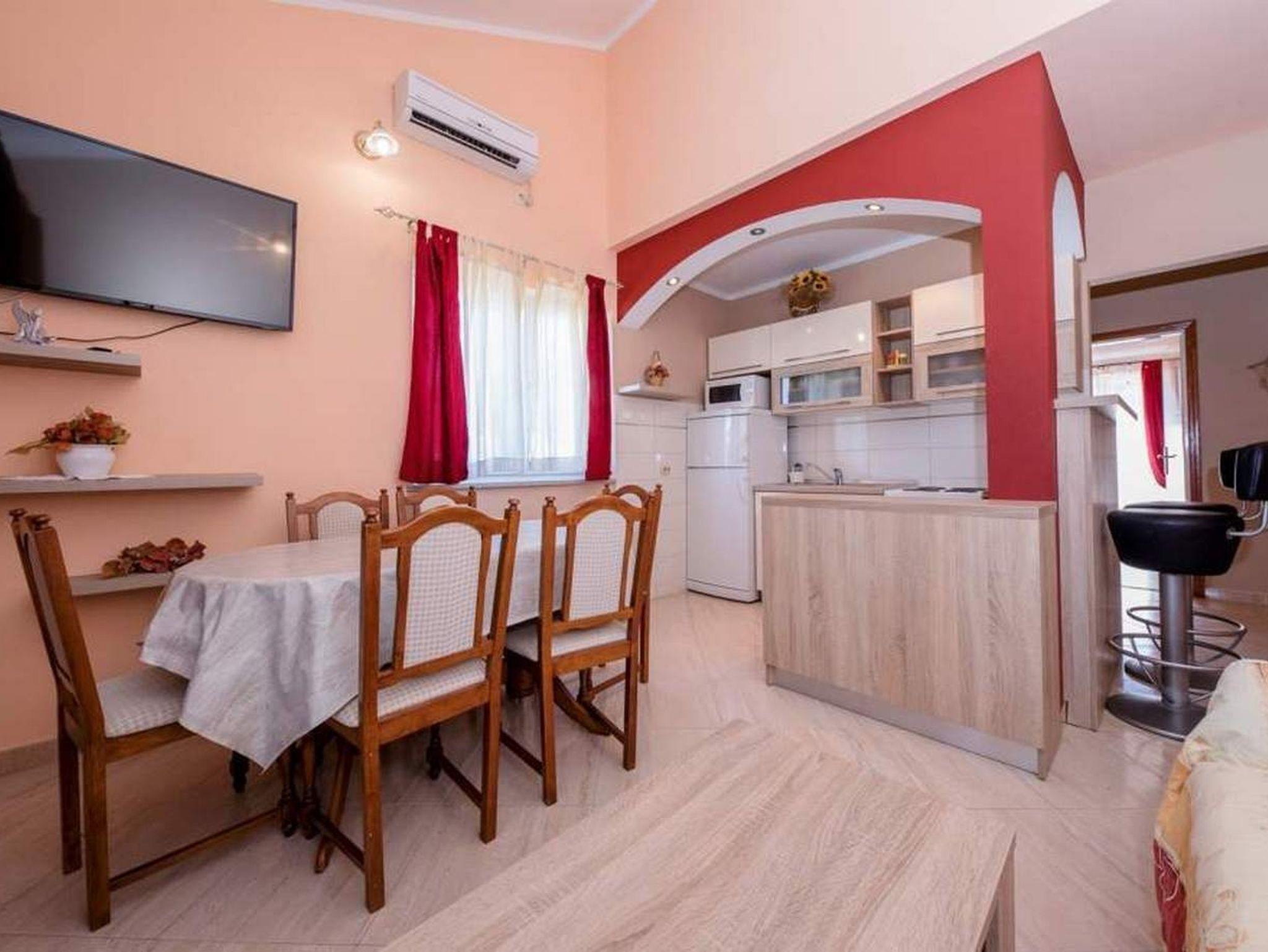 Ferienwohnung bietet Platz für 5 Gäste. Die Betten sind in Schlafzimmern, die es 2 gibt, und in Wohnzimmer, innerhalb einer Gesamtfläche von 46m2, angeordnet. Die Gäste haben eine eigene Terrasse zur Verfügung, auf der sie in warmen Sommernächten genießen können. Das Apartment bietet Meerblick. Es ist erlaubt, Speisen auf dem Gemeinschafts-Grill vorzubereiten. In der Unterkunftseinheit besteht die Möglichkeit des Mitbringens von Haustieren gegen Aufpreis. IM PREIS INBEGRIFFEN: Kurtaxe, Endreinigung, Klimatisierung, Parkplatz, Internet, Föhn. VERBINDLICHE ZUSÄTZLICHE KOSTEN: Aufzahlung für Kurzaufenthalte (prozentualer Zuschlag pro Nächtigungsanzahl: 30% - 1, 20% - 2, 10% - 3). UNVERBINDLICHE ZUSÄTZLICHE KOSTEN: Wäschewaschen (10,00 € Waschen), Bootsanlegeplatz (20,00 € pro Nacht), Haustiere (10,00 € pro Nacht), Zusatzbett (10,00 € pro Nacht). Die Verfügbarkeit zusätzlicher Dienstleistungen in Ihrem reservierten Termin und die Preise derselben (falls nicht aufgeführt) müssen im Voraus überprüft werden. Zusätzliche Dienstleistungen die in der Zahlungsaufforderung nicht aufgeführt sind werden direkt beim Vermieter bezahlt, angenommen der Gast nutzt auch diese.